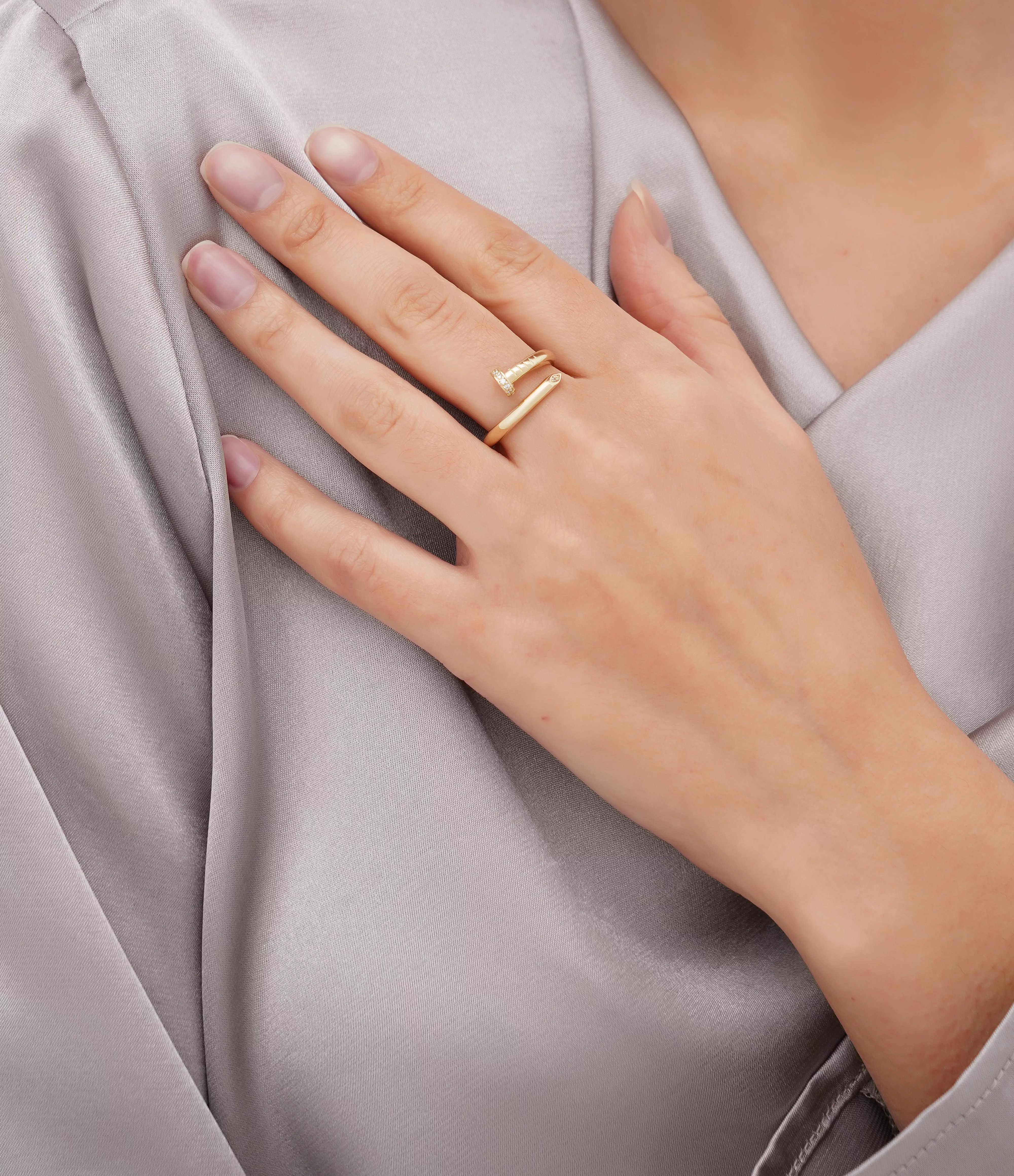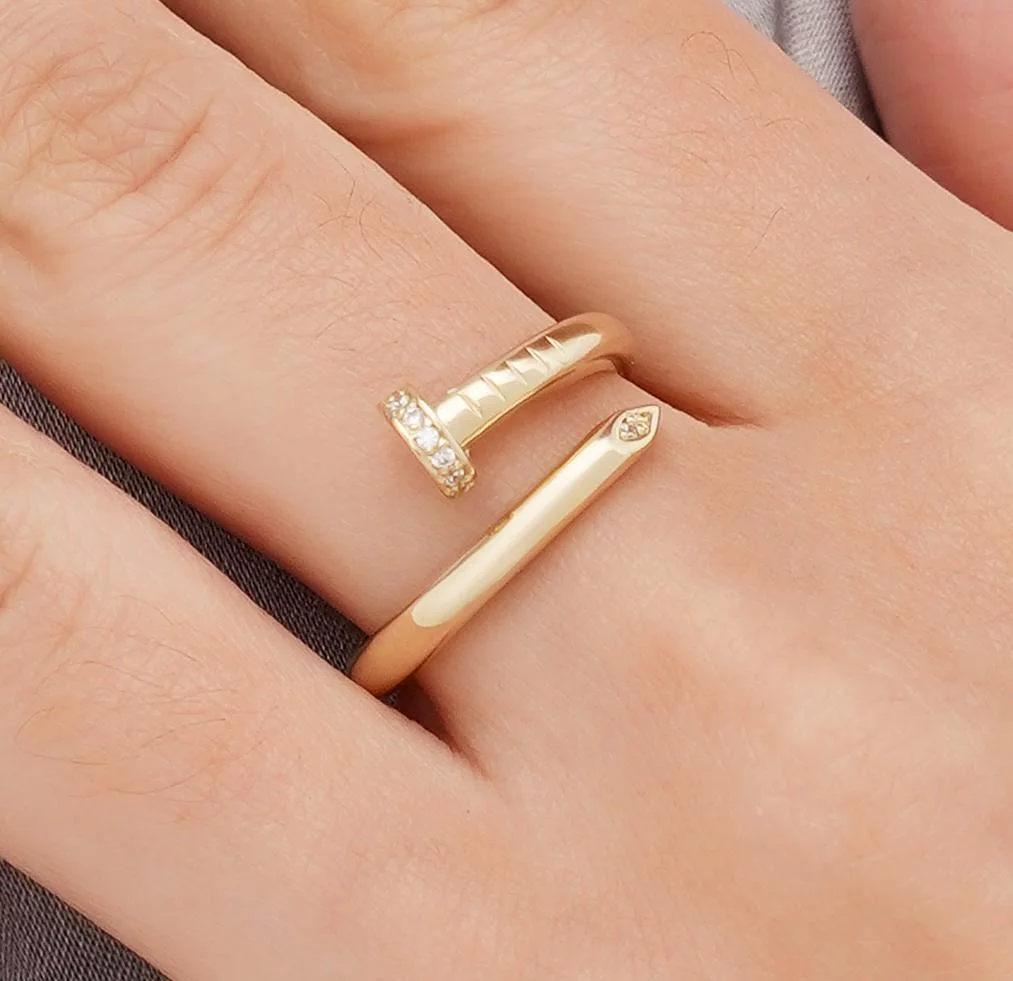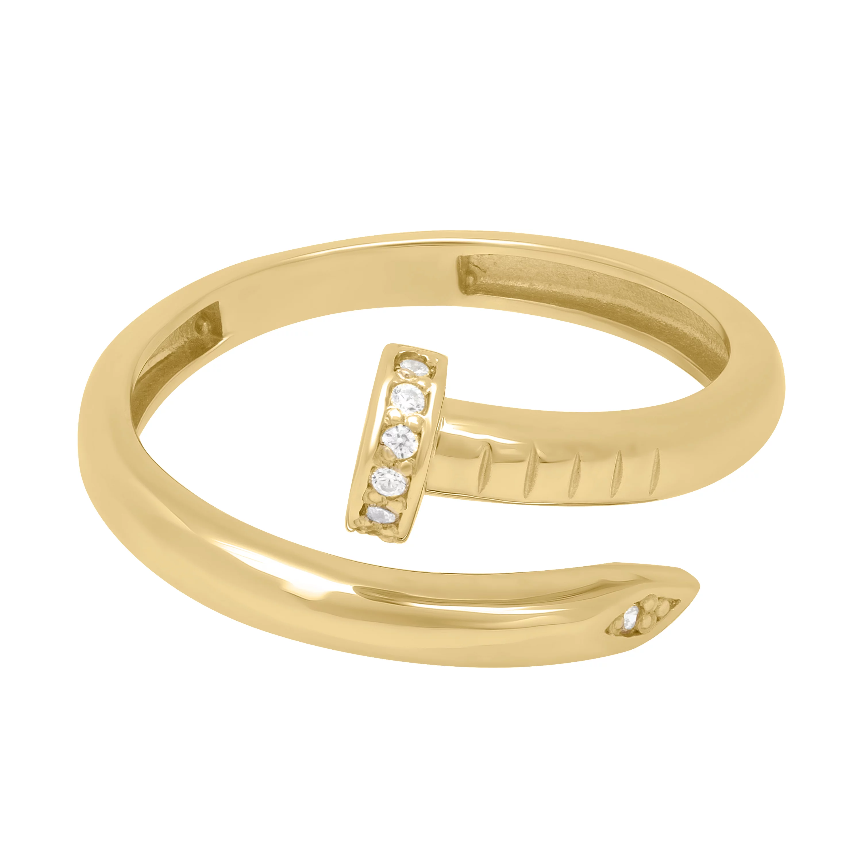 Каблучка незамкнена "Цвях" з лимонного золота з фіанітами - 1687721