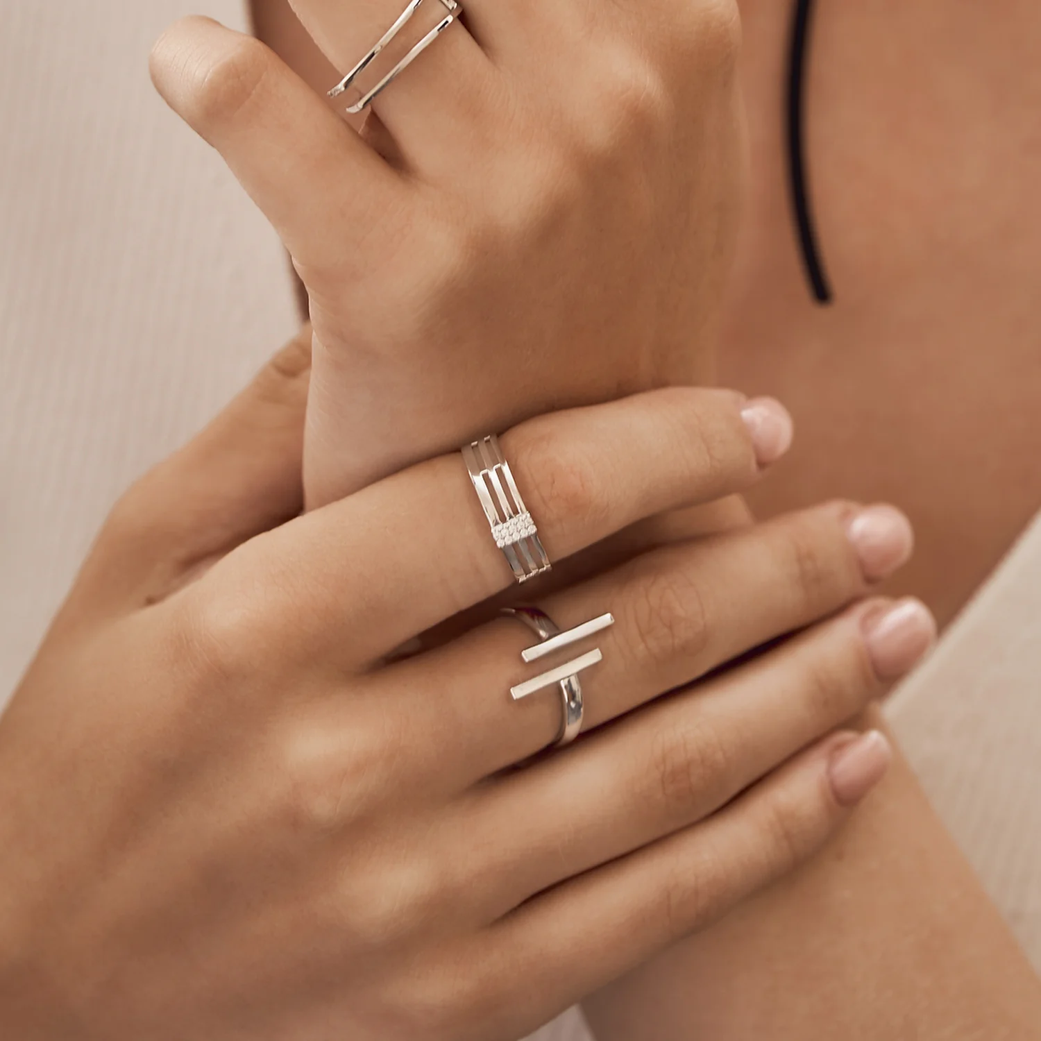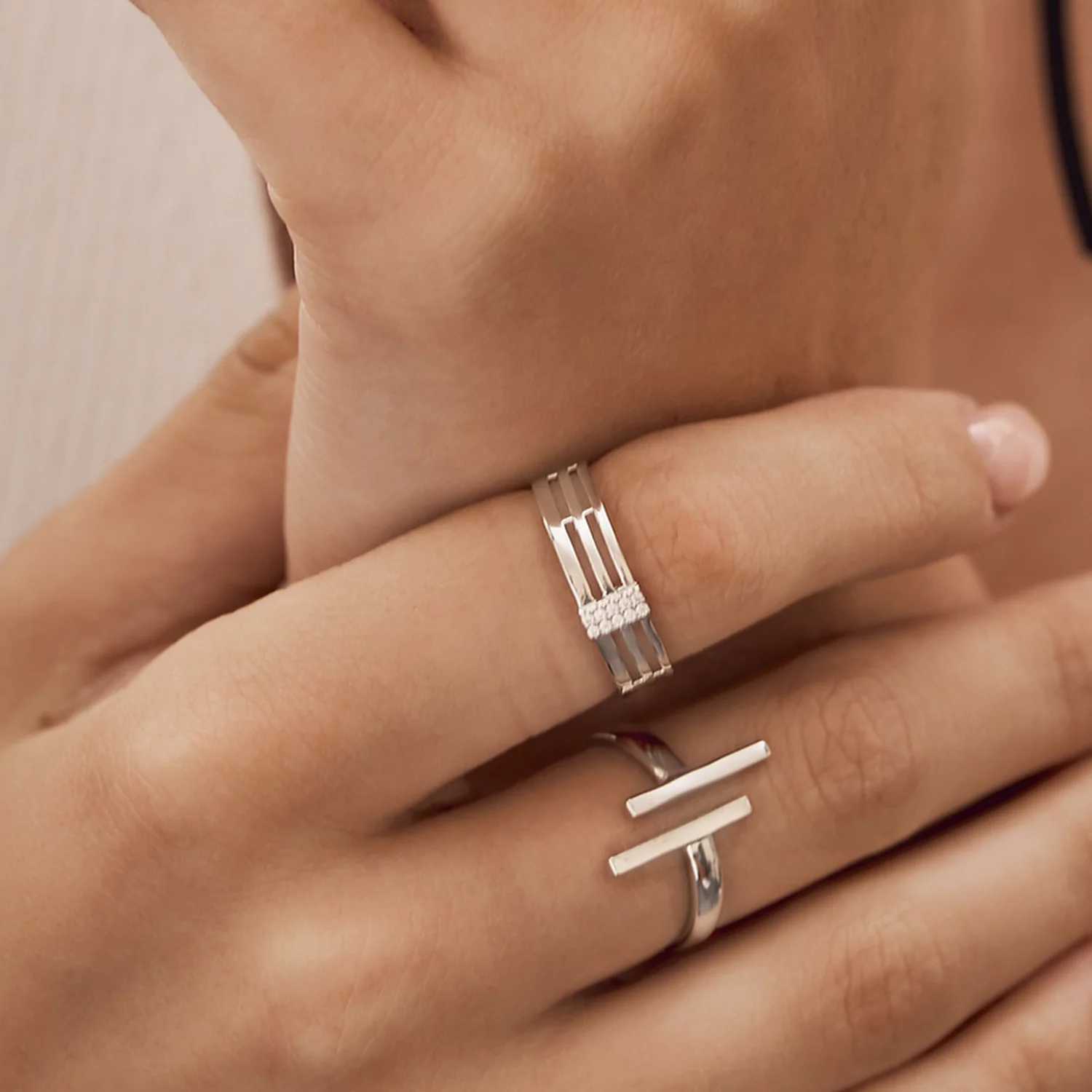 Каблучка з білого золота "Лінії" незамкнена - 1500574