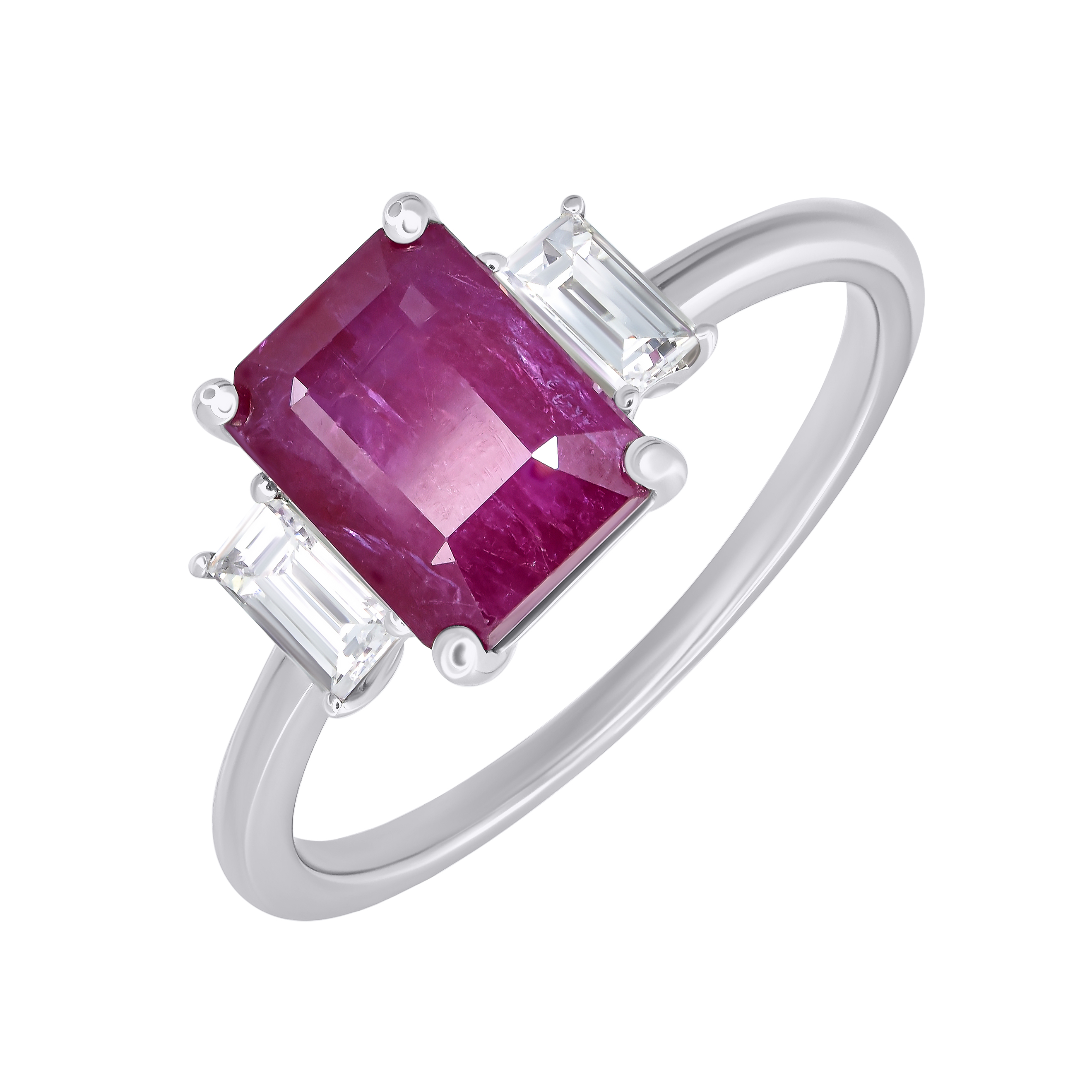 Каблучка з білого золота з діамантами і рубіном - 1254940