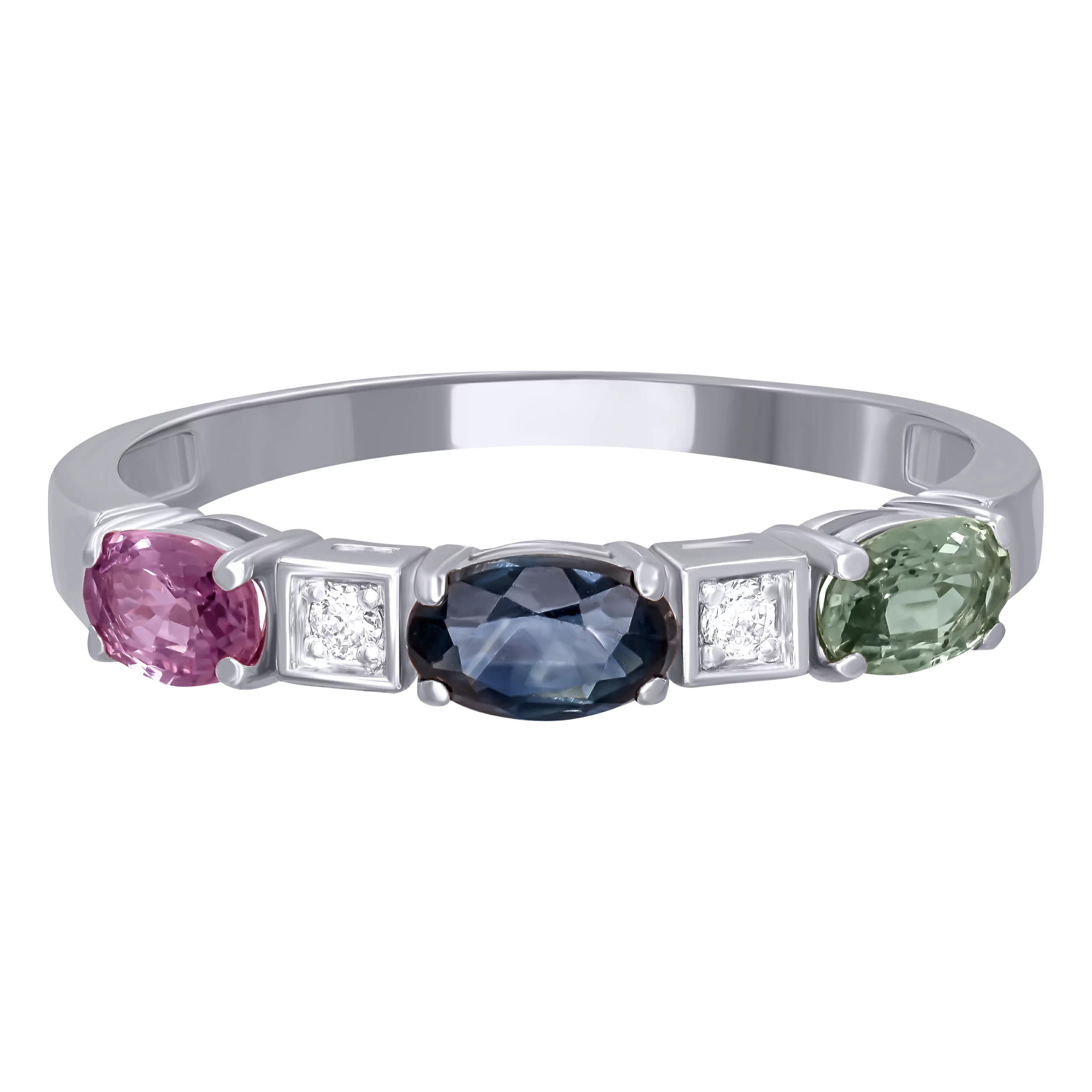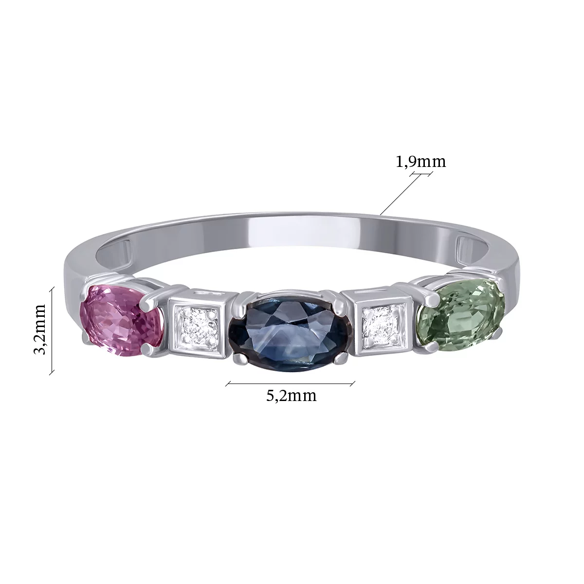 Каблучка з білого золота з діамантами і сапфірами - 964657