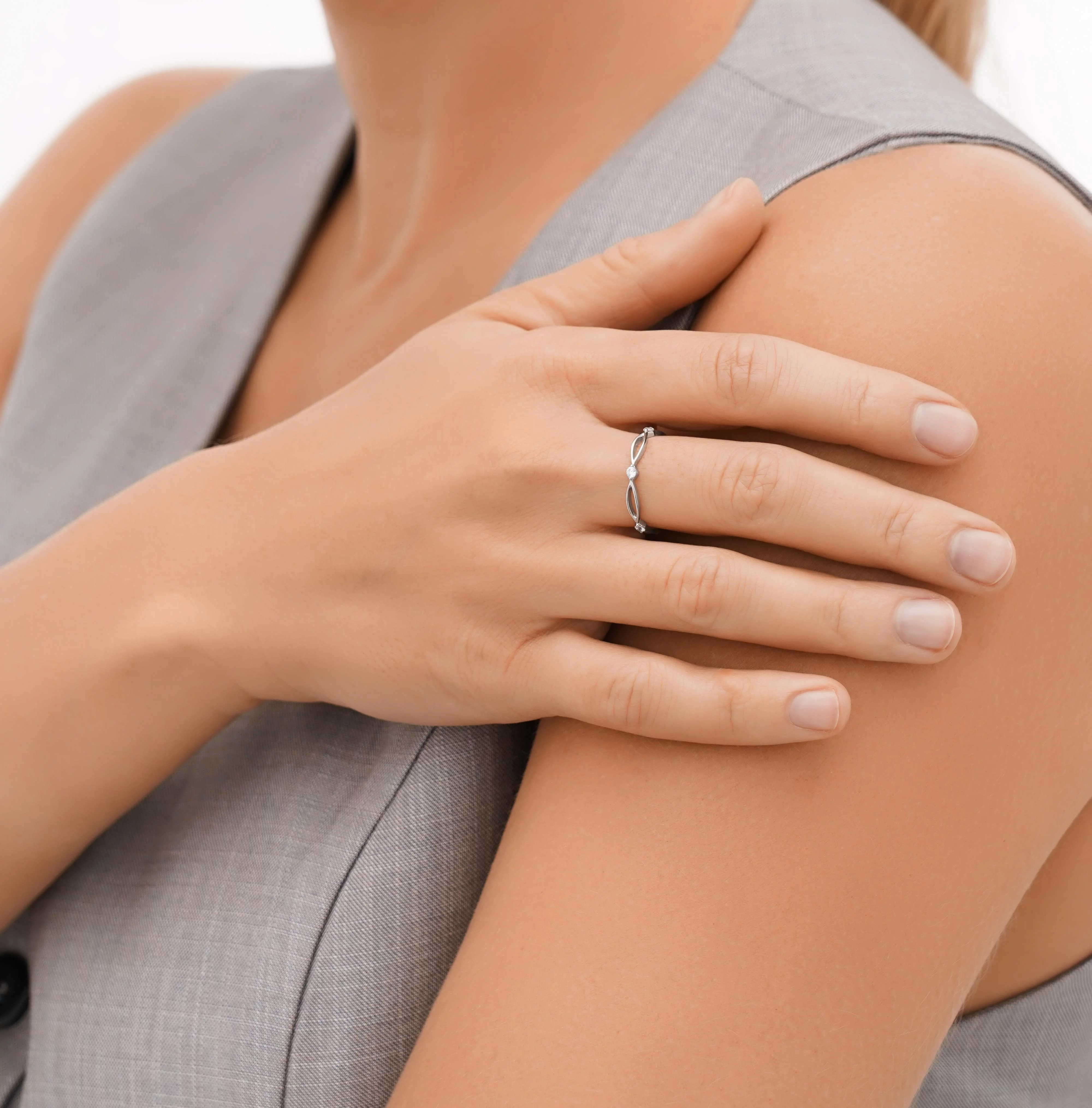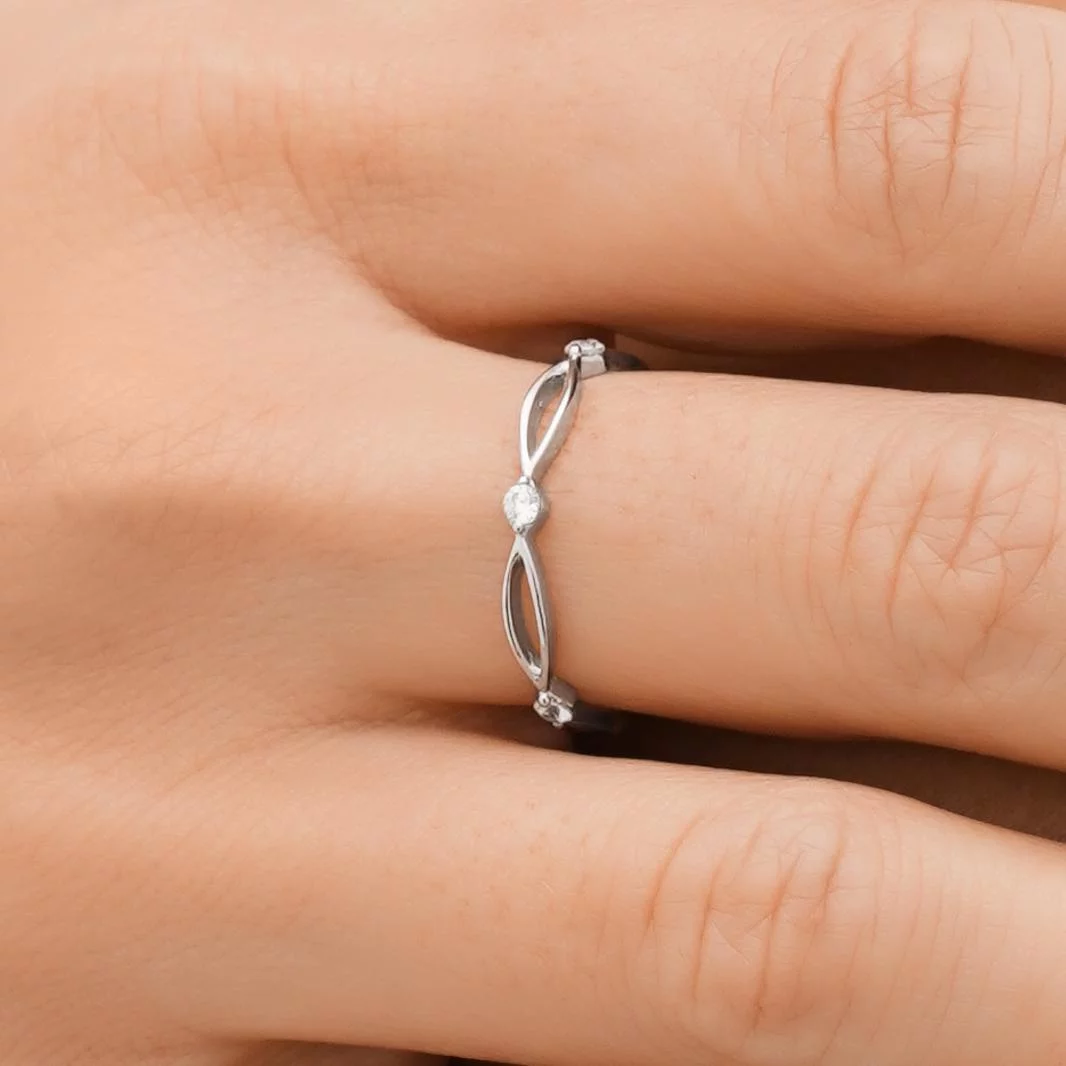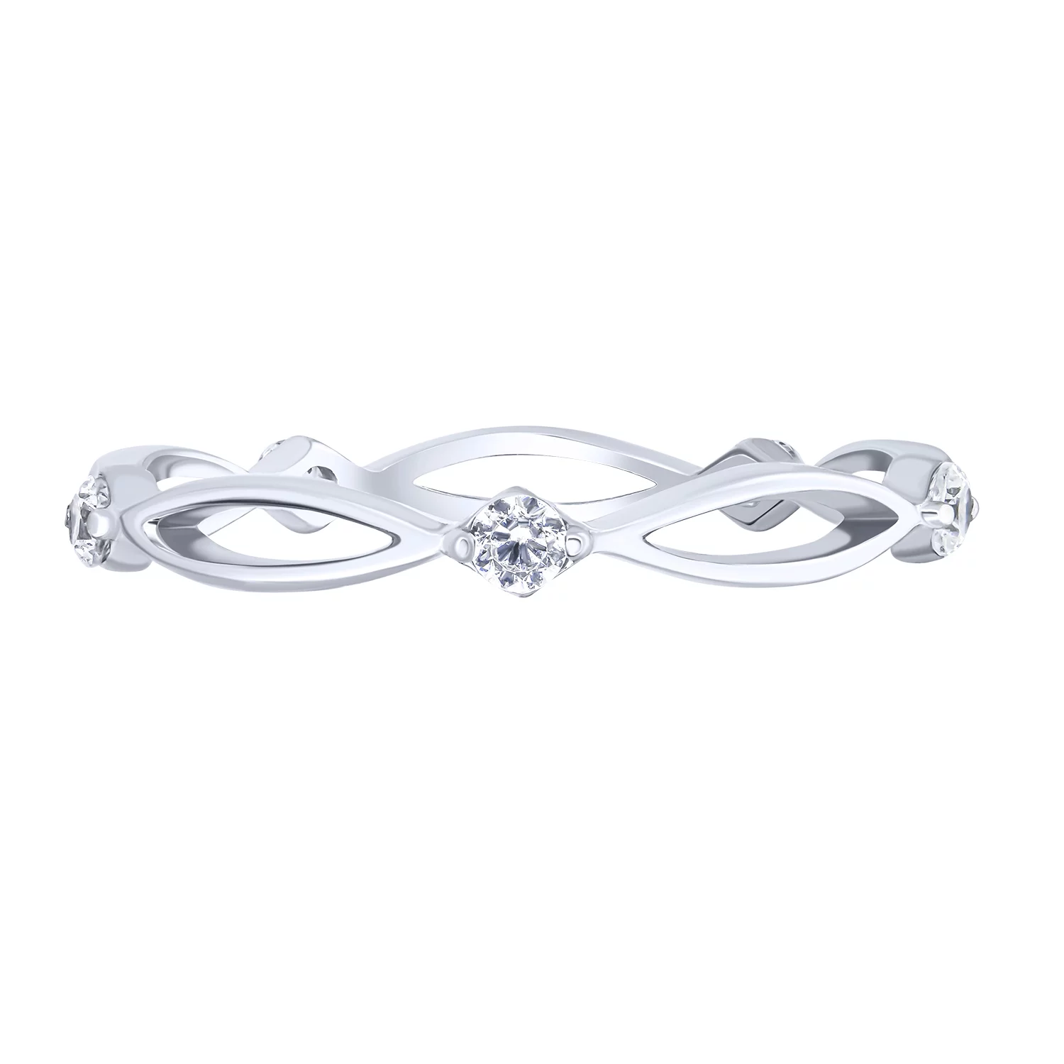 Каблучка з білого золота у стилі мінімалізм з фіанітами - 1613877