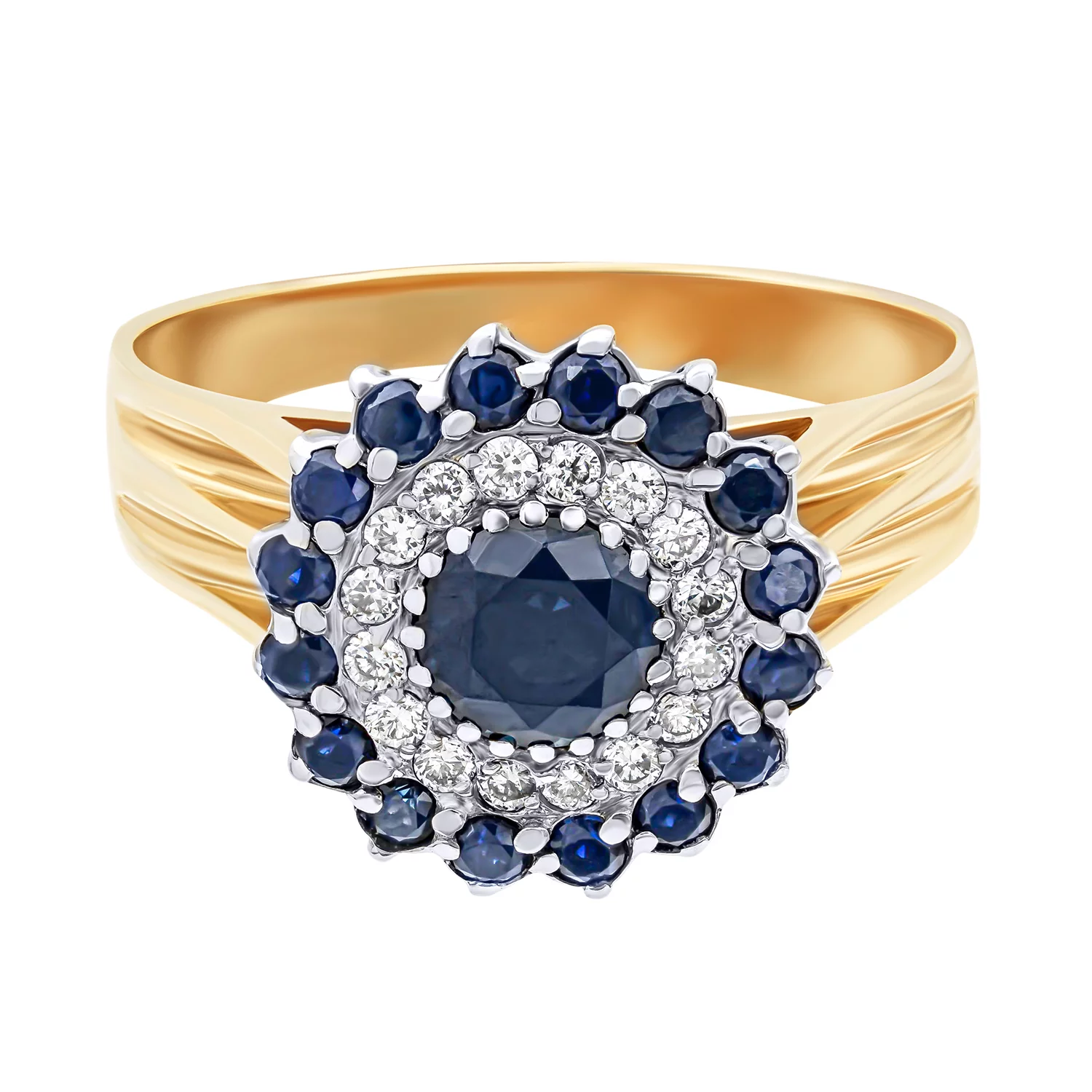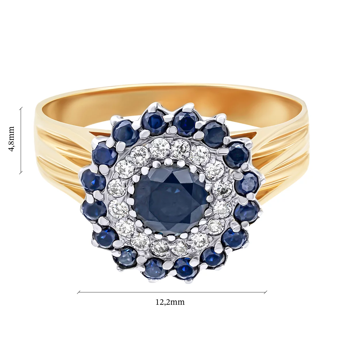 Каблучка з комбінованого золота з діамантами і сапфірами - 863873