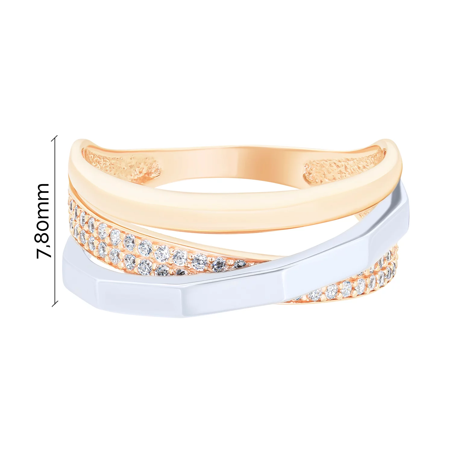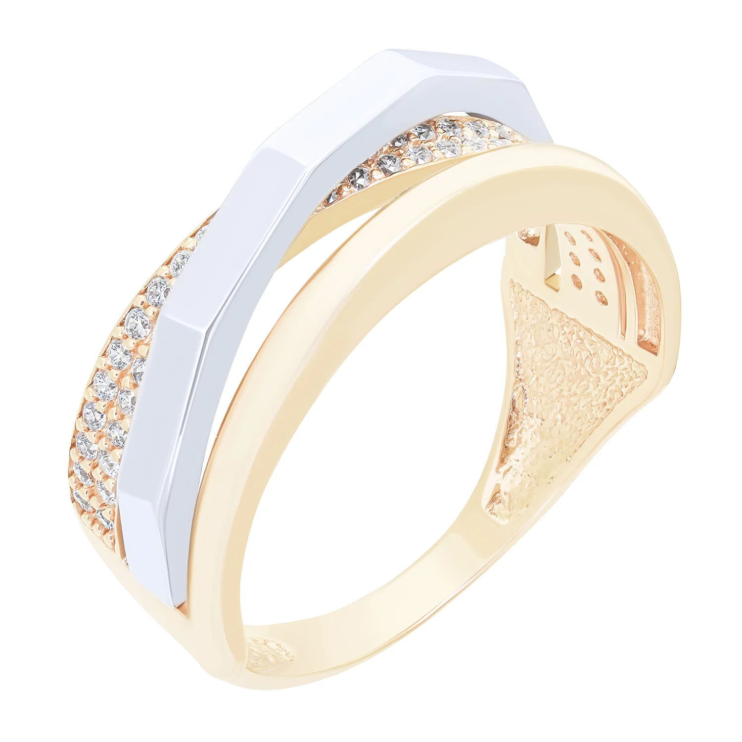 Перстень-печатка в класичному стилі з комбінованого золота з фіанітом - 1874529