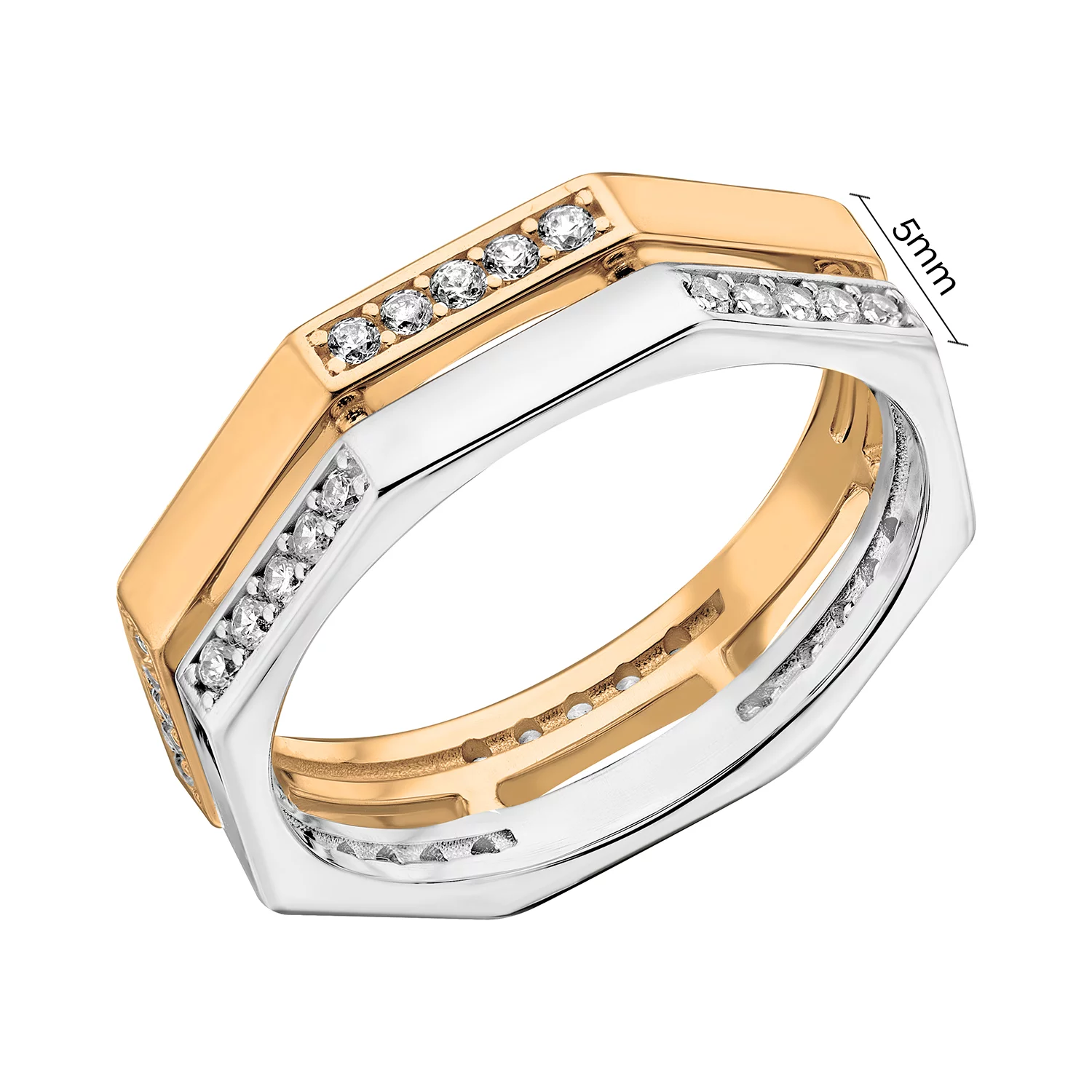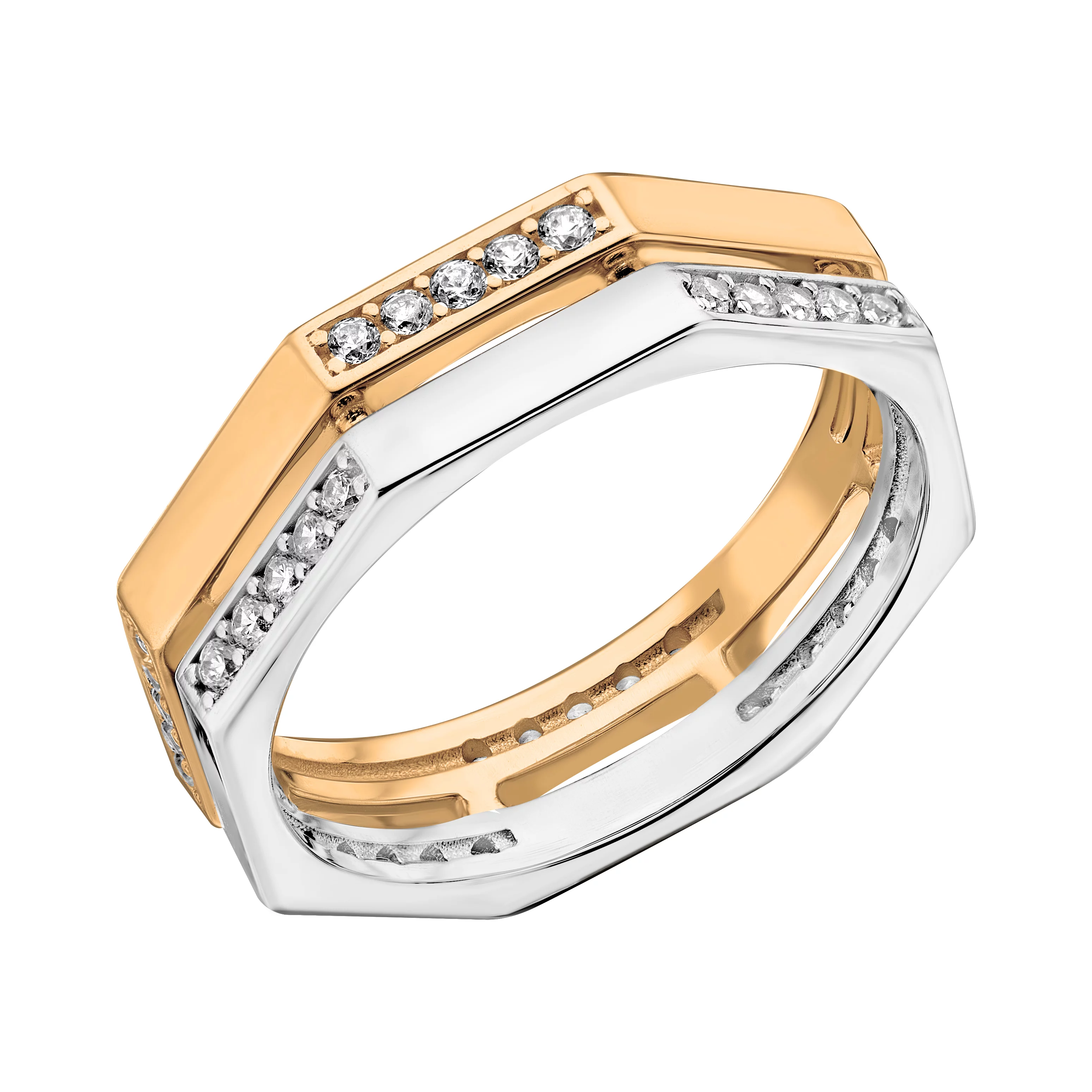 Потрійна каблучка з комбінованого золота з доріжками з фіанітів - 1919928