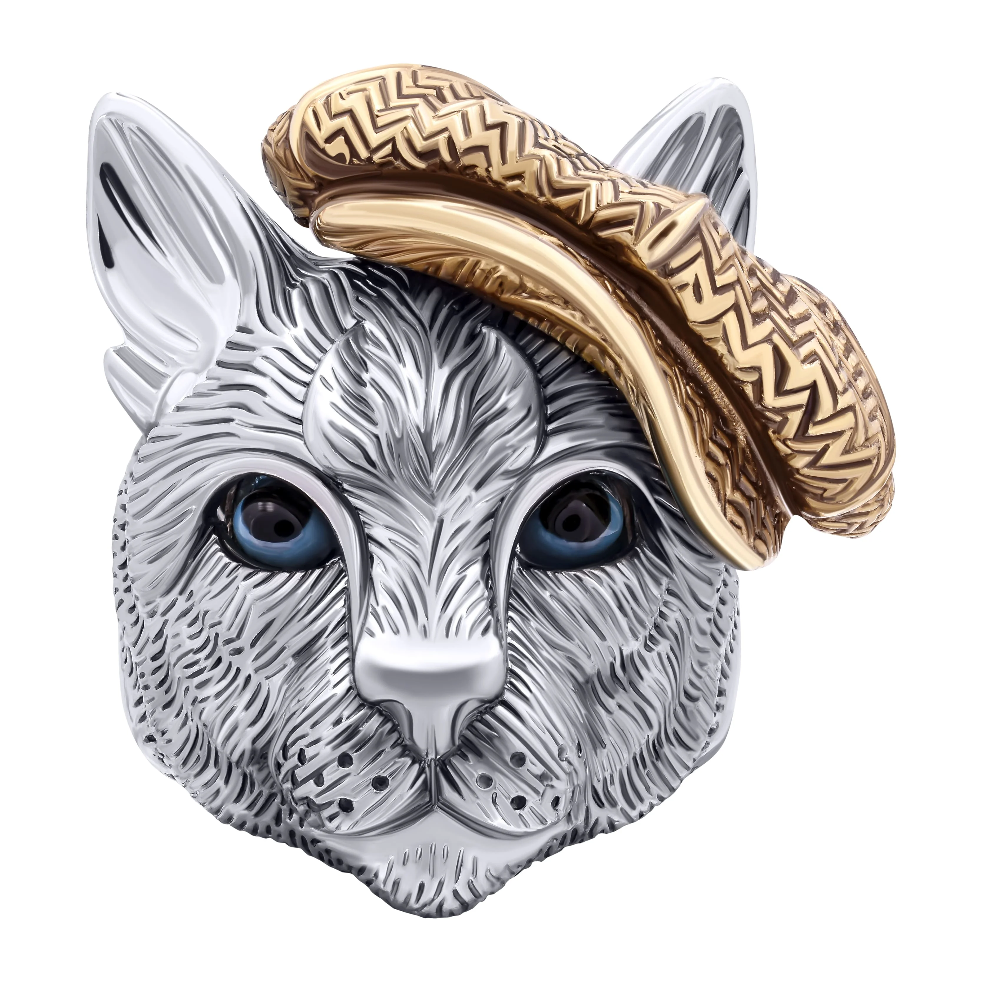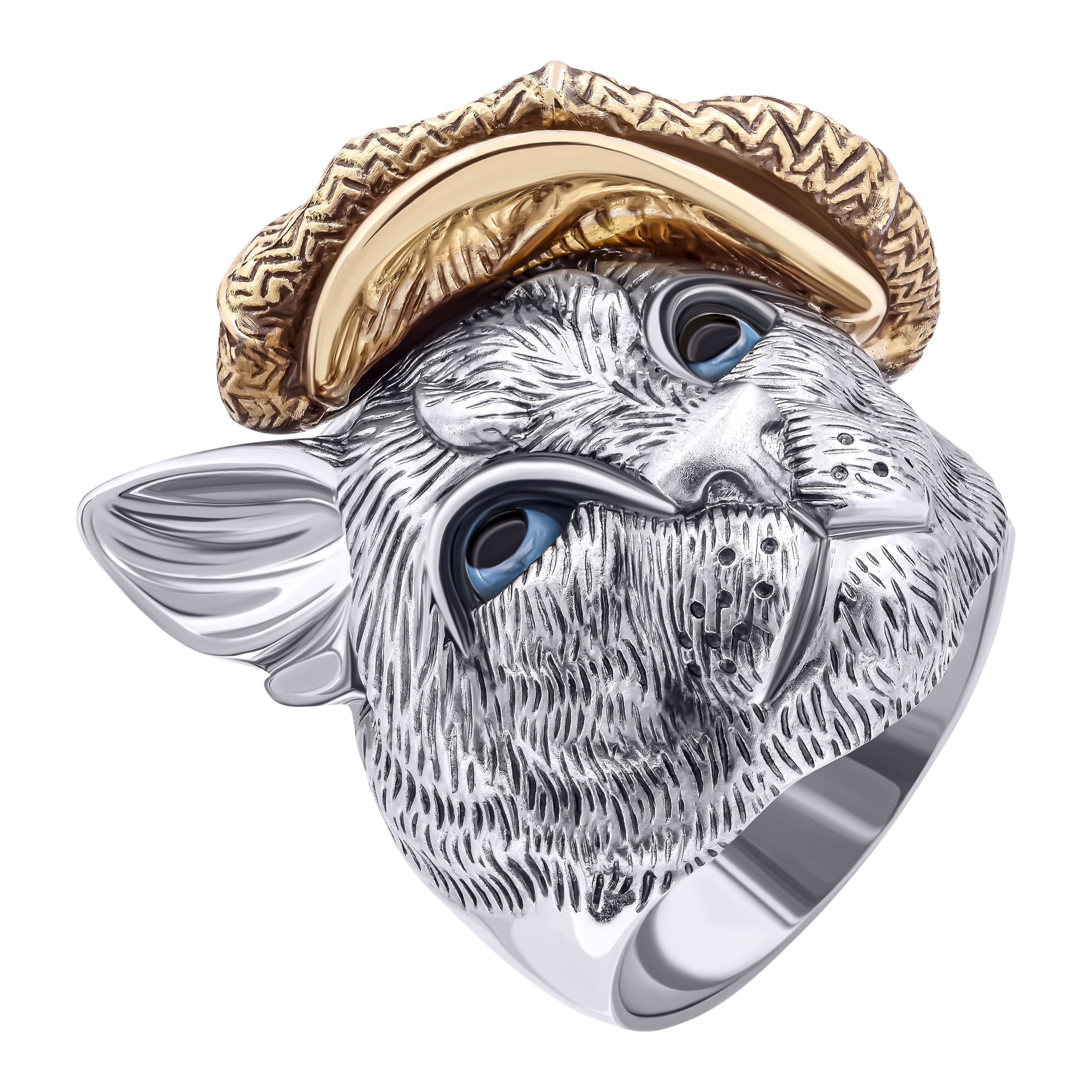 Каблучка з комбінованого золота з емаллю "Кіт" - 965041
