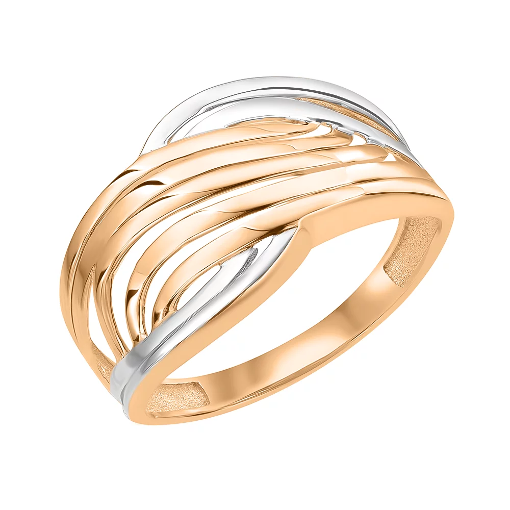 Каблучка "Кулі" в мінімалістичному стилі з комбінованого золота - 1878326