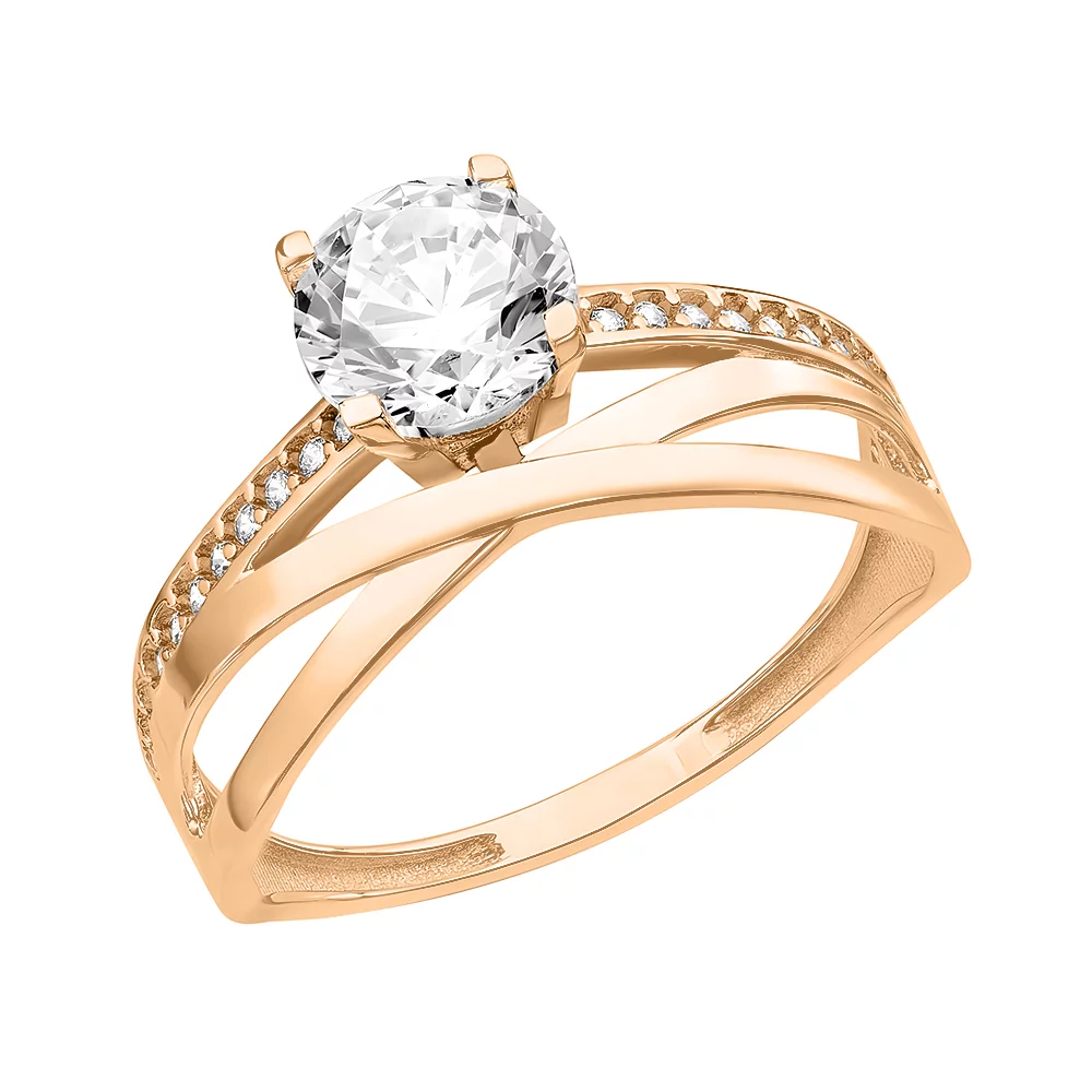 Ажурна каблучка з червоного золота "Завитки" з кварцом і фіанітами - 1534363