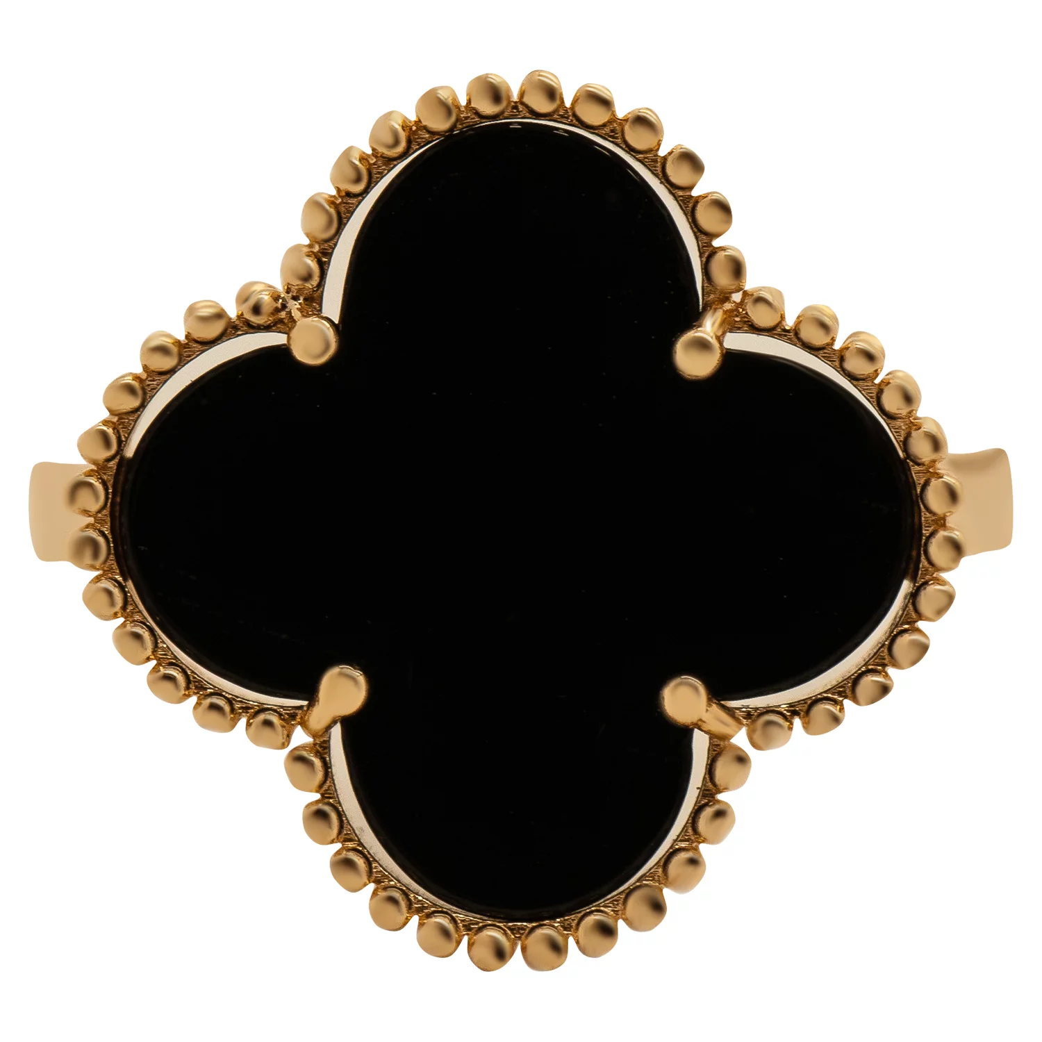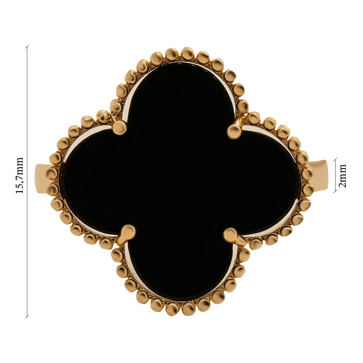 Двостороння каблучка з червоного золота «Конюшина» з оніксом і фіанітом - 1736306