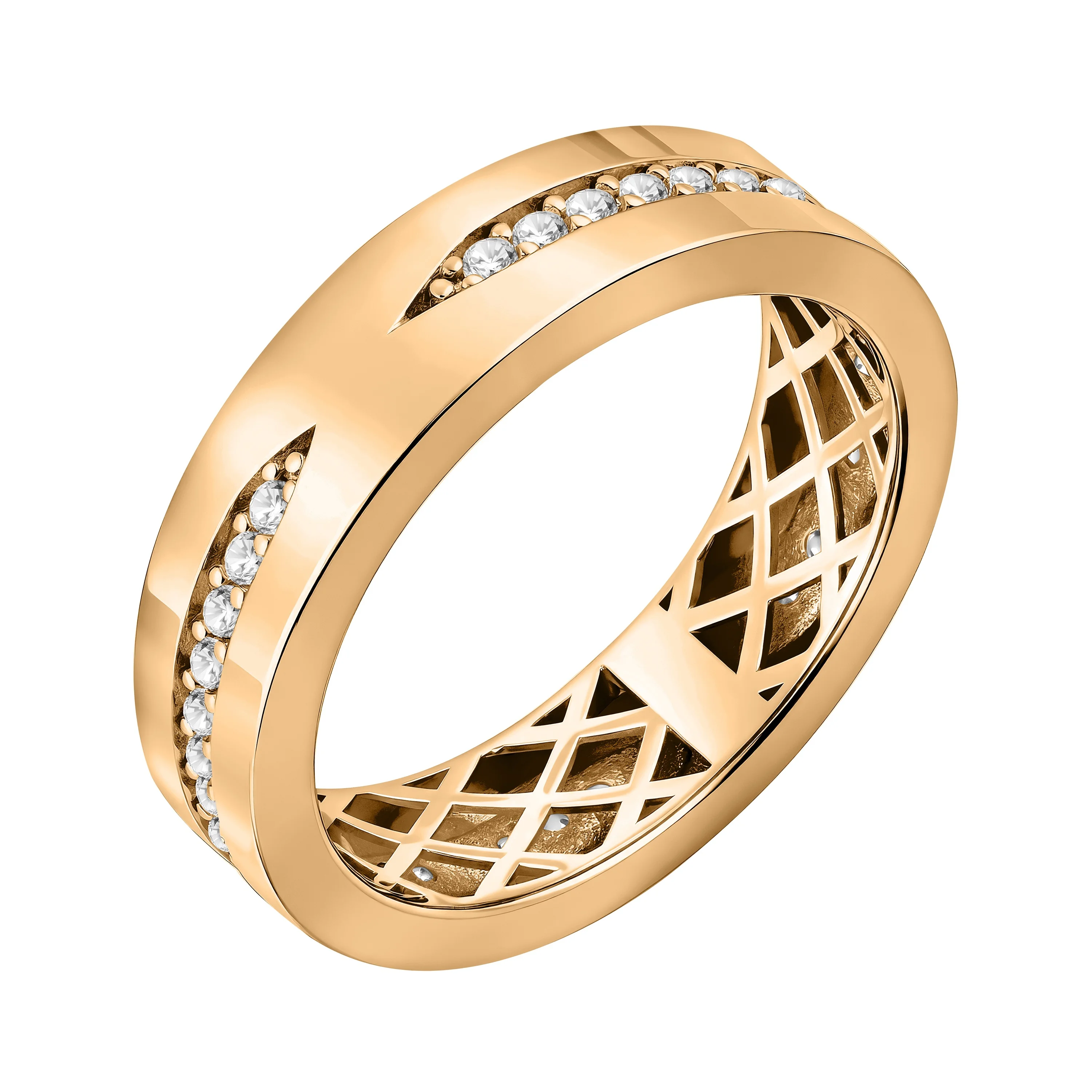 Каблучка з червоного золота з доріжками фіанітів - 2171044