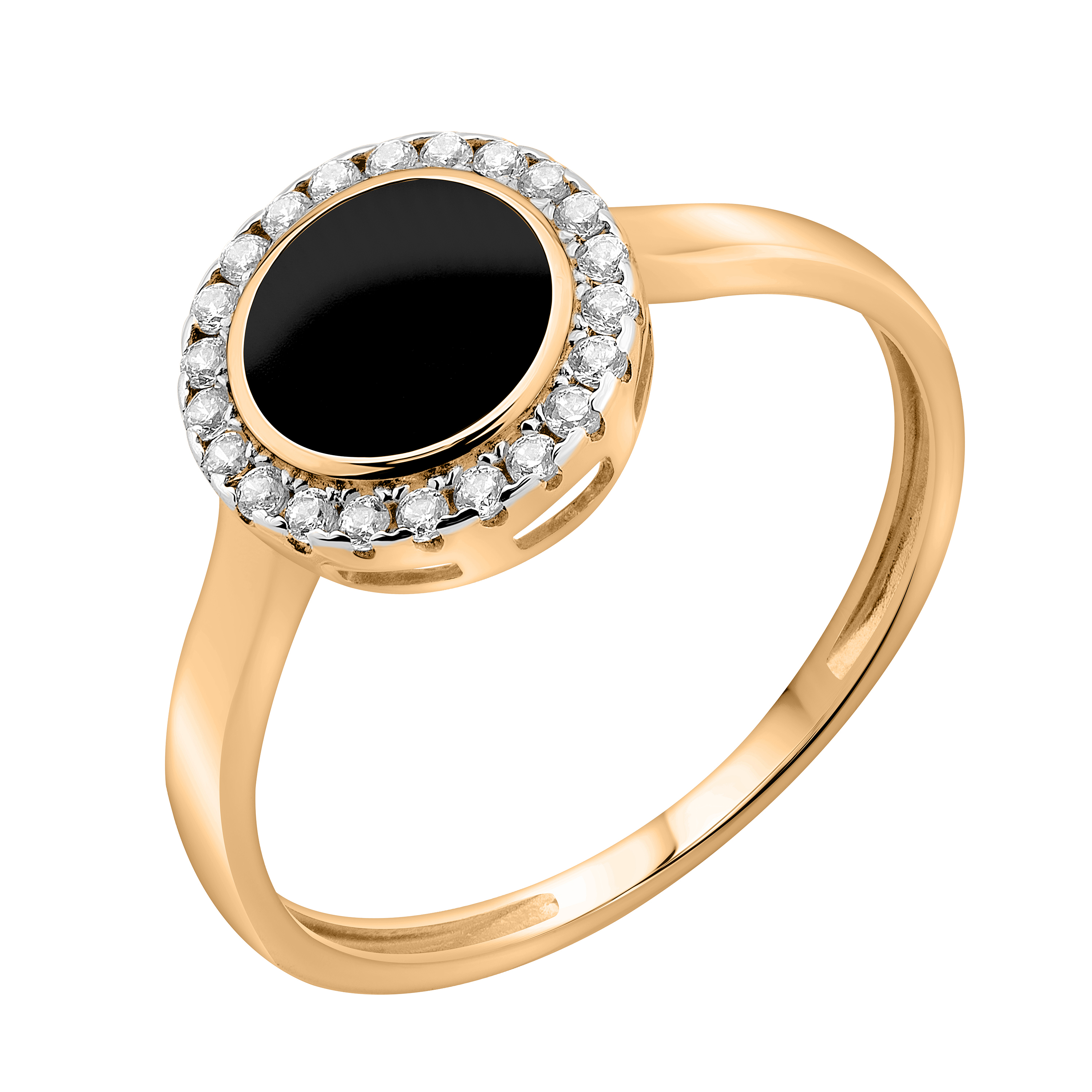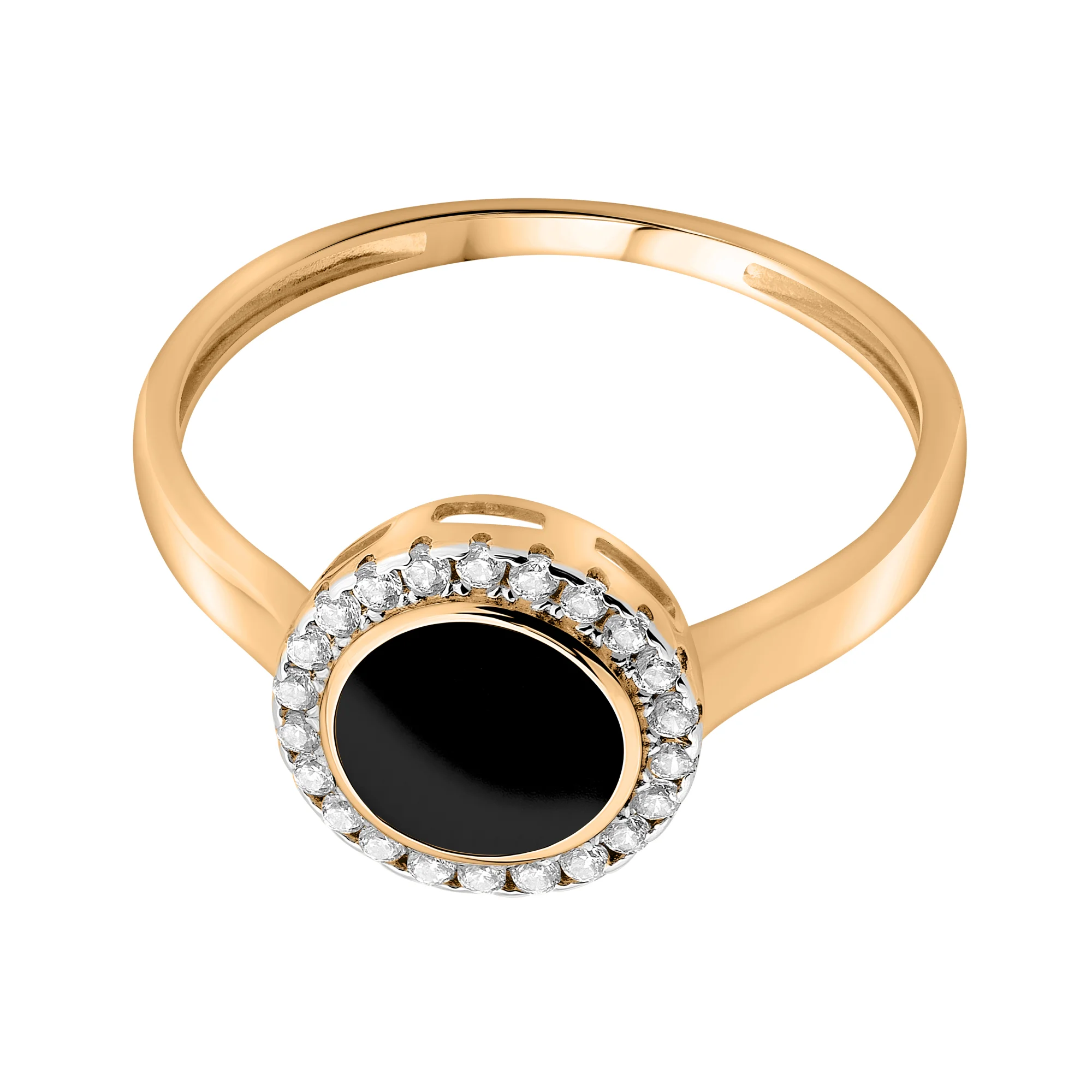 Каблучка з червоного золота з доріжкою фіанітів та емаллю - 2117272
