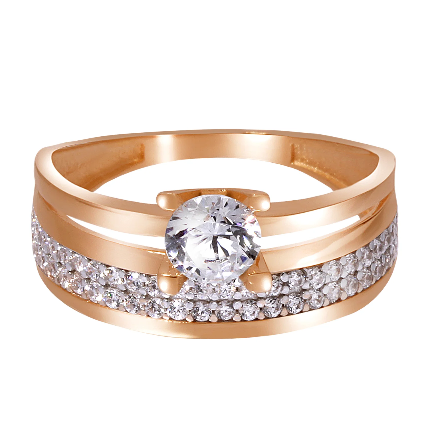 Подвійна каблучка "Переплетіння" з фіанітами з червоного золота - 1736141