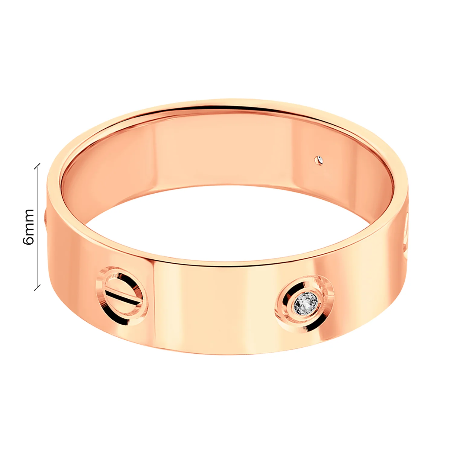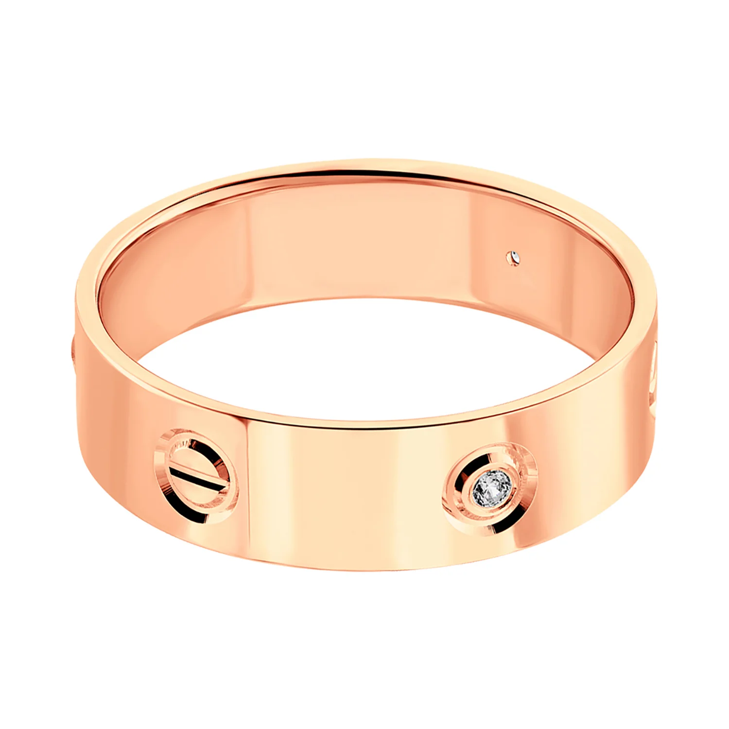 Каблучка широка з червоного золота "Переплетіння" з фіанітами - 1736137
