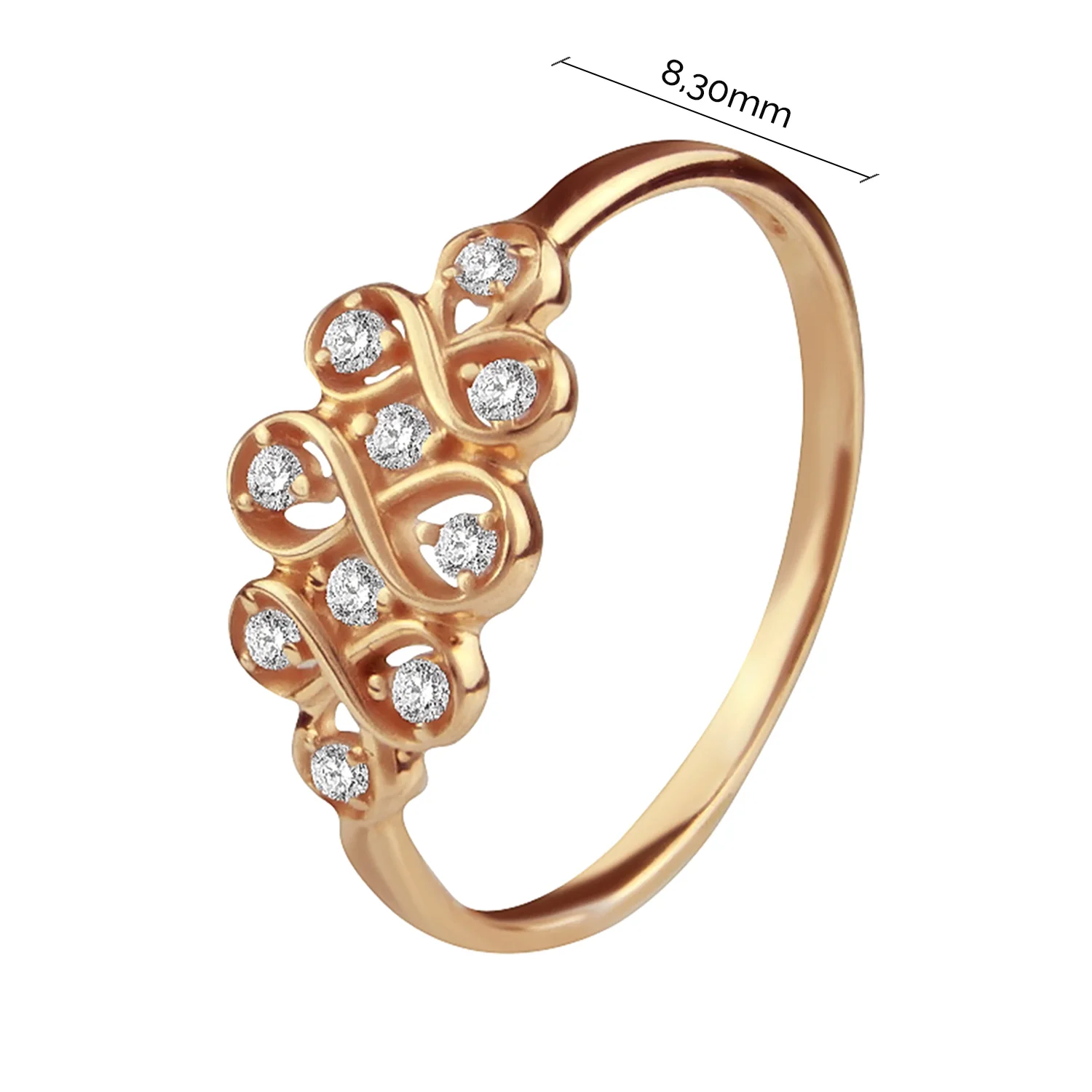 Каблучка в мінімалістичному стилі з червоного золота з фіанітом - 1867186