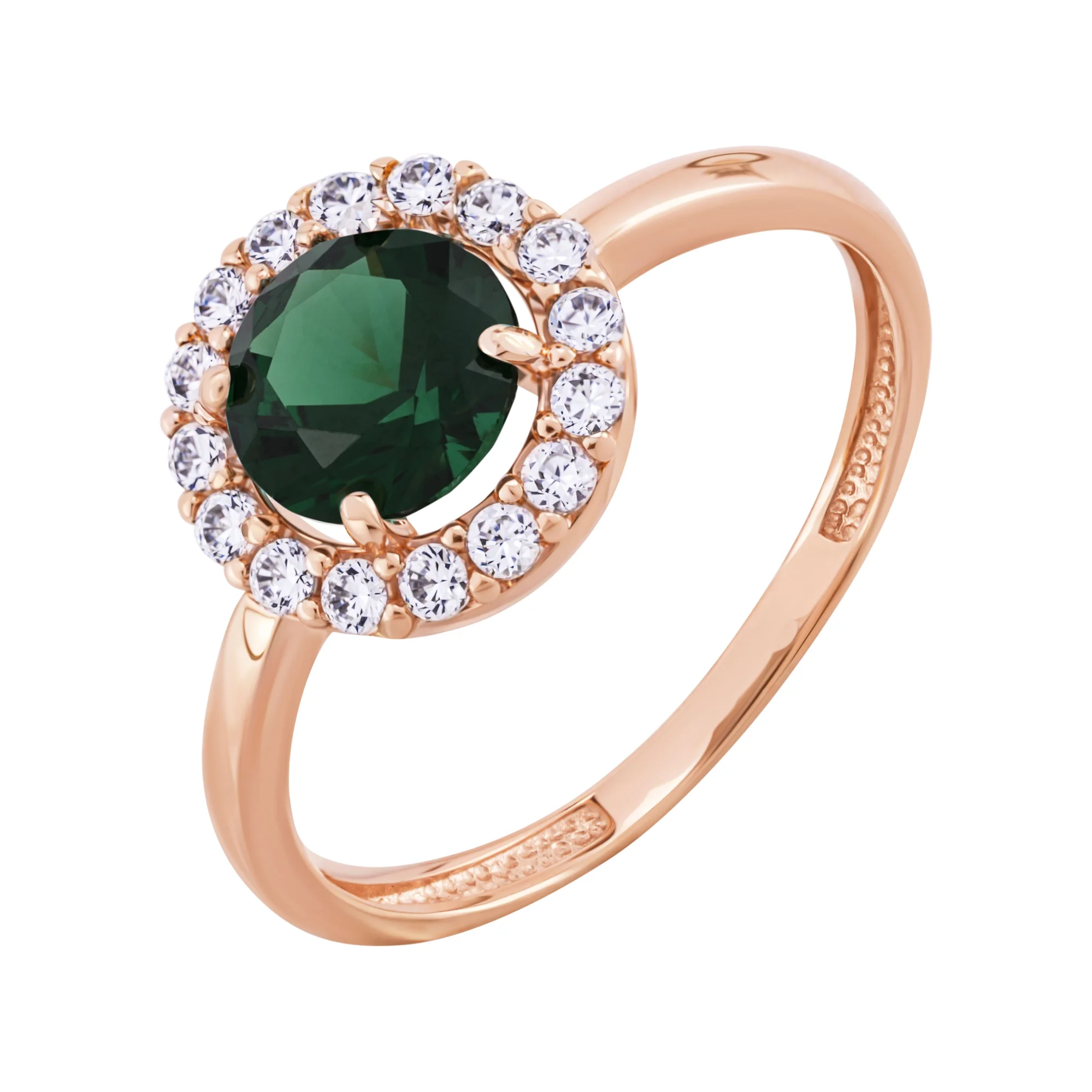 Каблучка з червоного золота з турмаліном та фіанітами - 2108644
