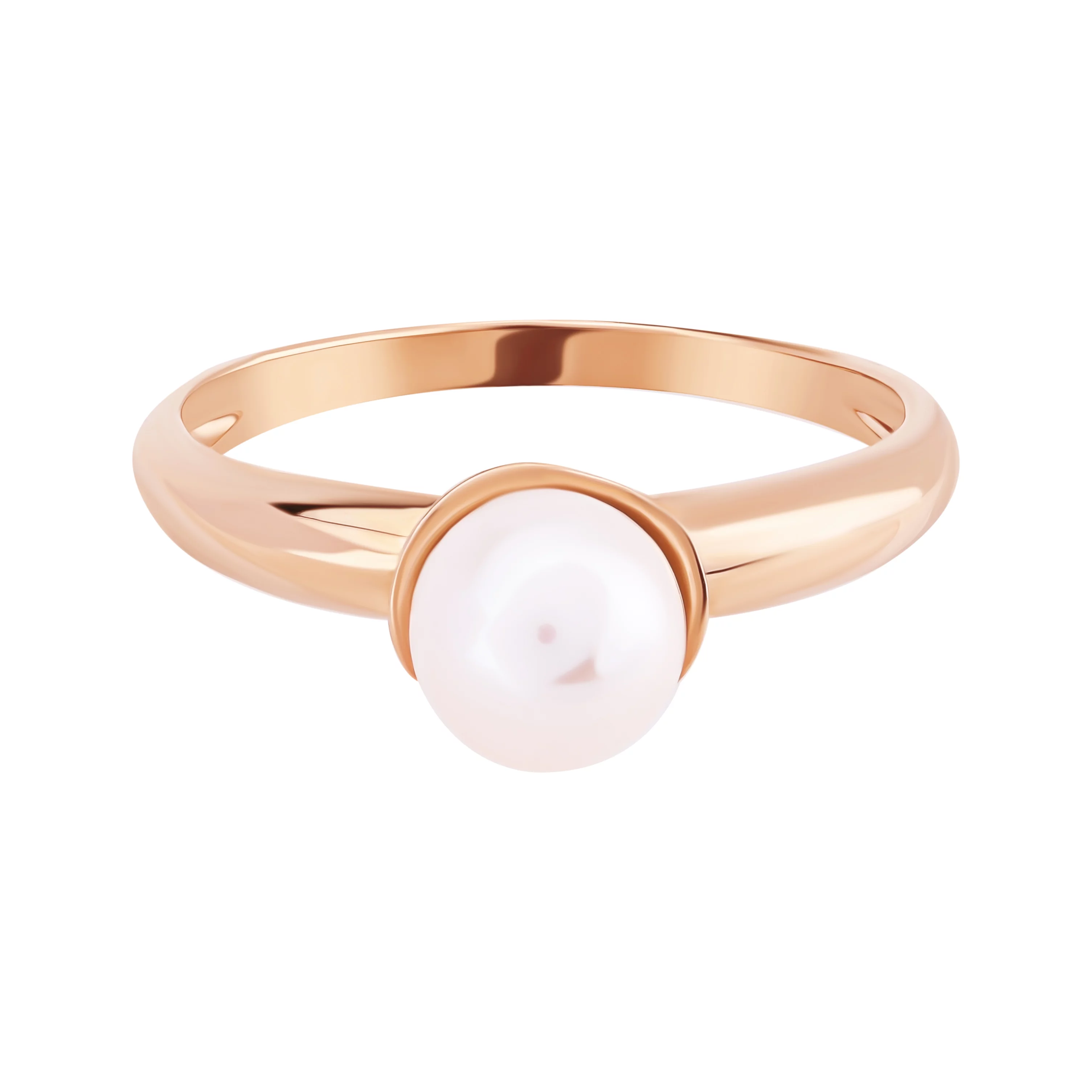 Елегантна каблучка з червоного золота з перлиною та фіанітами - 1955338