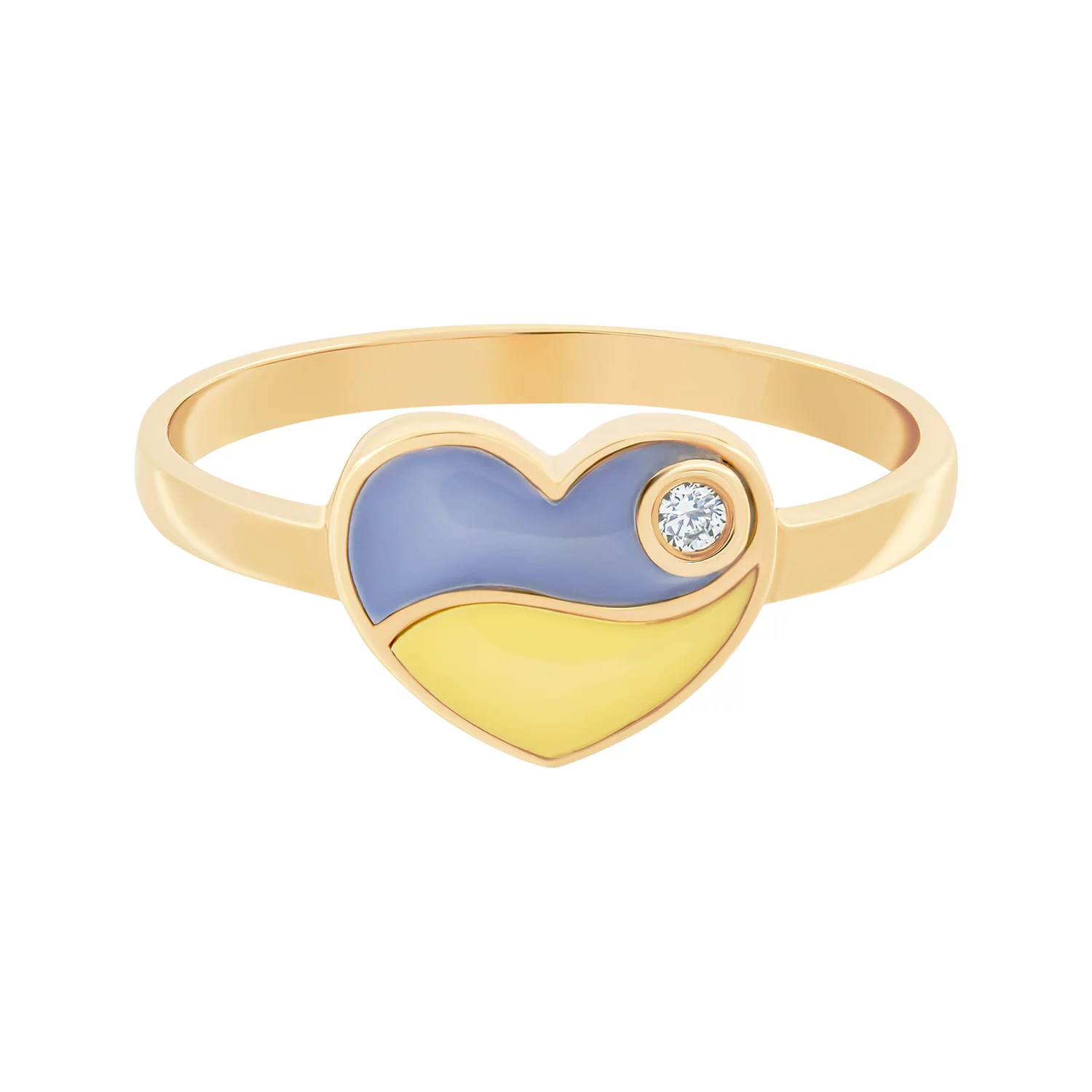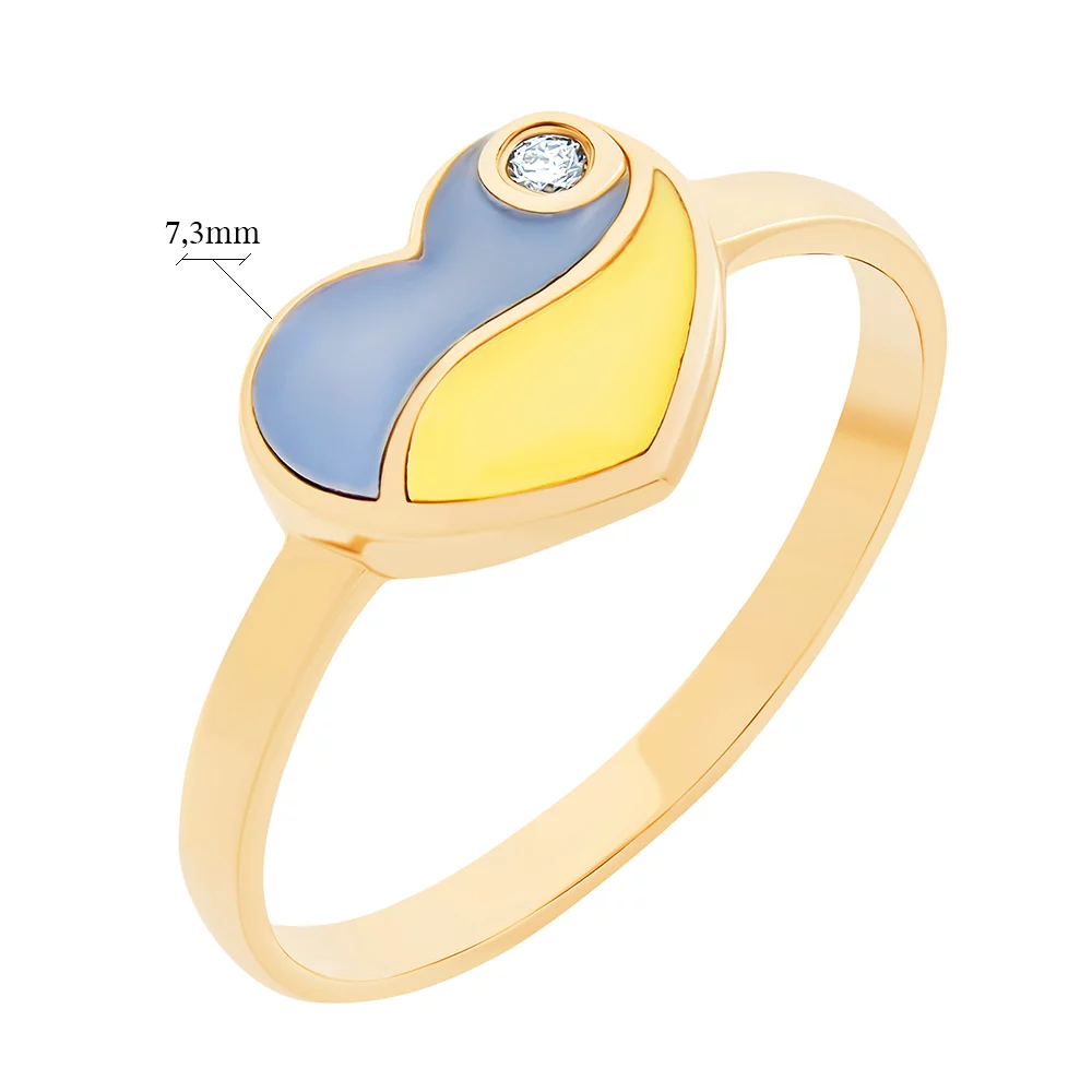Каблучка з червоного золота "В серці з Україною" з діамантом і емаллю - 1500138