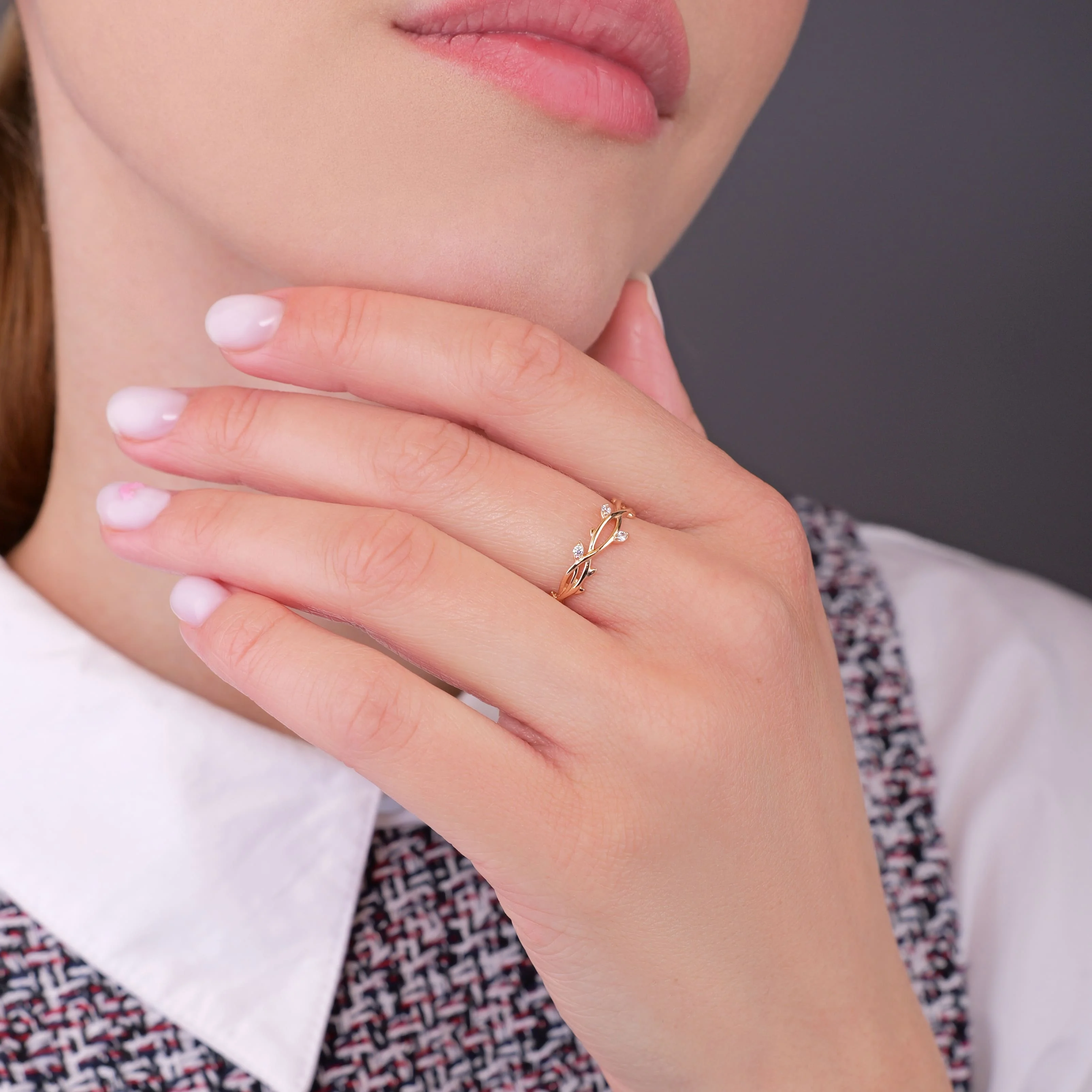 Каблучка з червоного золота "Гілочка" з фіанітами - 1976775
