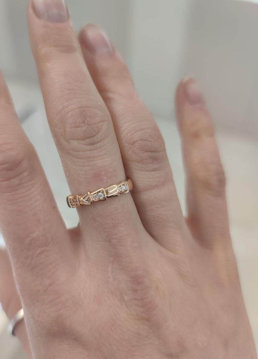Каблучка з червоного золота "Змія" з фіанітами - 2117274