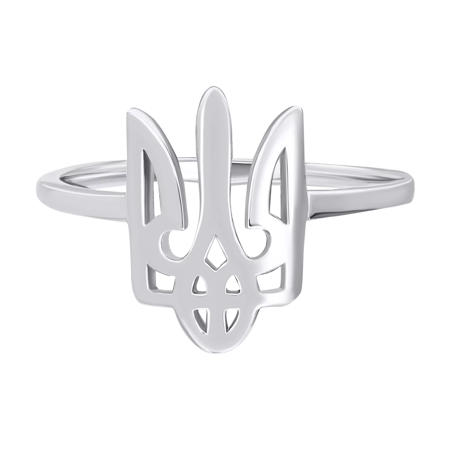 Каблучка зі срібла "Герб України-Тризуб" з родіюванням - 1530831