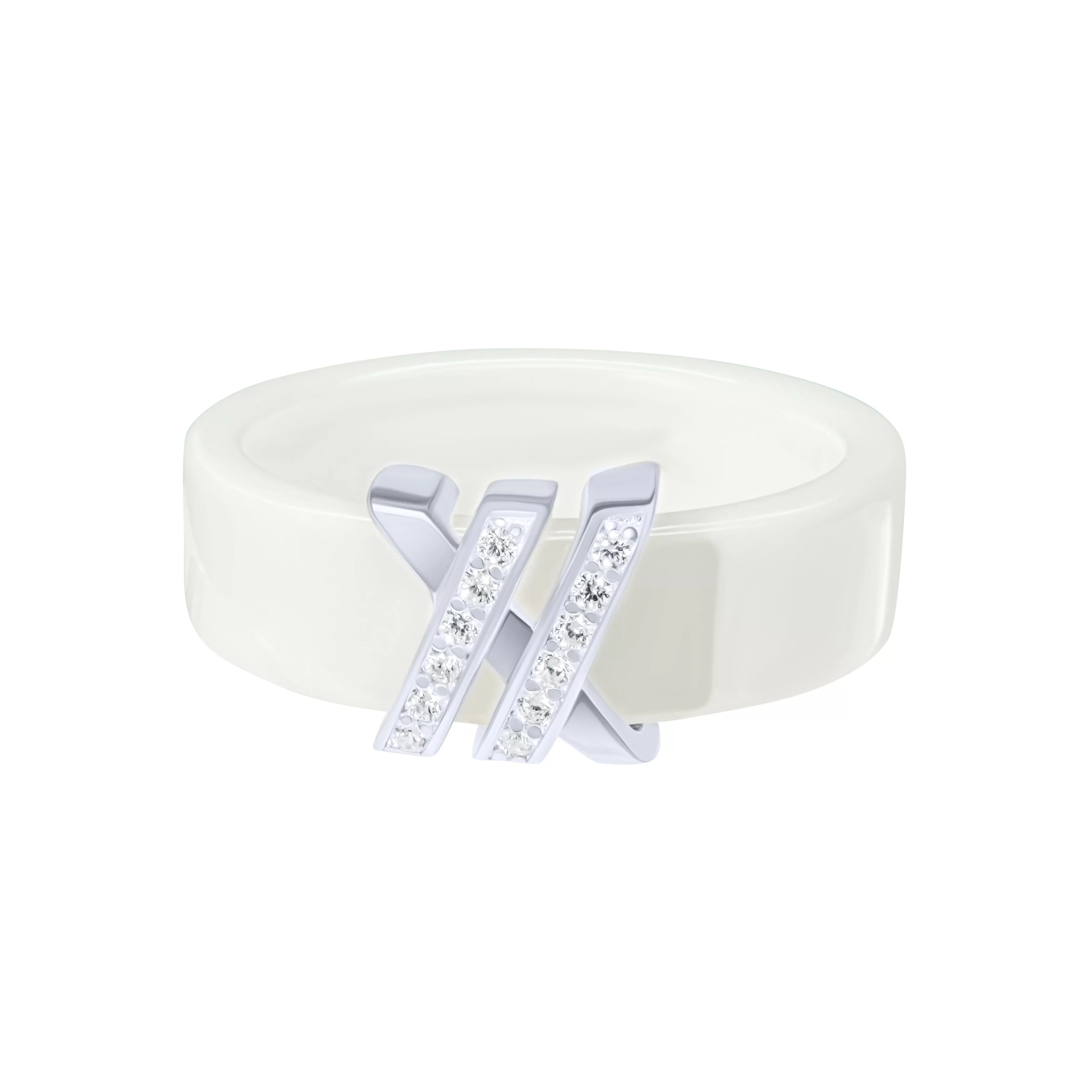 Каблучка зі срібла з доріжкою фіанітів з керамікою - 1815062