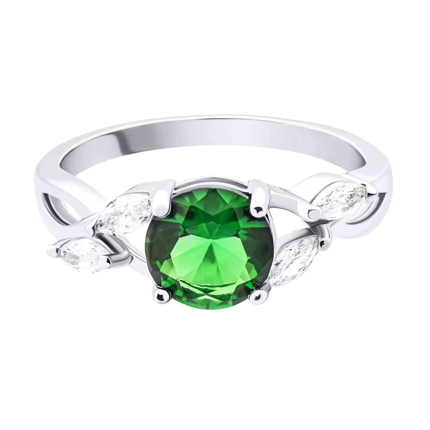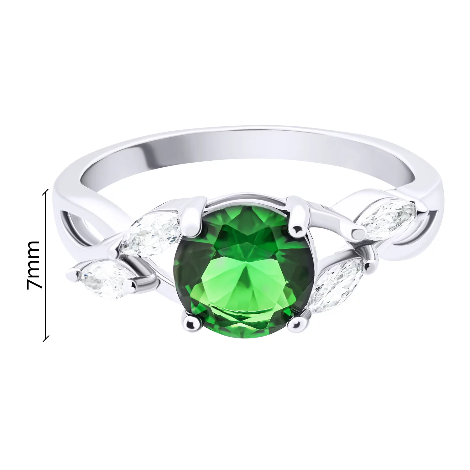 Каблучка зі срібла з великим смарагдом і фіанітами - 1524718