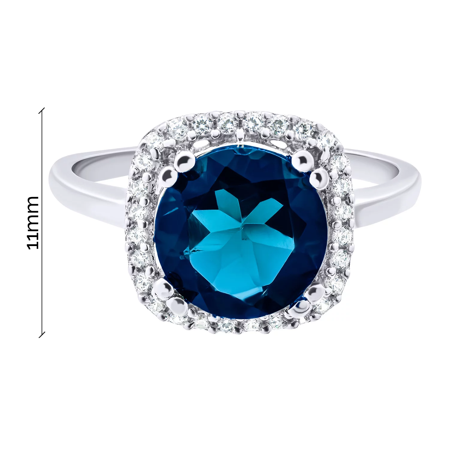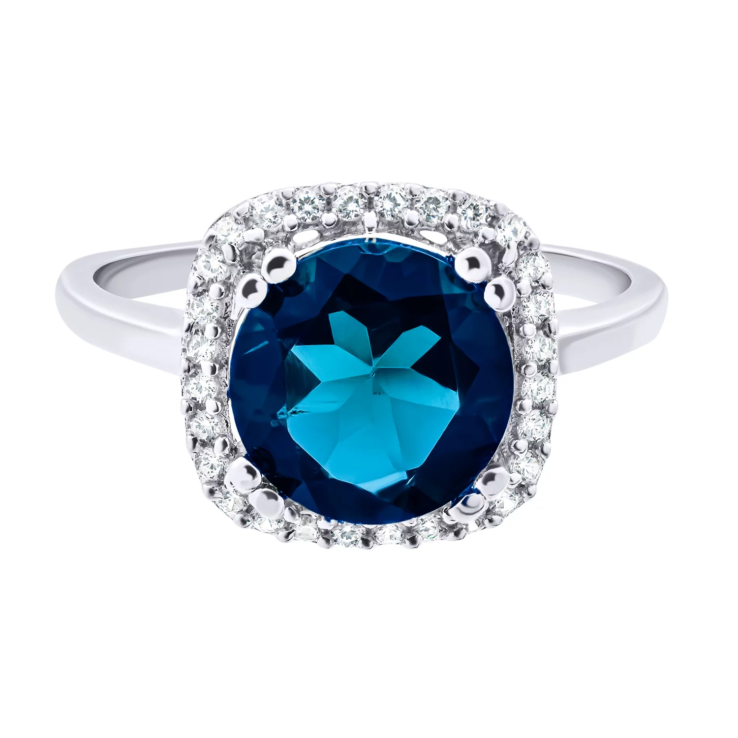 Каблучка зі срібла з сапфіром і фіанітами - 1566640