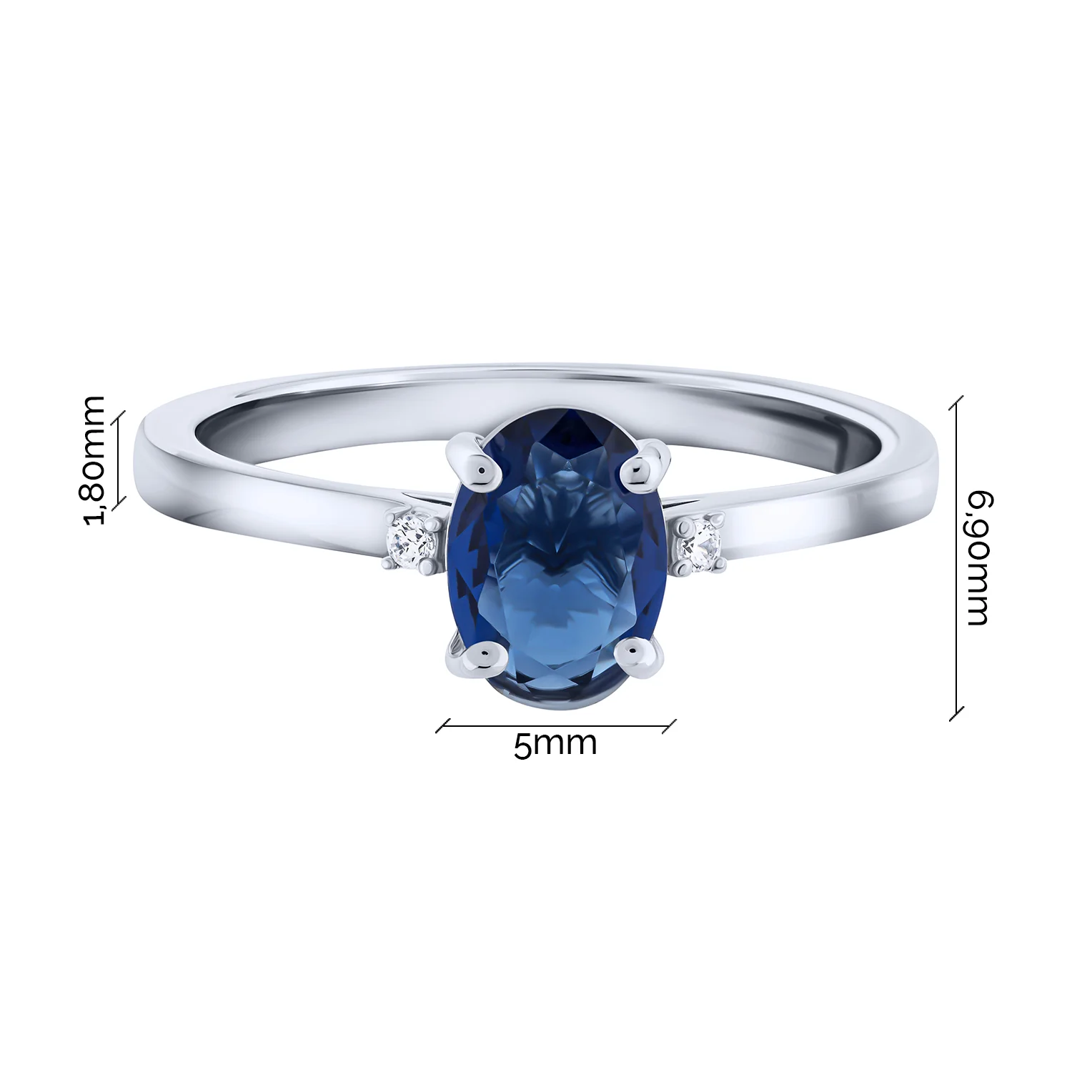 Каблучка зі срібла з сапфіром та фіанітами - 2162745