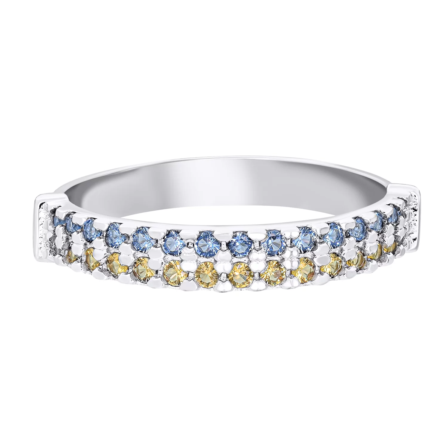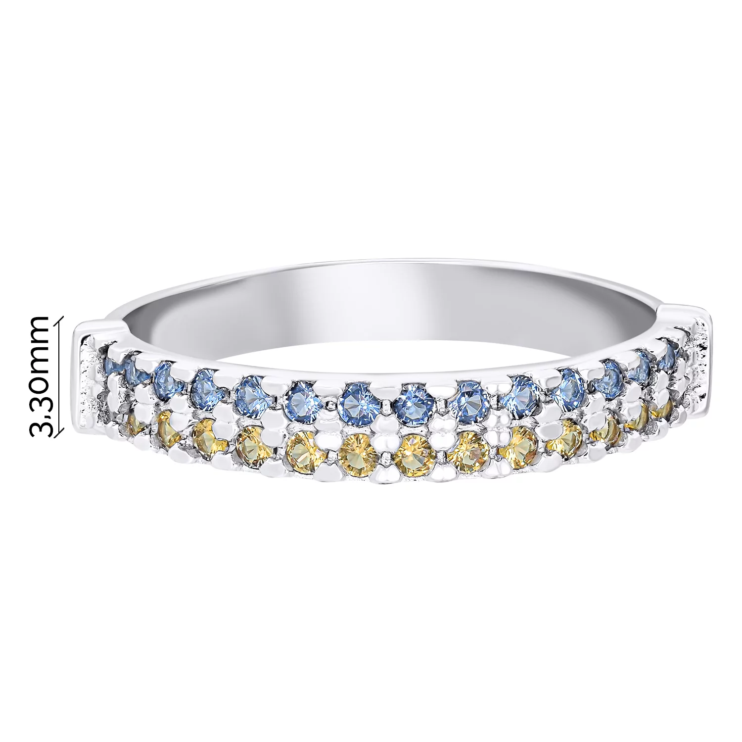 Каблучка зі срібла з синьо-жовтими фіанітами - 1549886