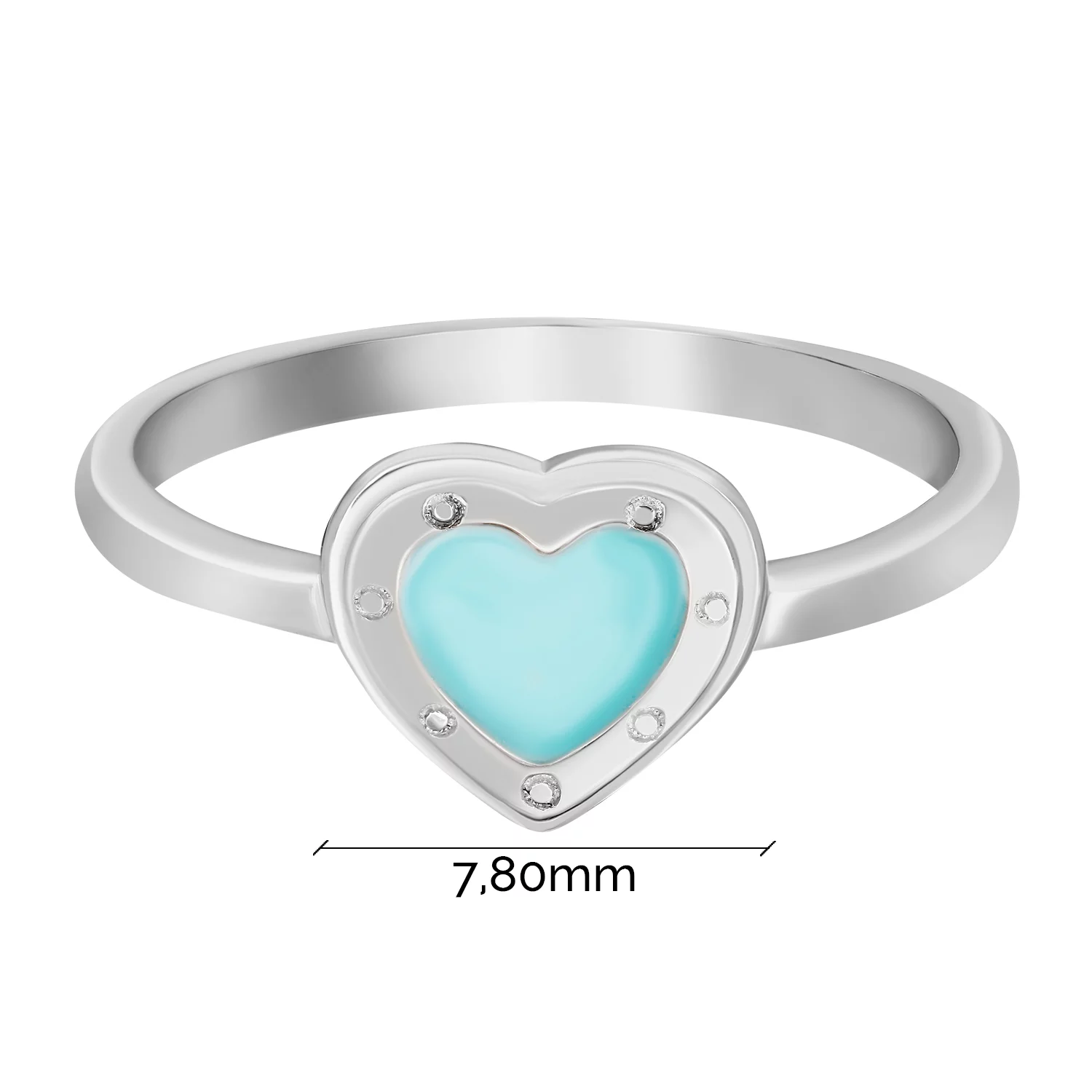 Каблучка зі срібла "Сердечко" з емаллю - 1542847
