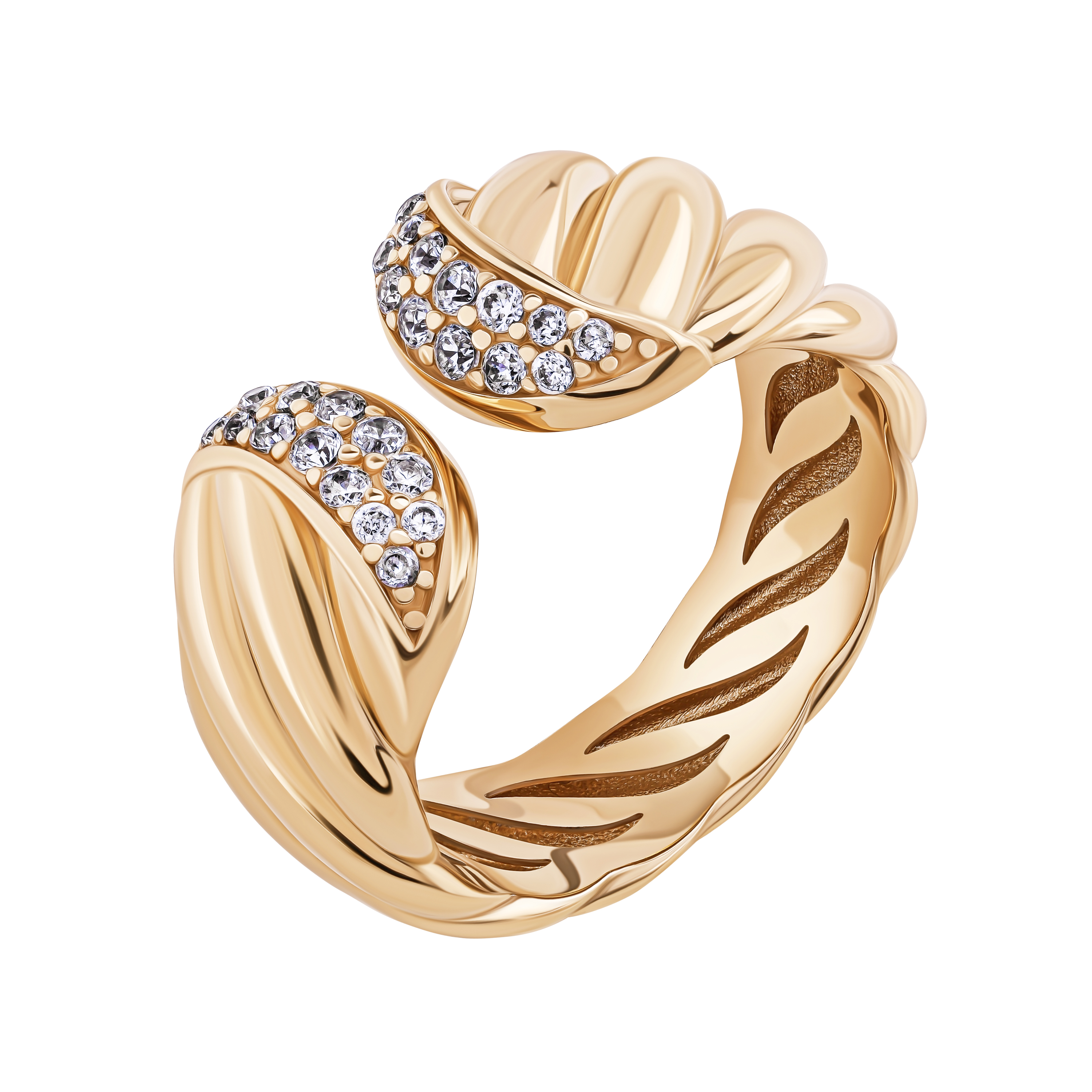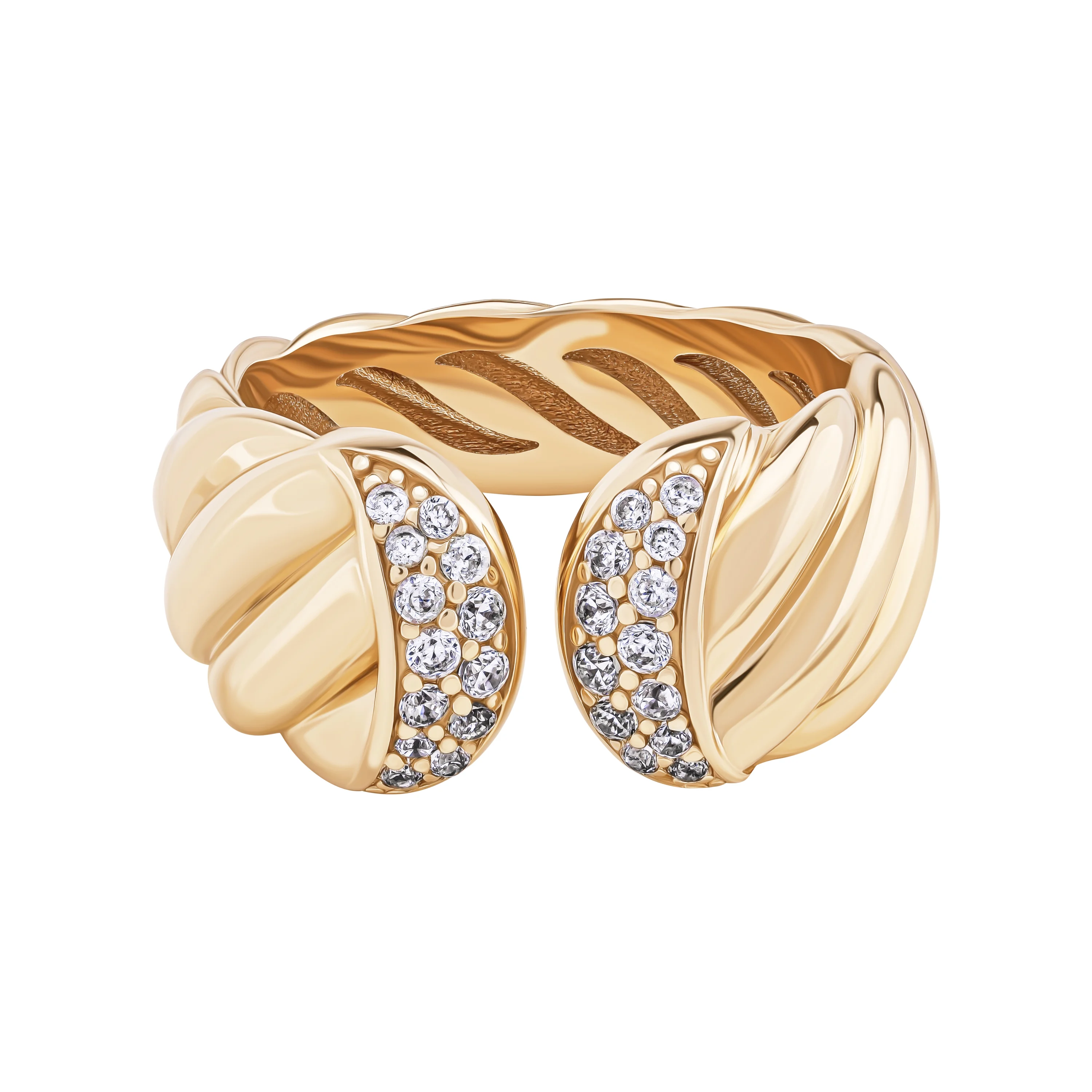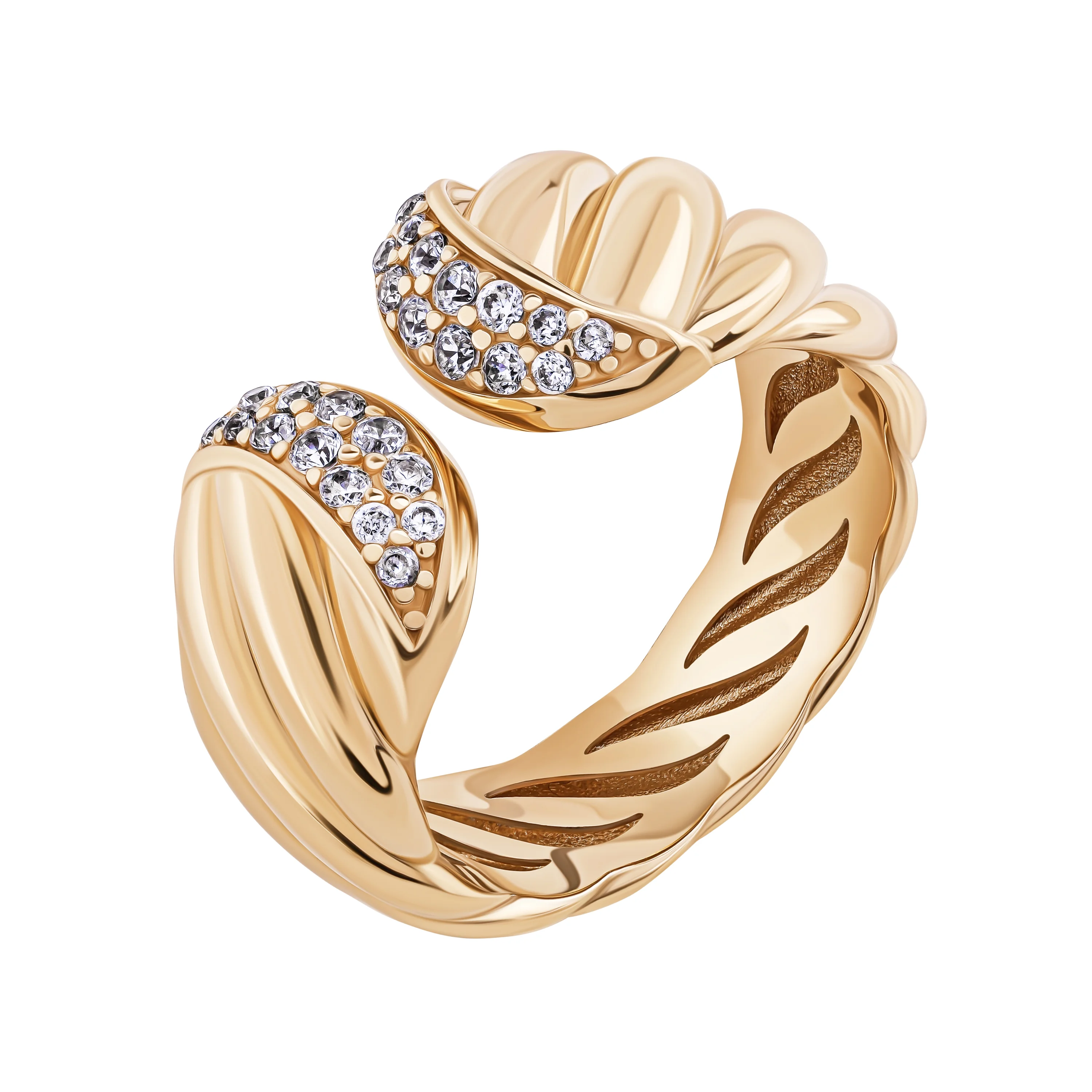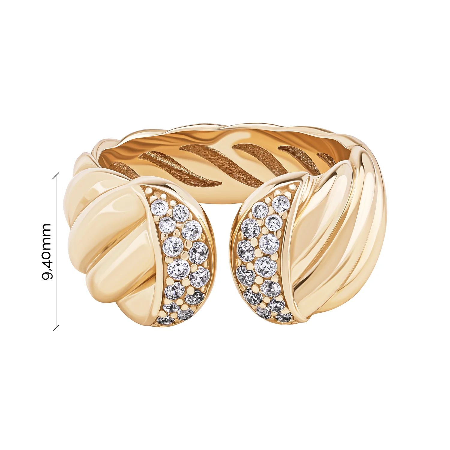 Каблучка з жовтого золота незамкнена з фіанітами - 2076525