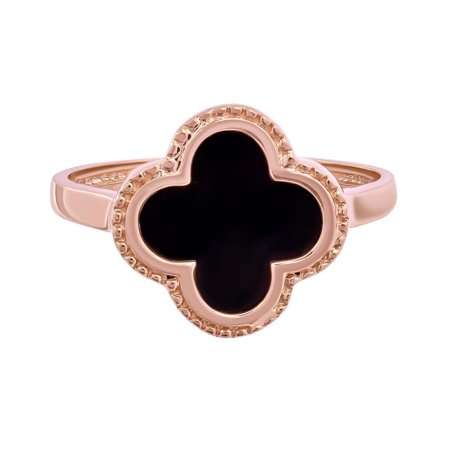 Двостороння каблучка з червоного золота "Конюшина" з оніксом і фіанітом - 1736306