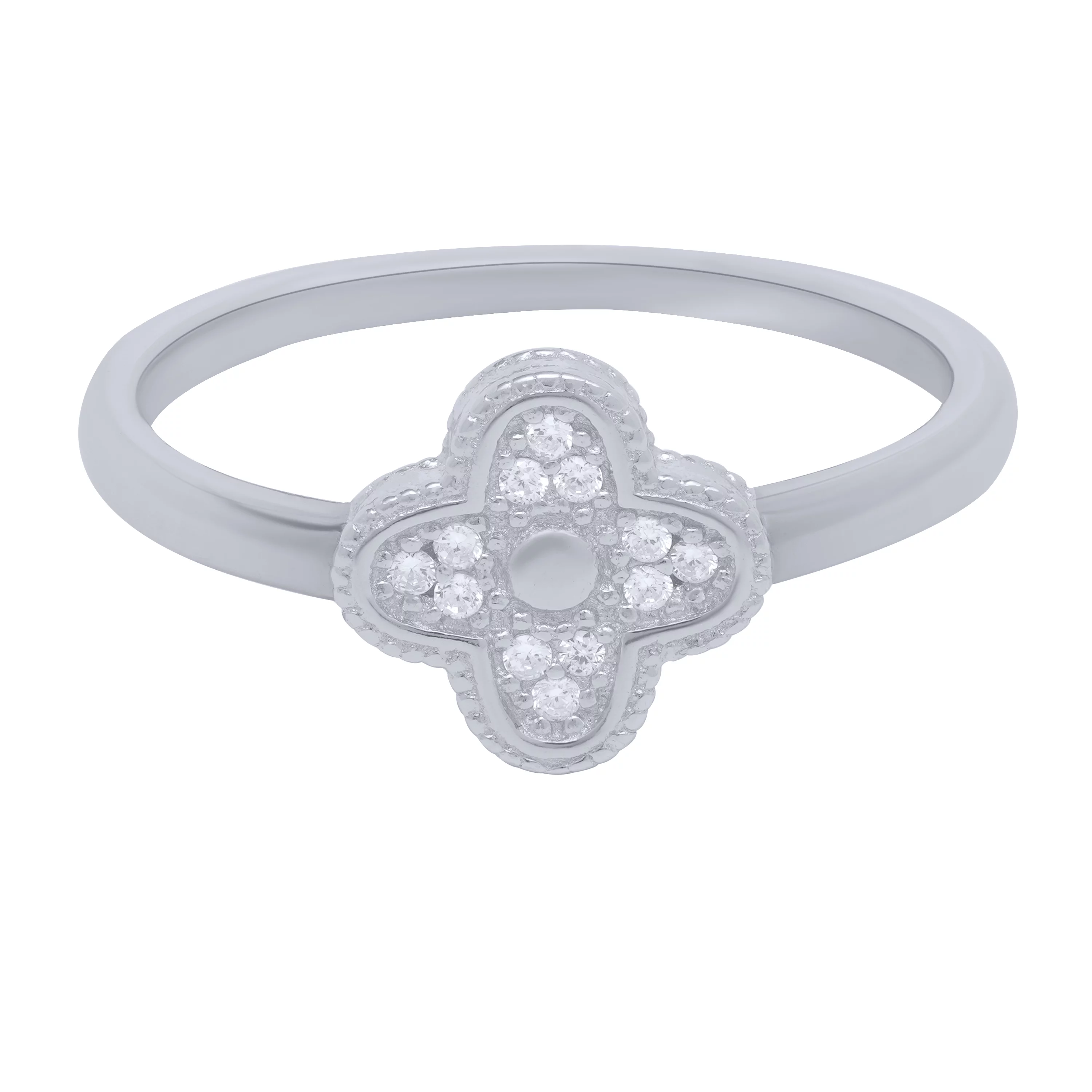 Каблучка "Конюшина" срібна з фіанітами - 1682861