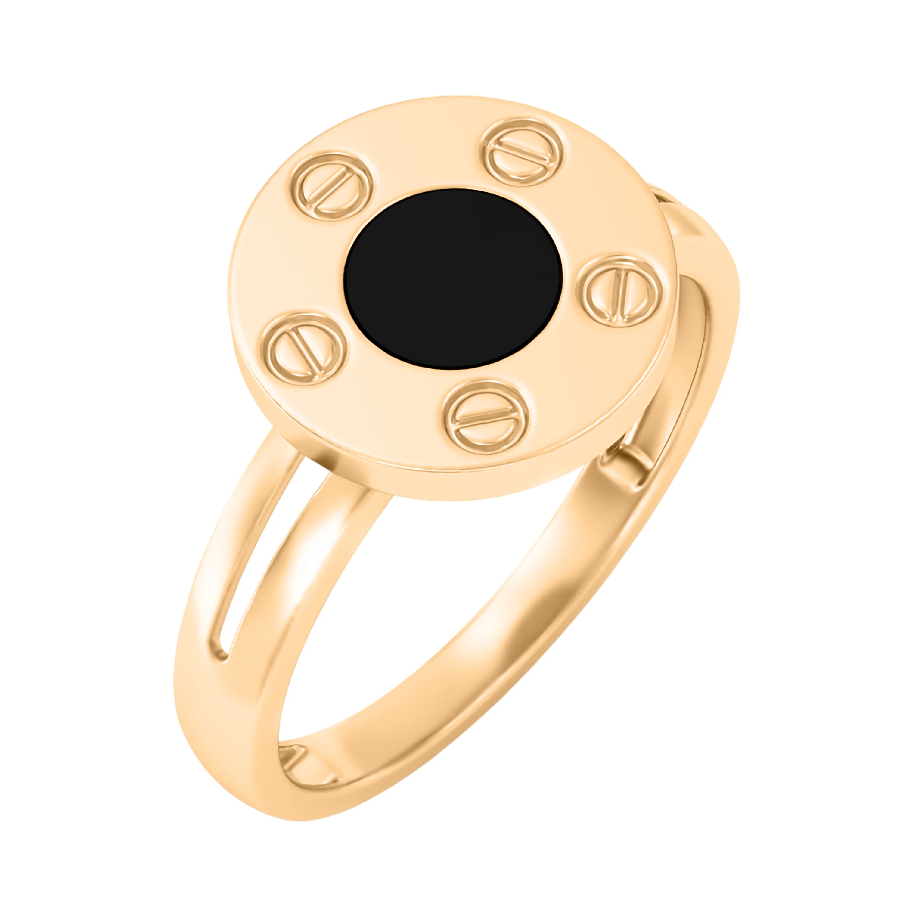 Каблучка "Love" із червоного золота з емаллю - 2134328