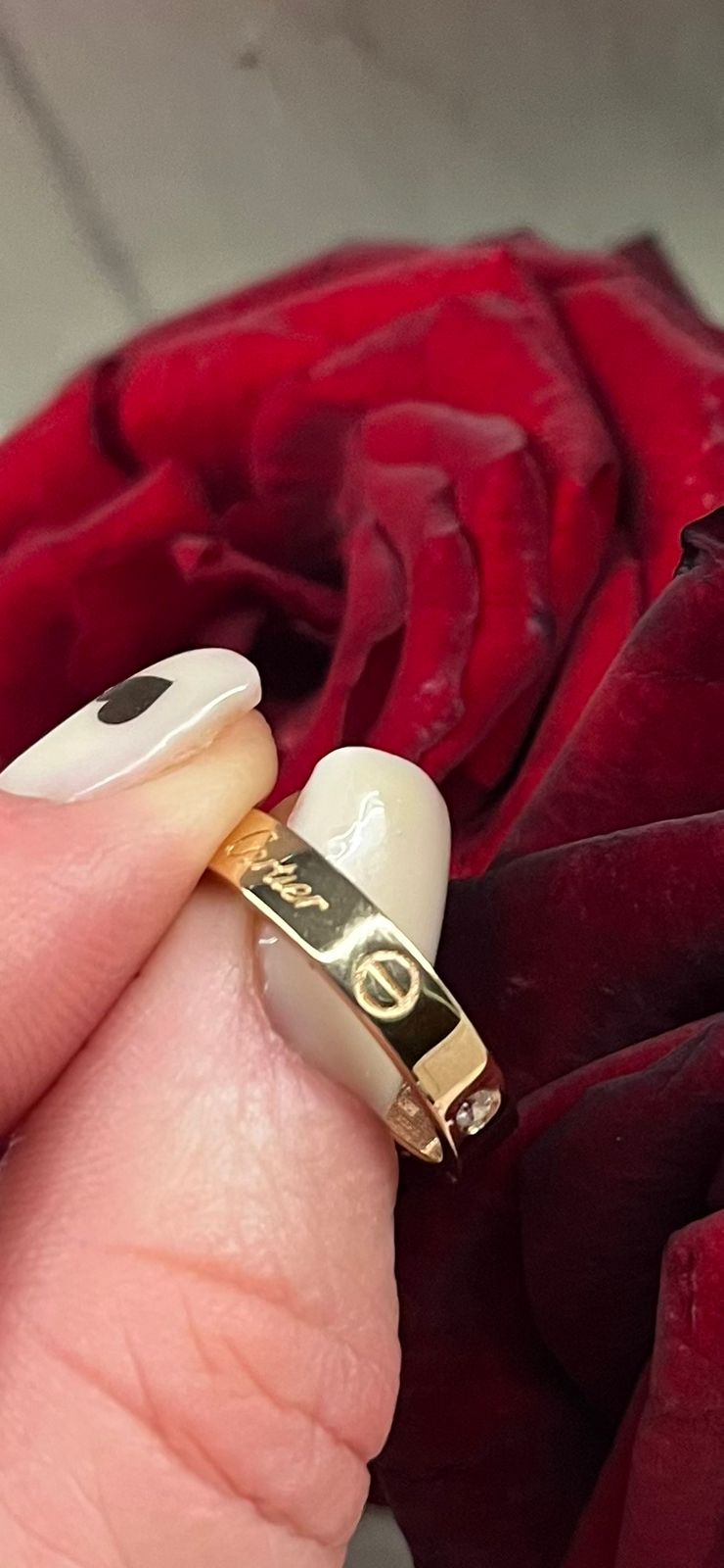 Каблучка "Love" у червоному золоті з фіанітами - 2139510