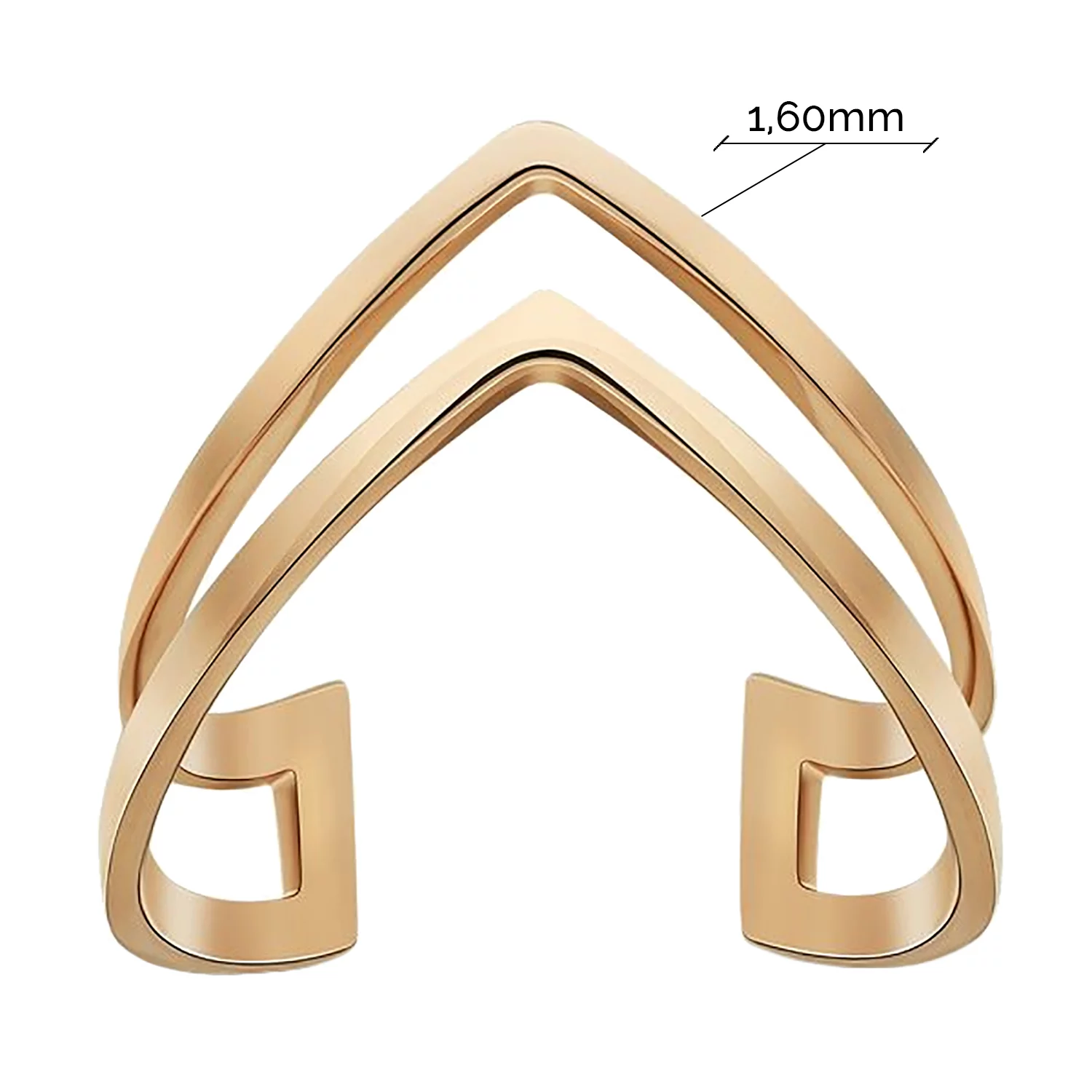 Подвійна каблучка незамкнена на фалангу з червоного золота - 1490753