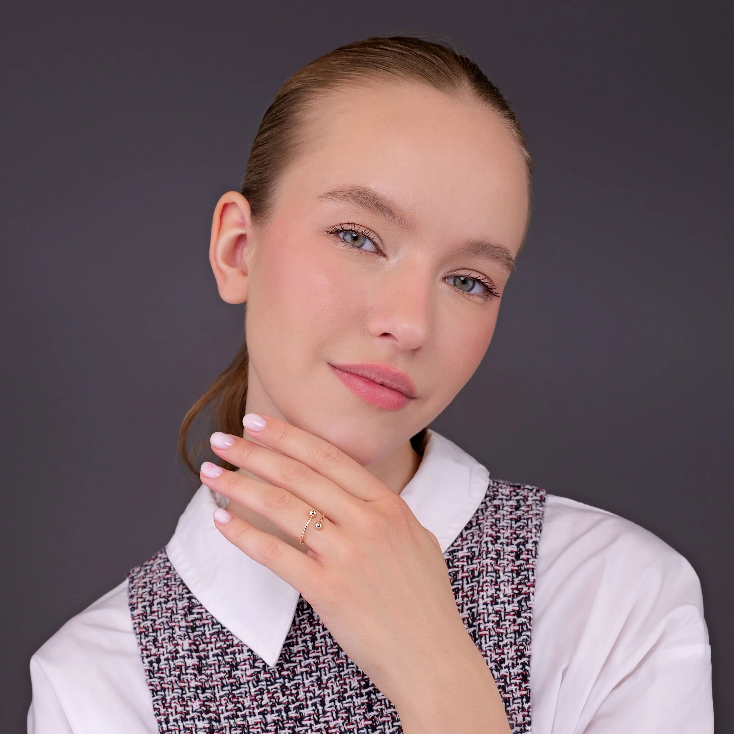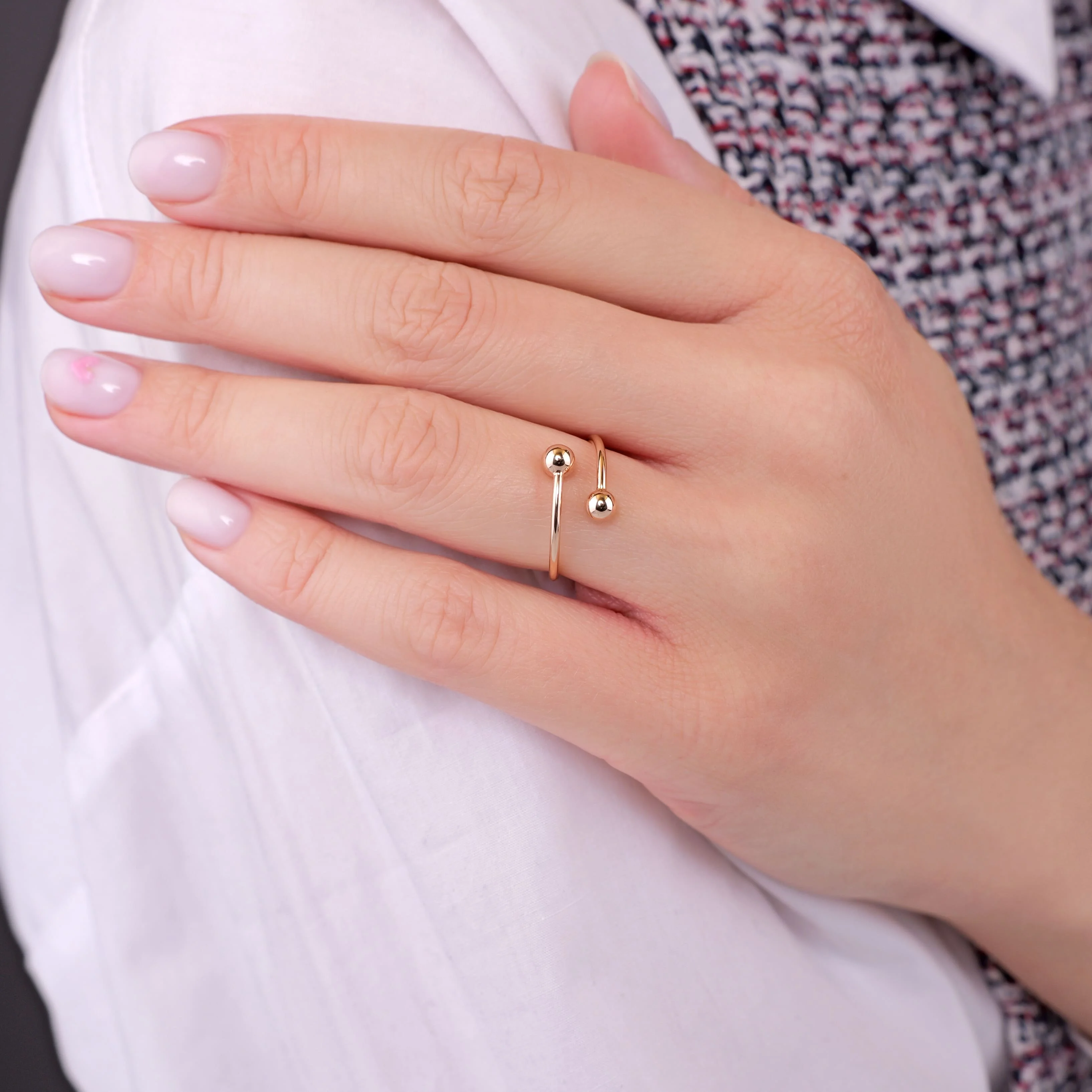Каблучка незамкнена "Кульки" у червоному золоті - 1976730