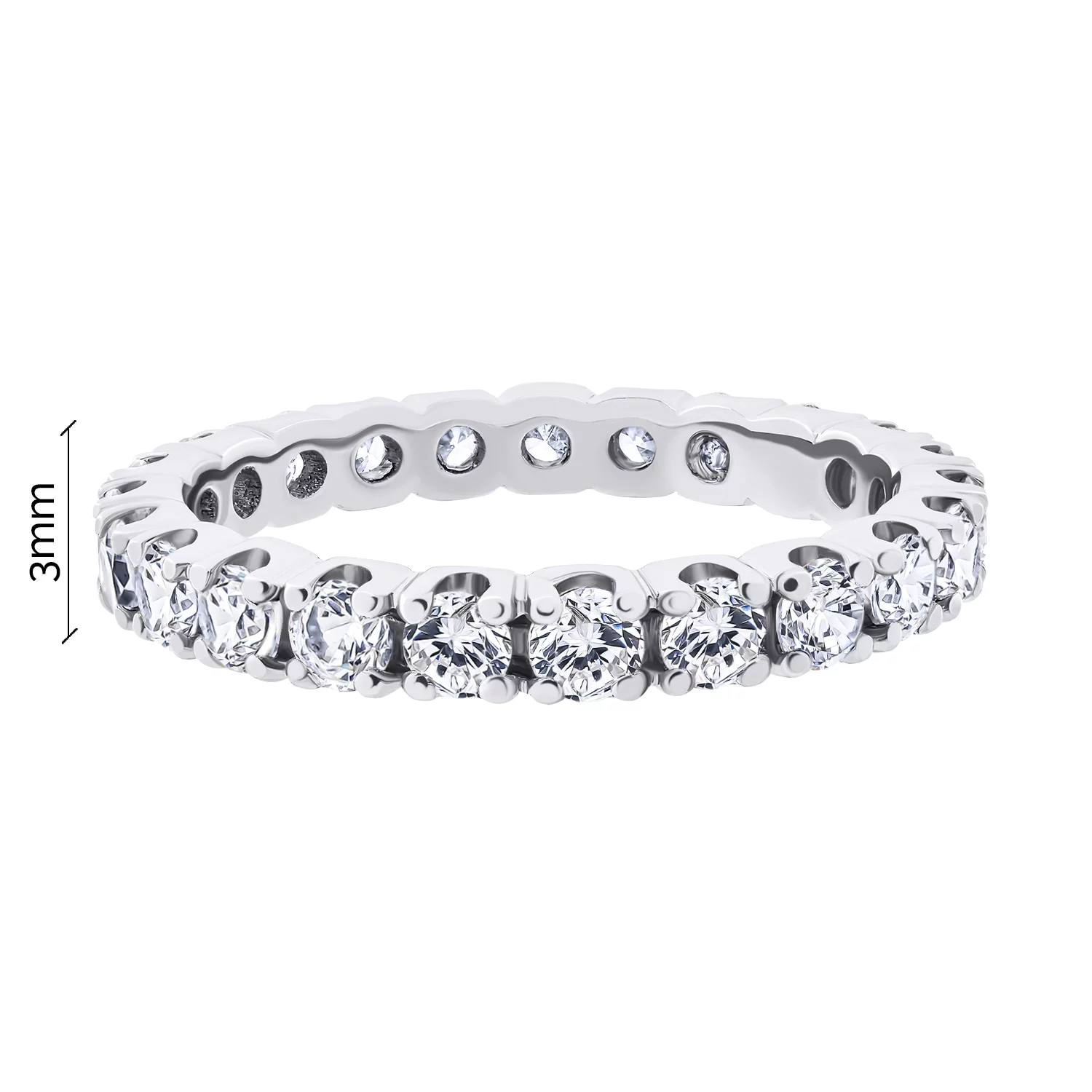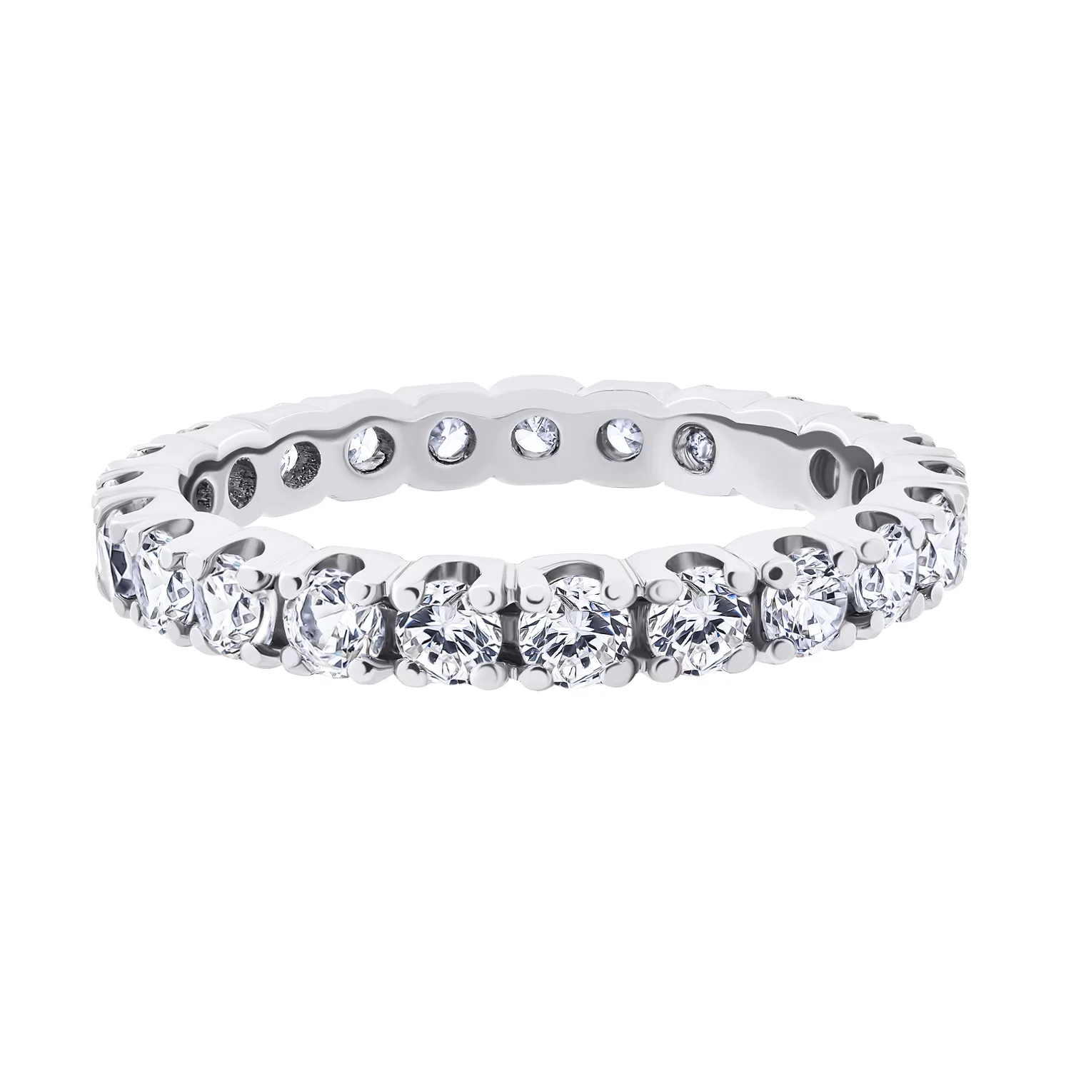 Стильна каблучка з білого золота з доріжкою з діамантів і рубінів - 1919295
