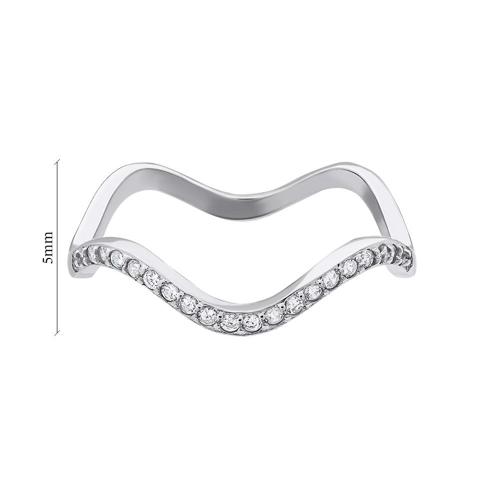 Каблучка "Хвиля" з доріжкою фіанітів зі срібла - 1488709