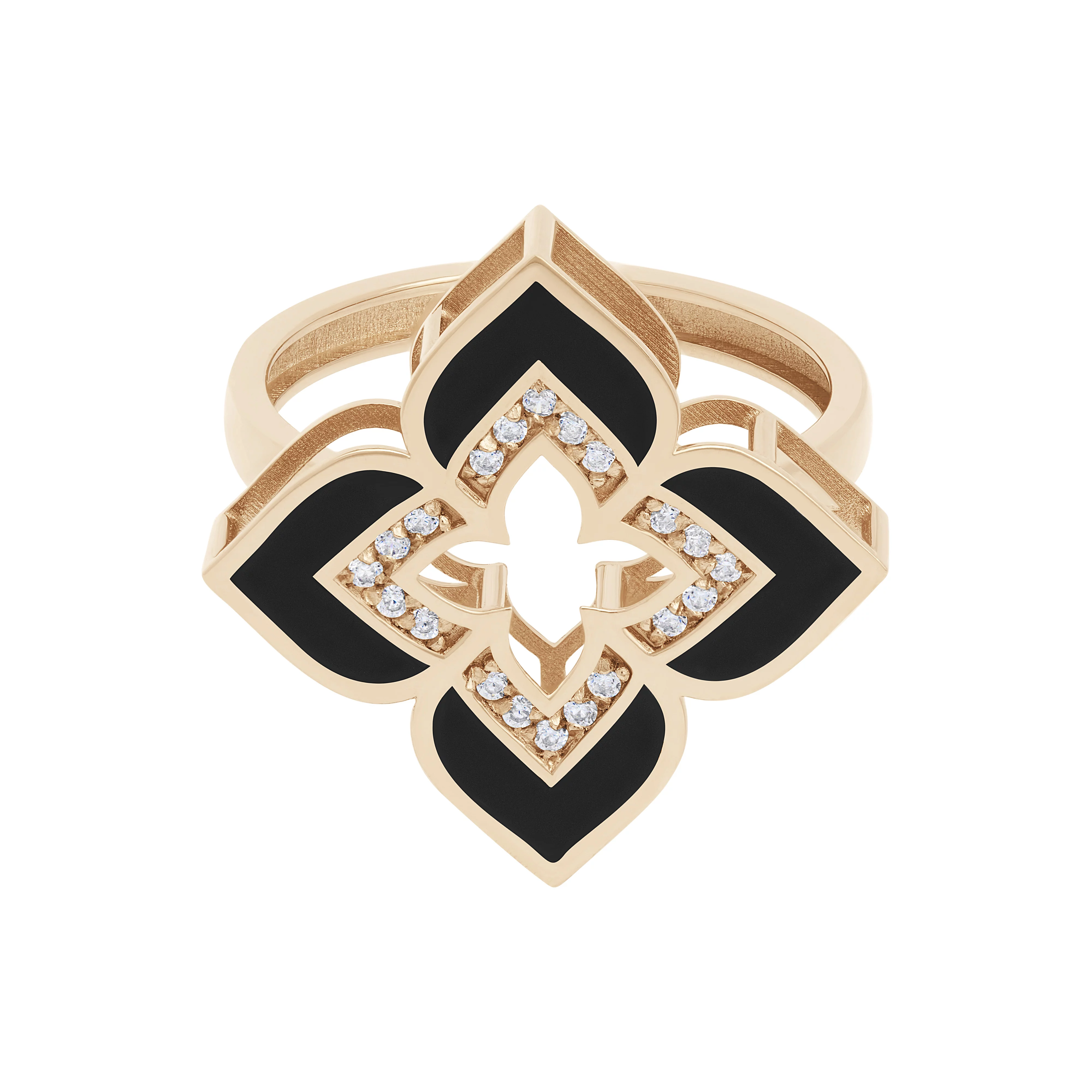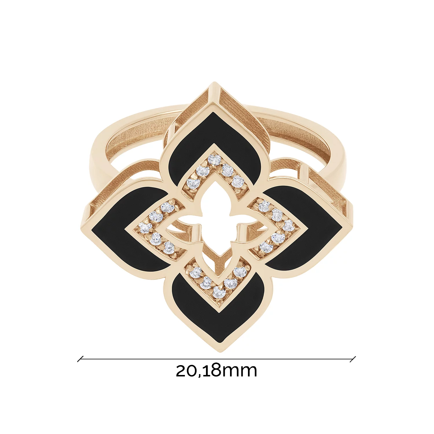 Перстень-печатка з червоного золота з емаллю і доріжками з чорних фіанітів - 1874654