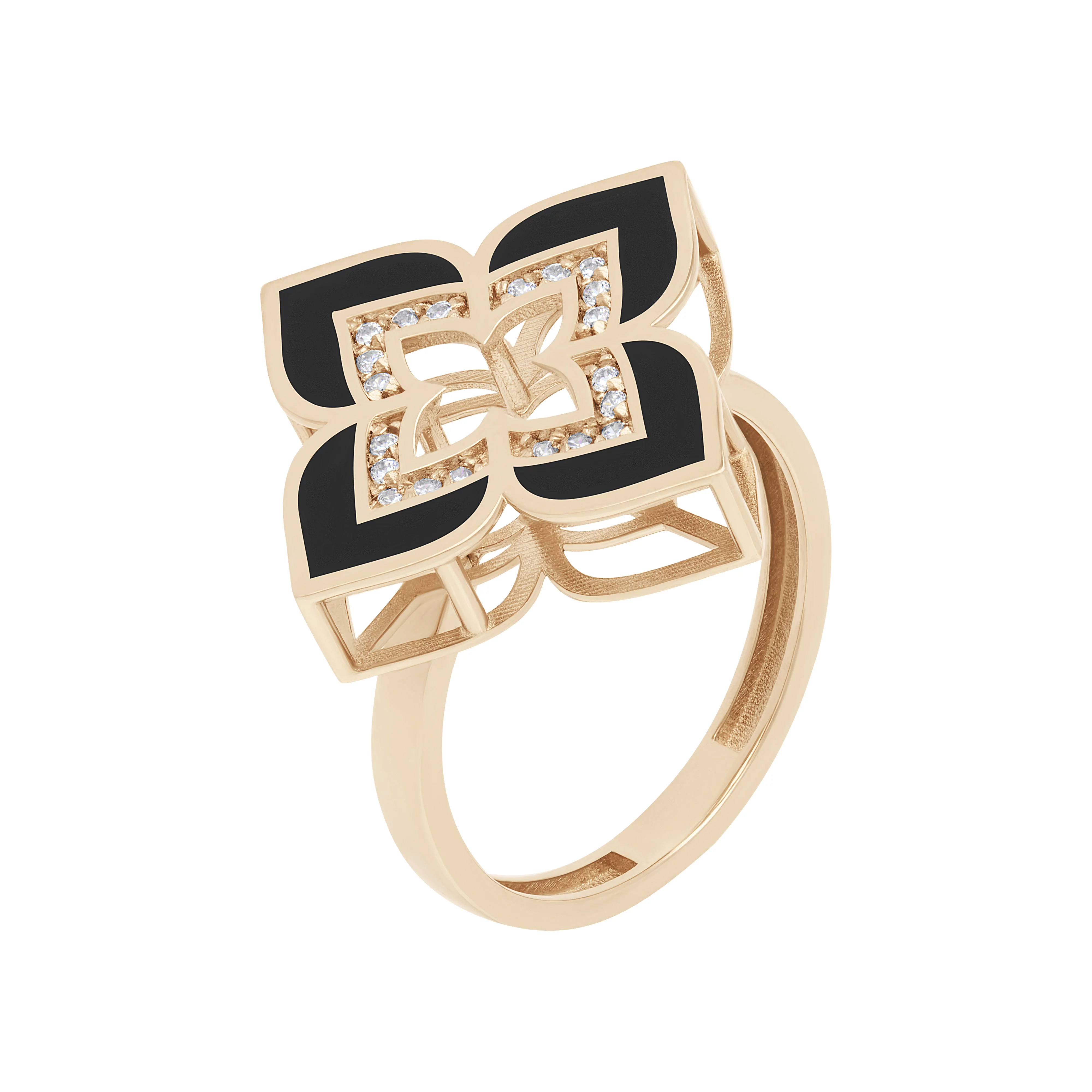Стильна каблучка у формі кола з червоного золота з емаллю та фіанітом - 1923460