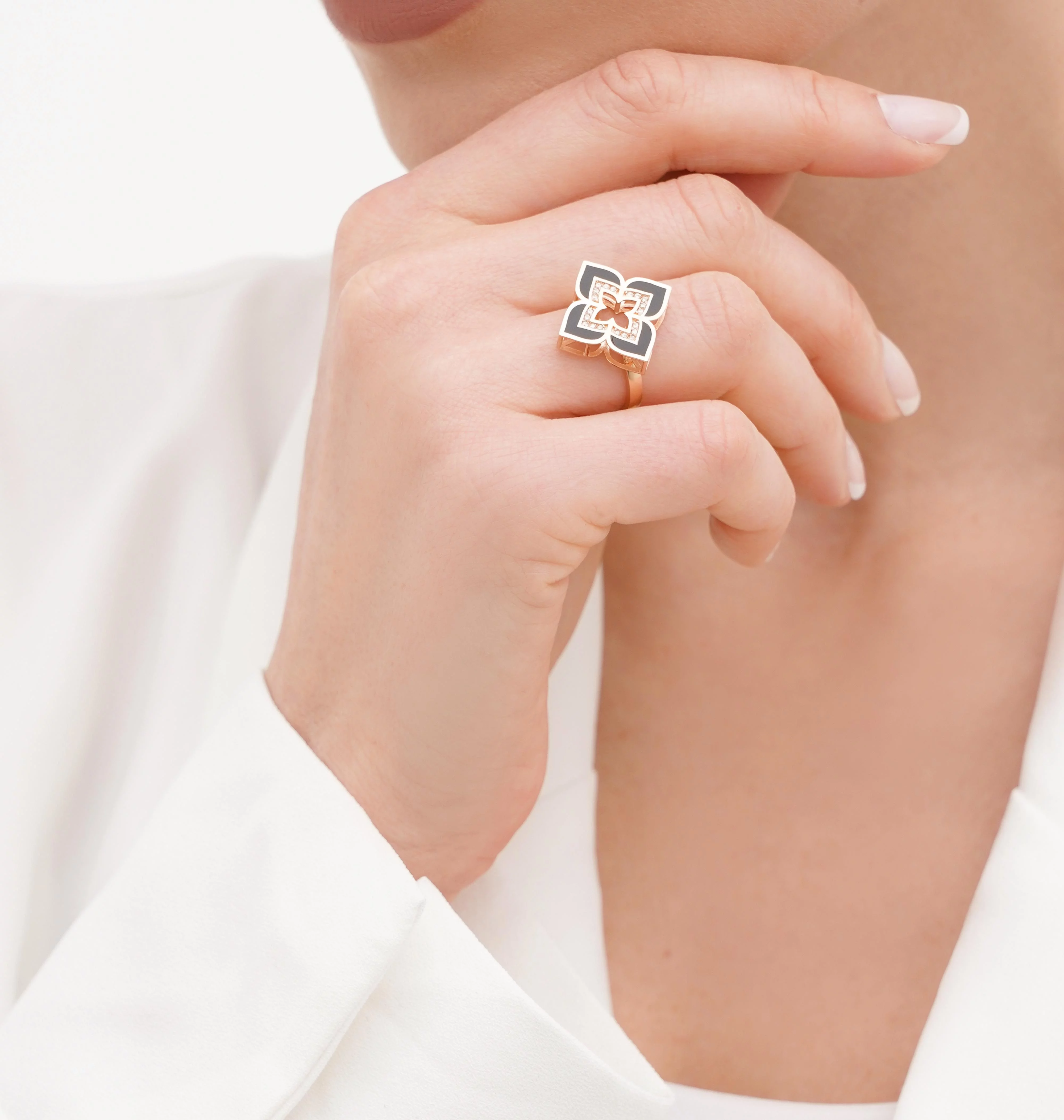 Перстень-печатка в комбінованому золоті з доріжкою з фіанітів та емаллю - 1874594