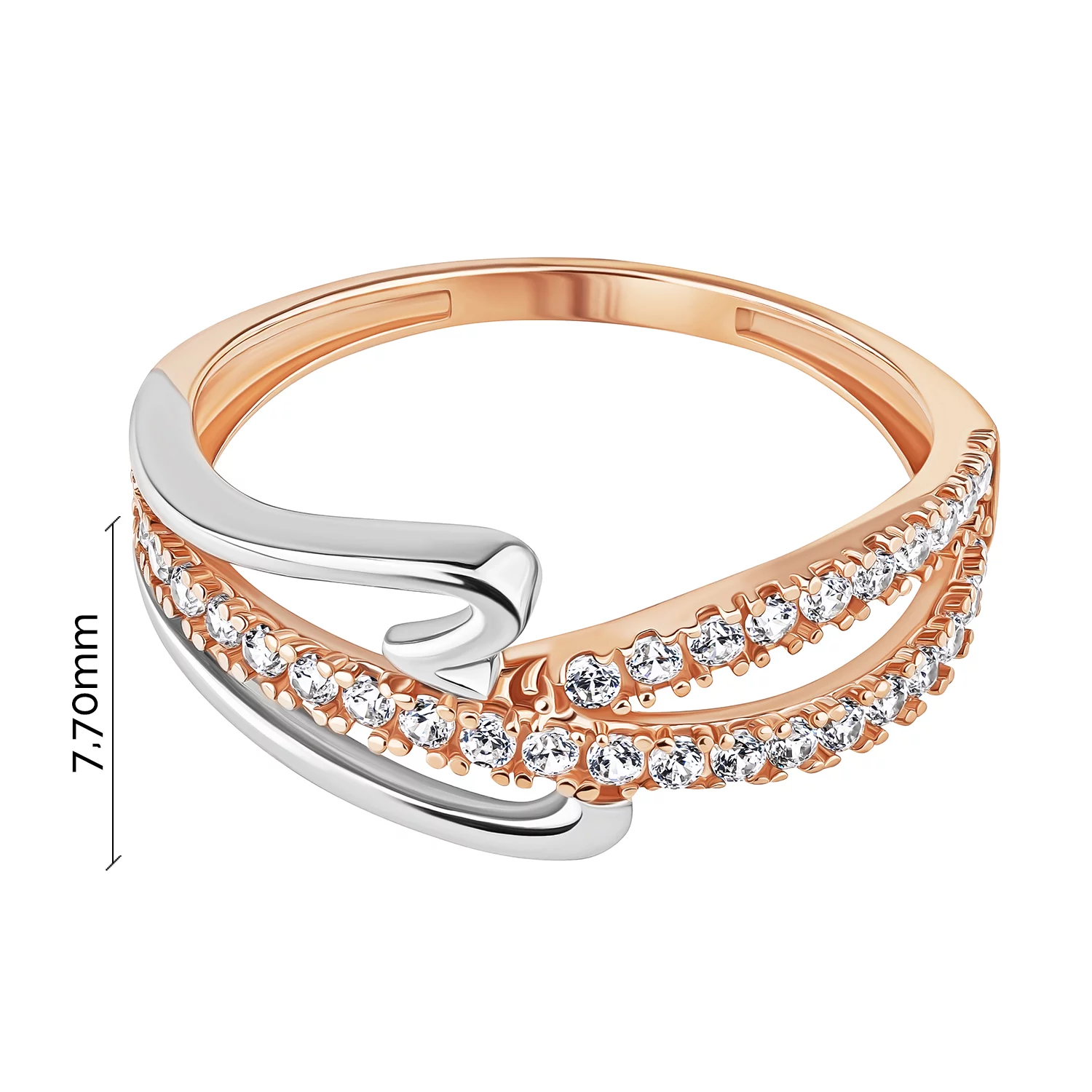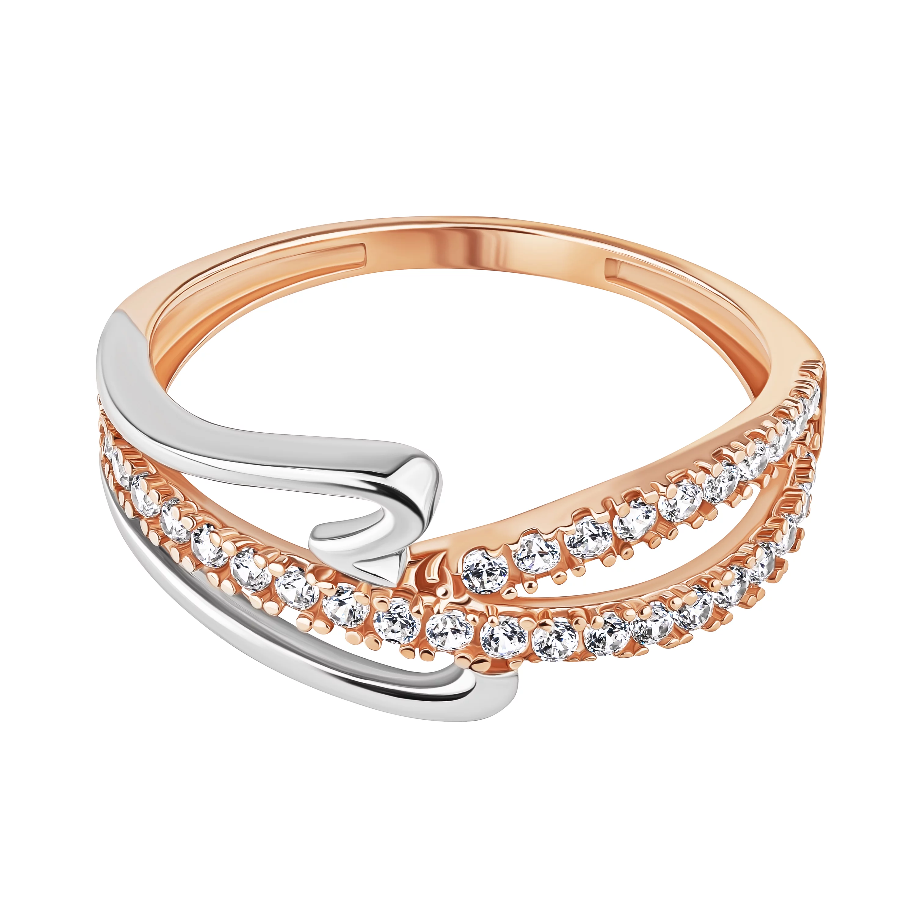 Потрійна каблучка з комбінованого золота з доріжками з фіанітів - 1919928