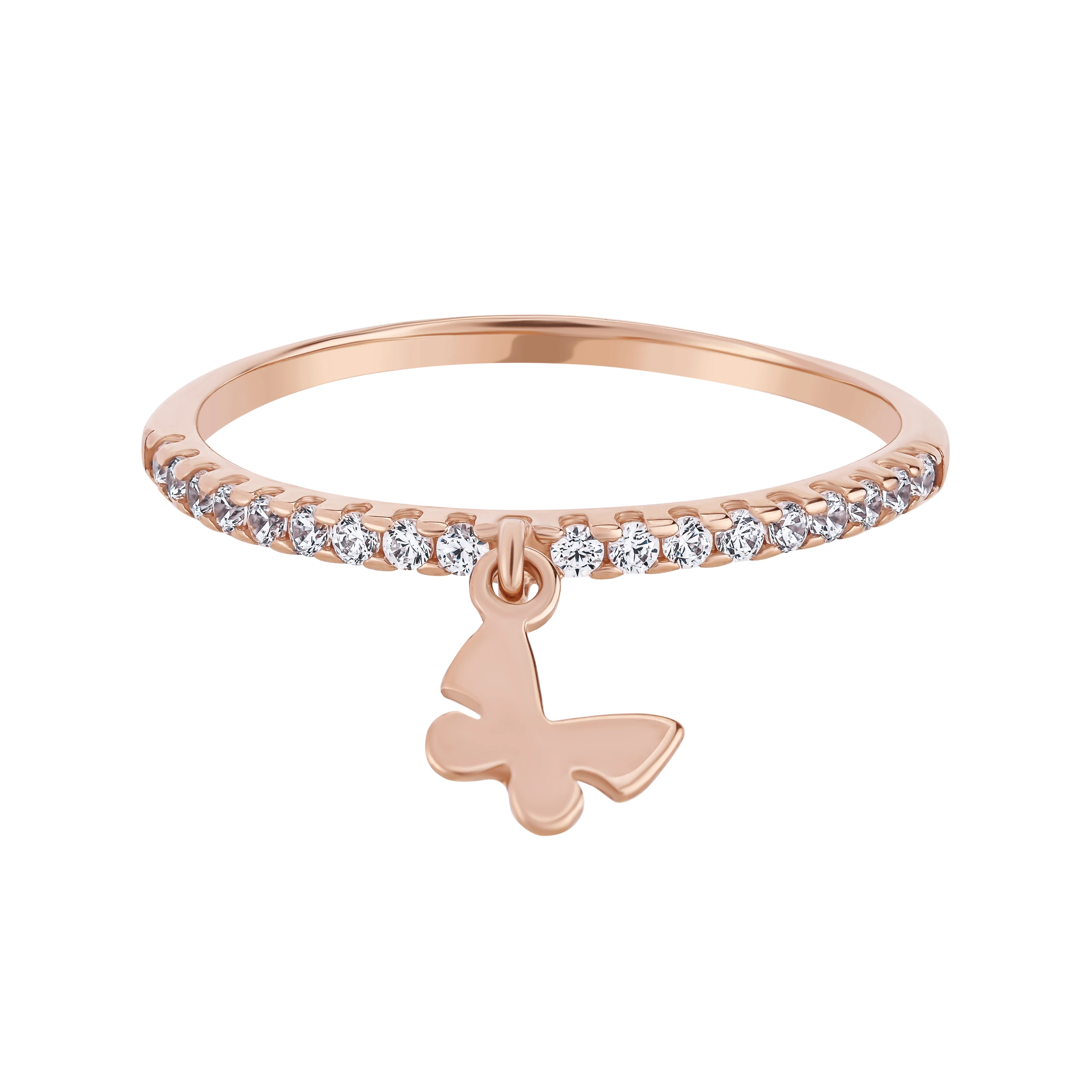 Каблучка "Сердечко" з червоного золота з фіанітом з підвісом - 1829856