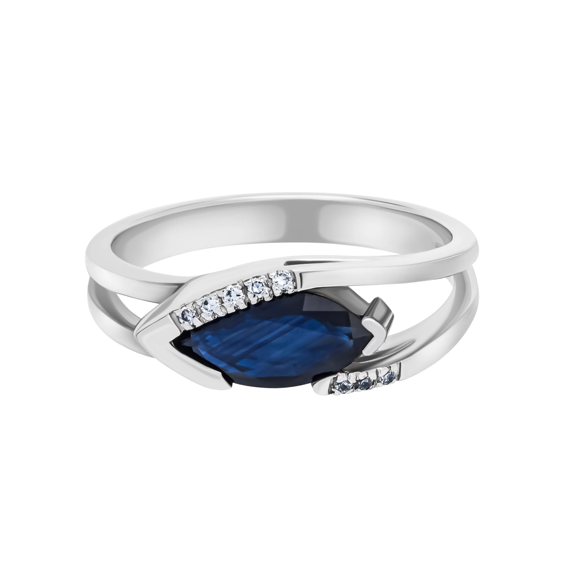Каблучка для заручин з білого золота з діамантами і сапфіром - 1919296