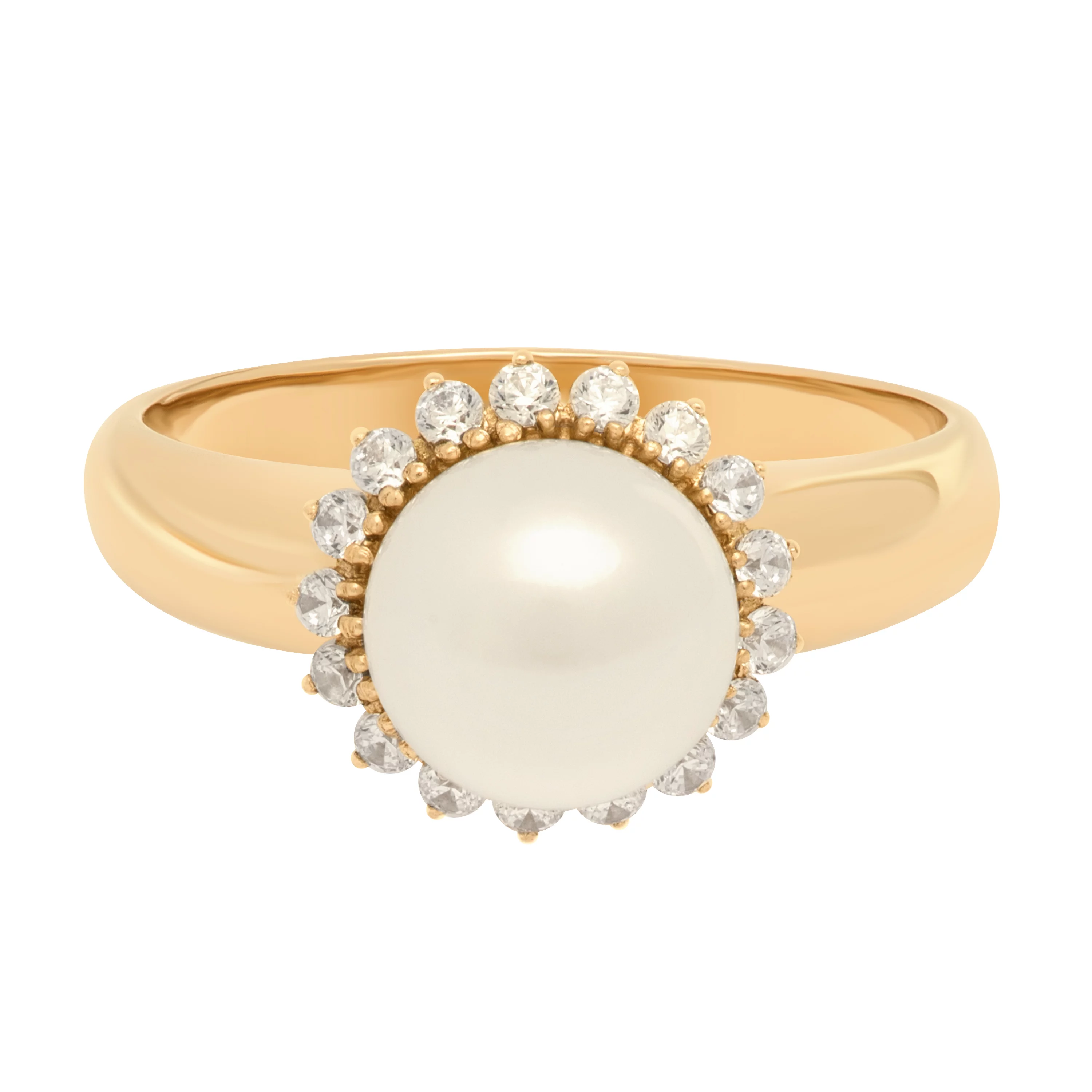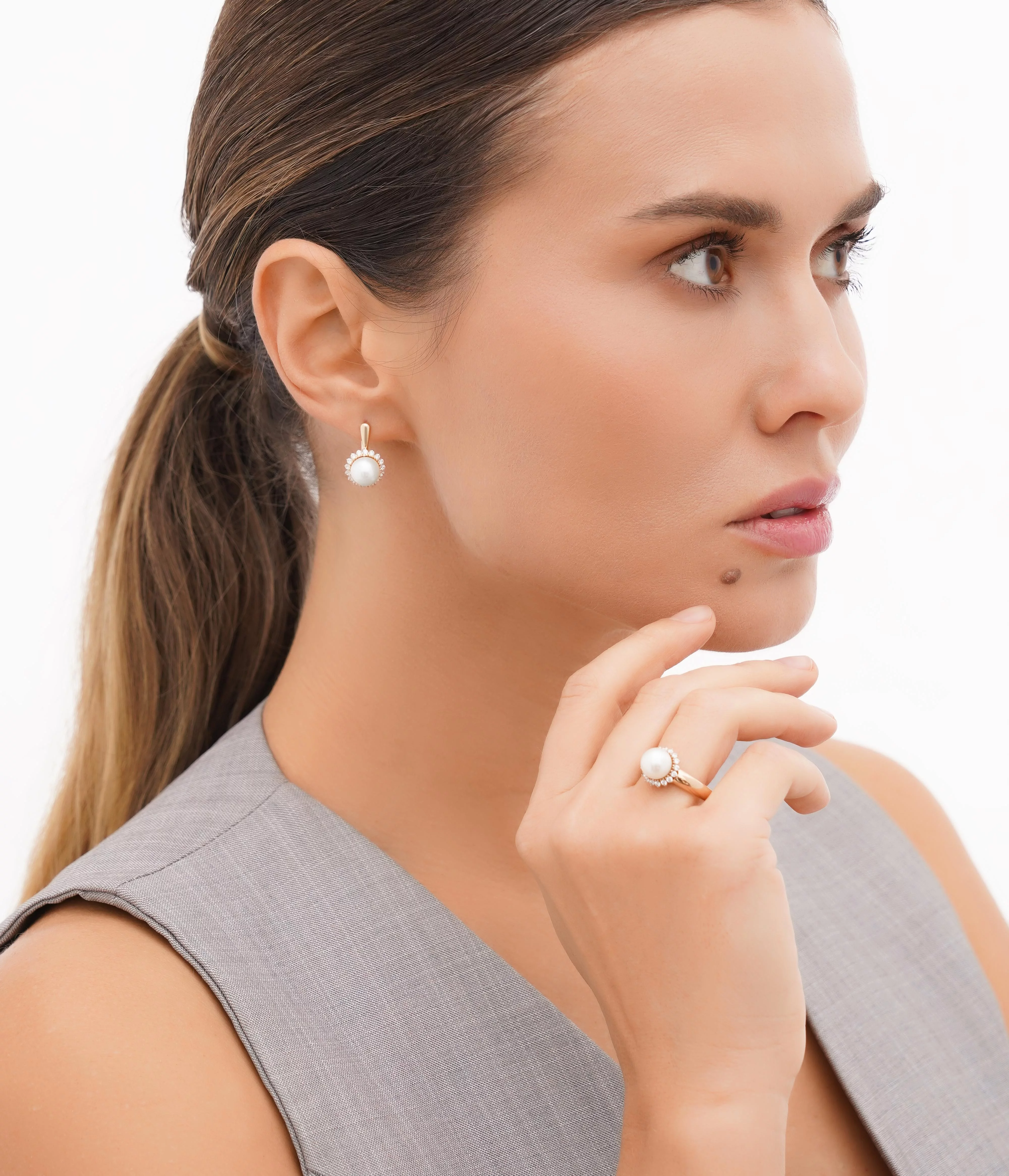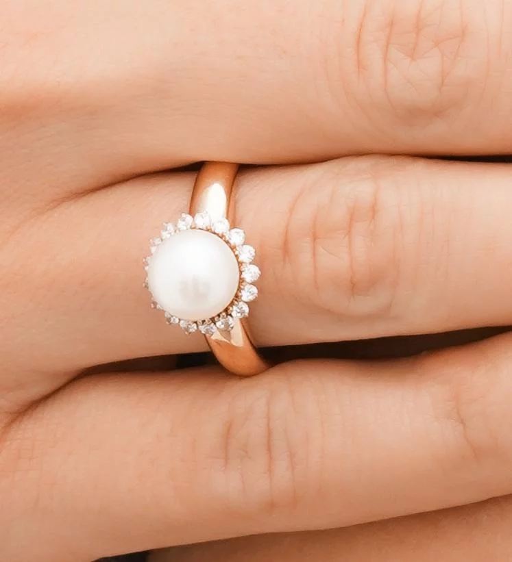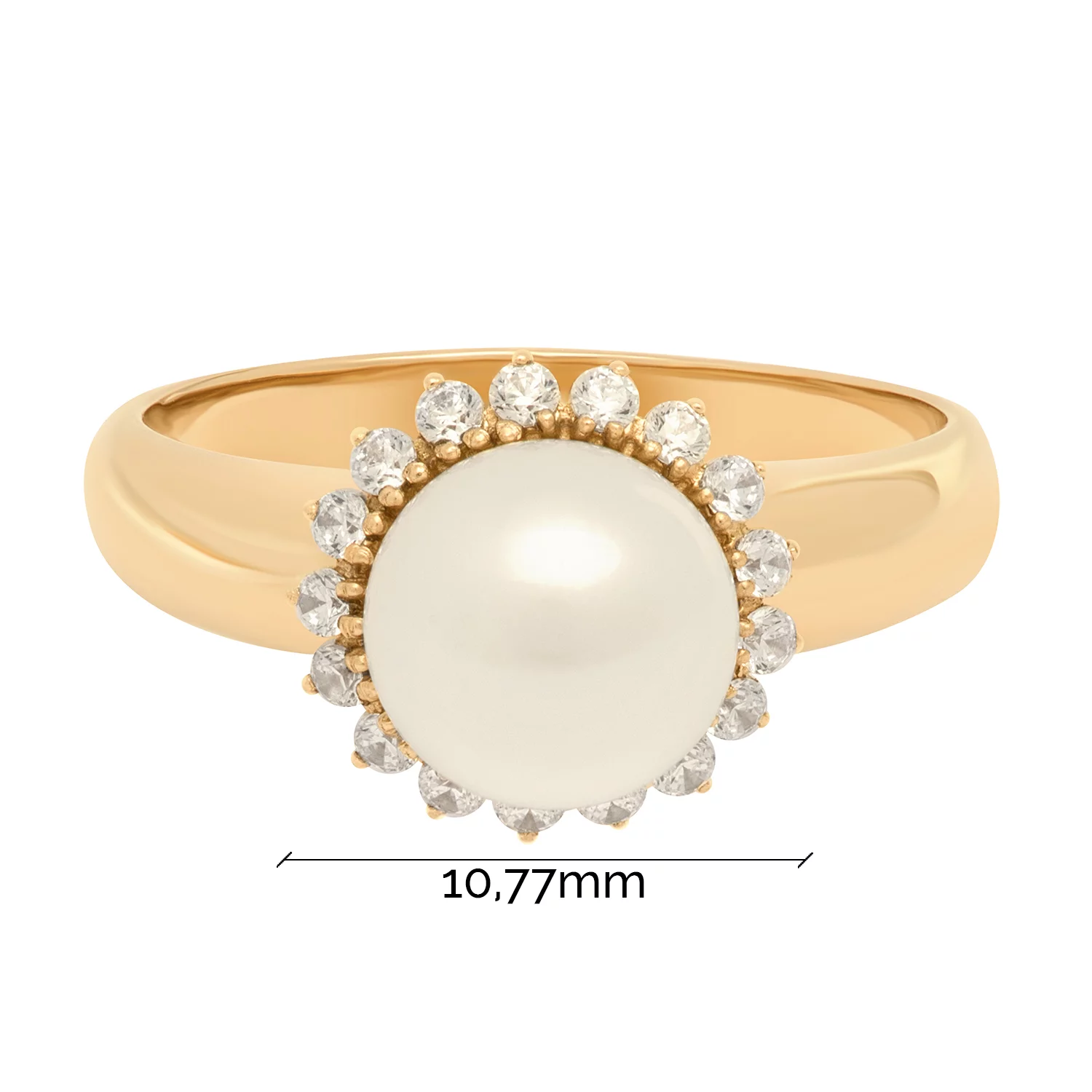 Елегантна каблучка з червоного золота з перлиною та фіанітами - 1955338