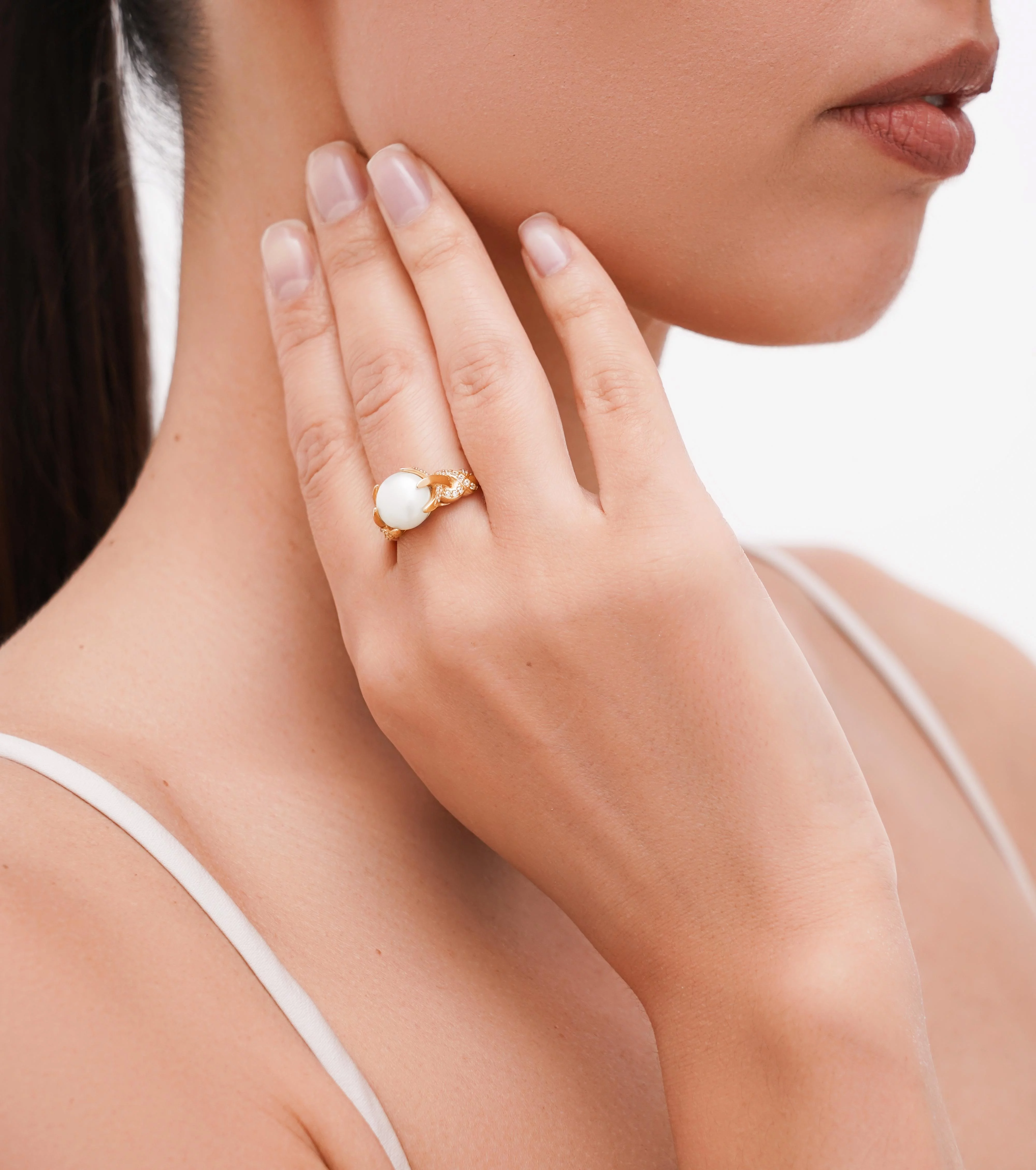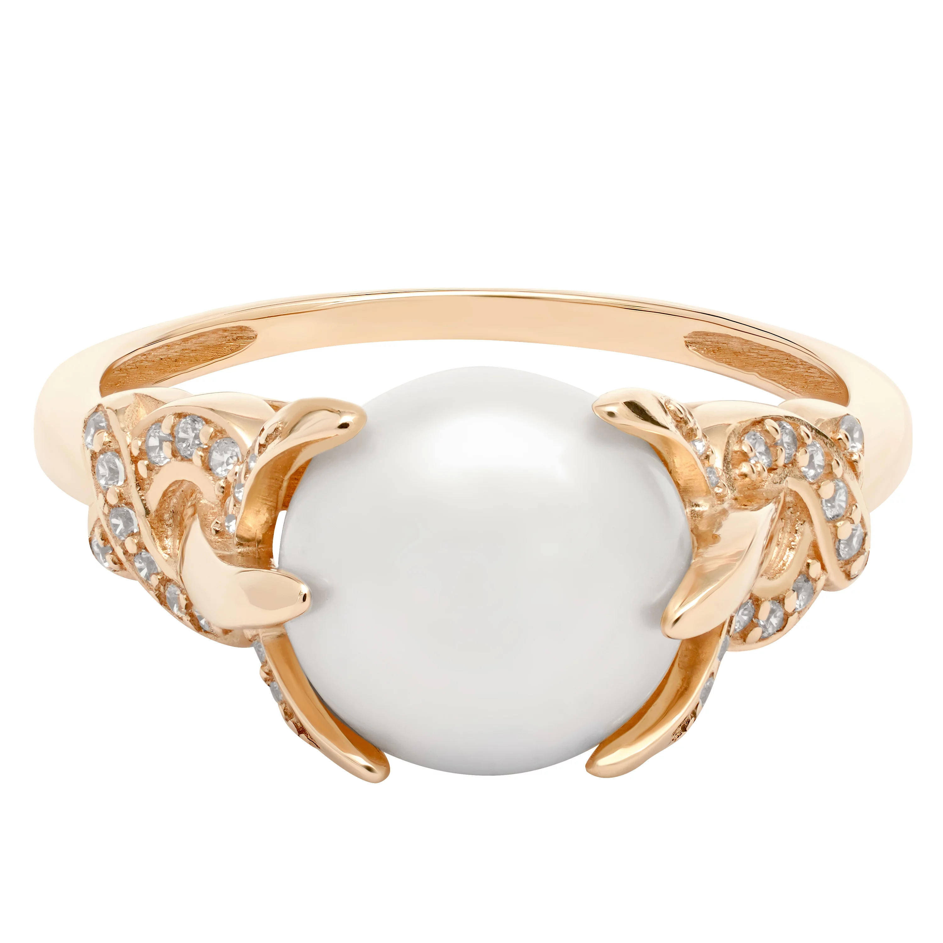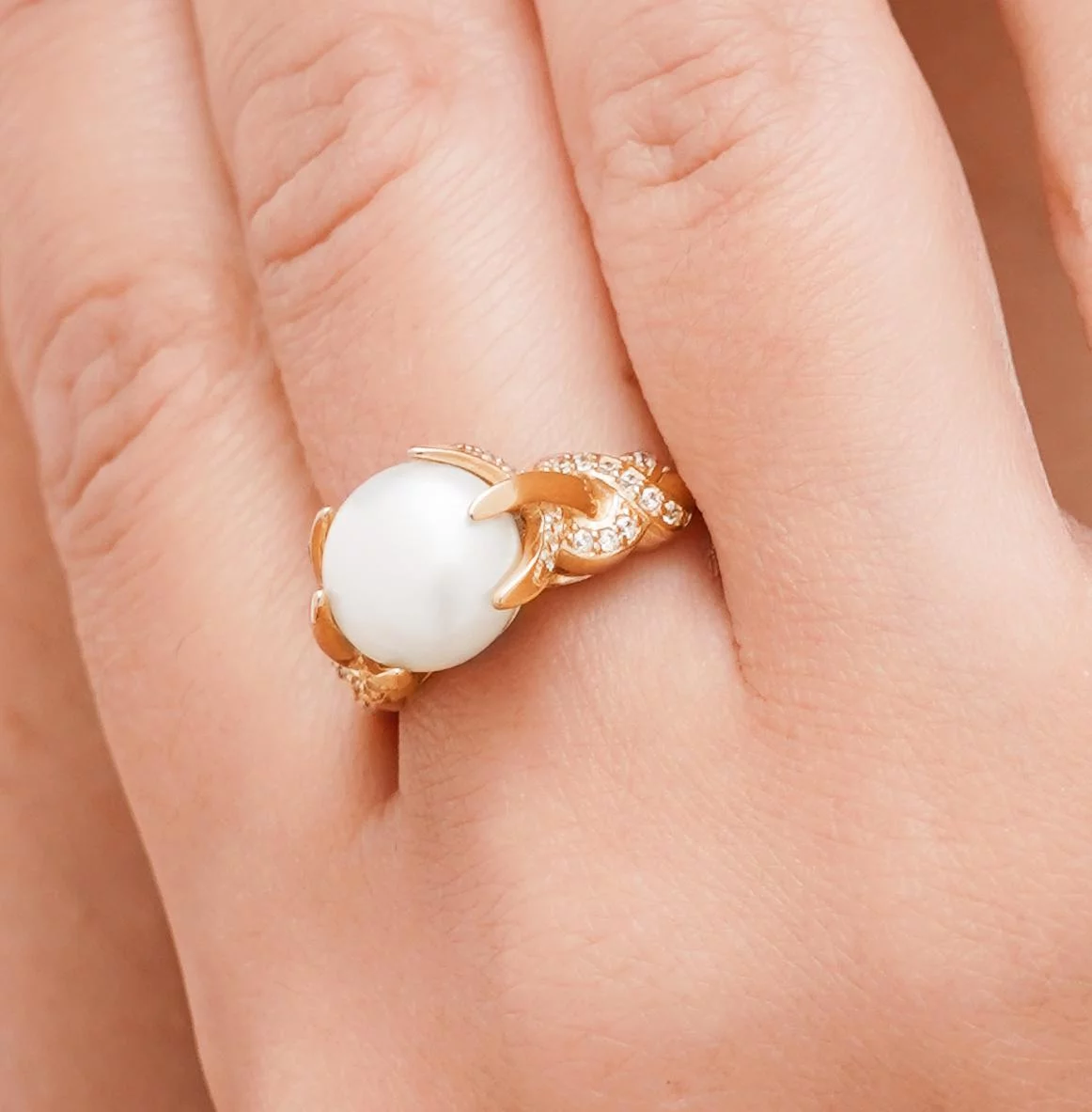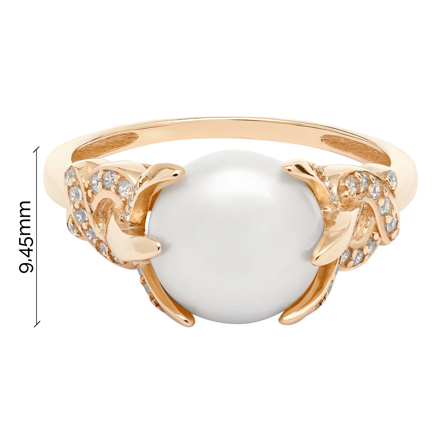 Елегантна каблучка з червоного золота з перлиною та фіанітами - 1955338