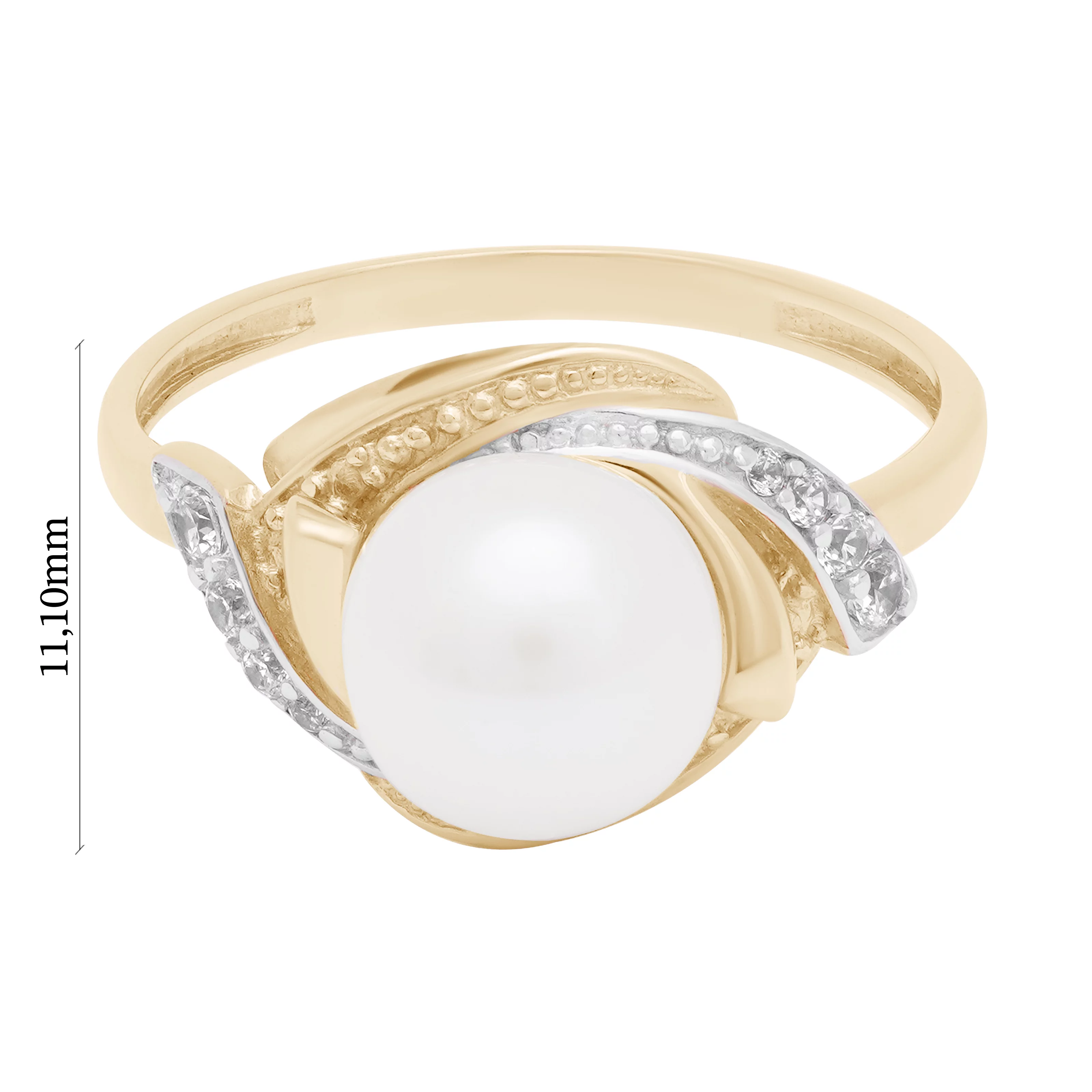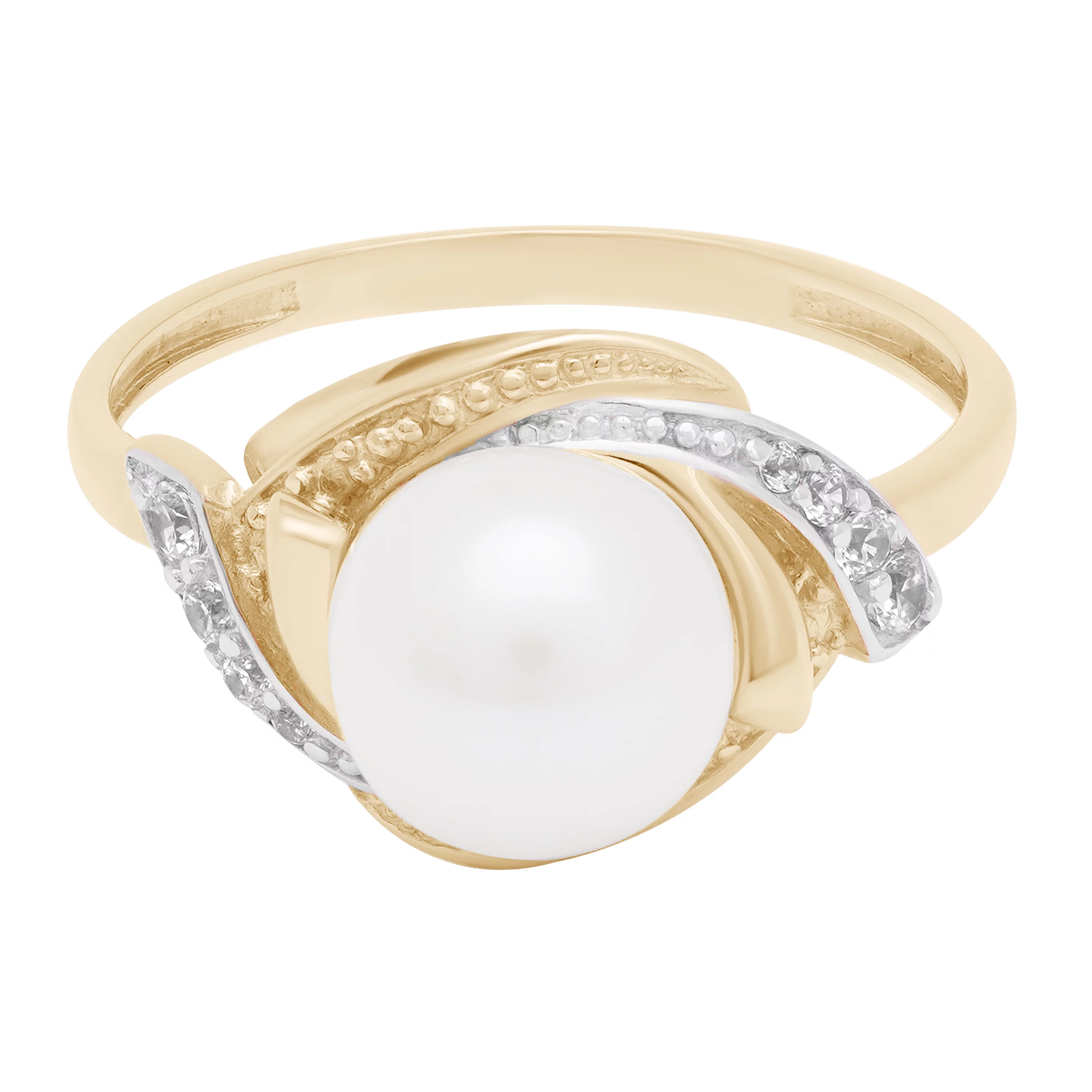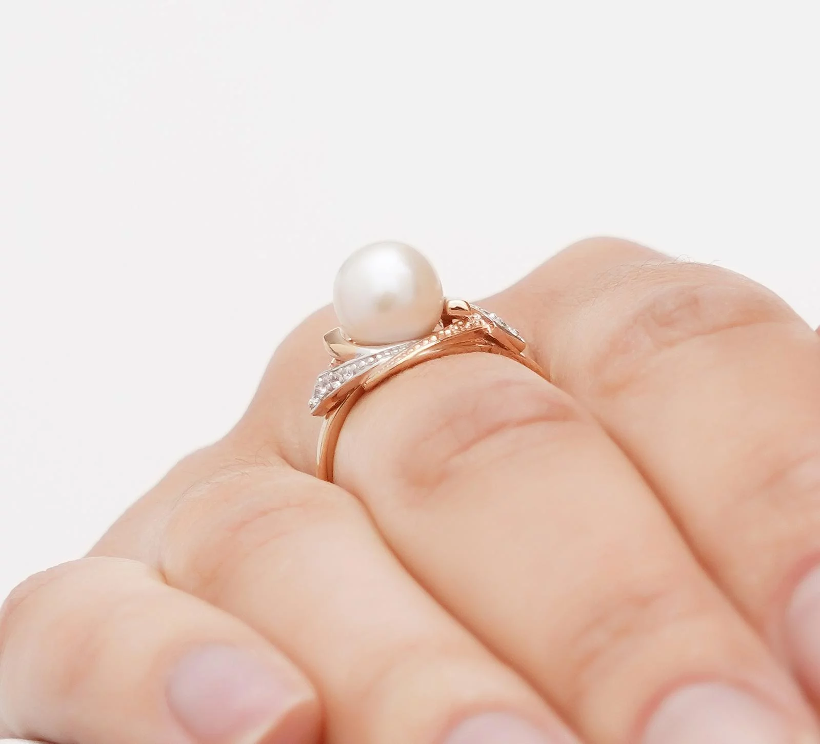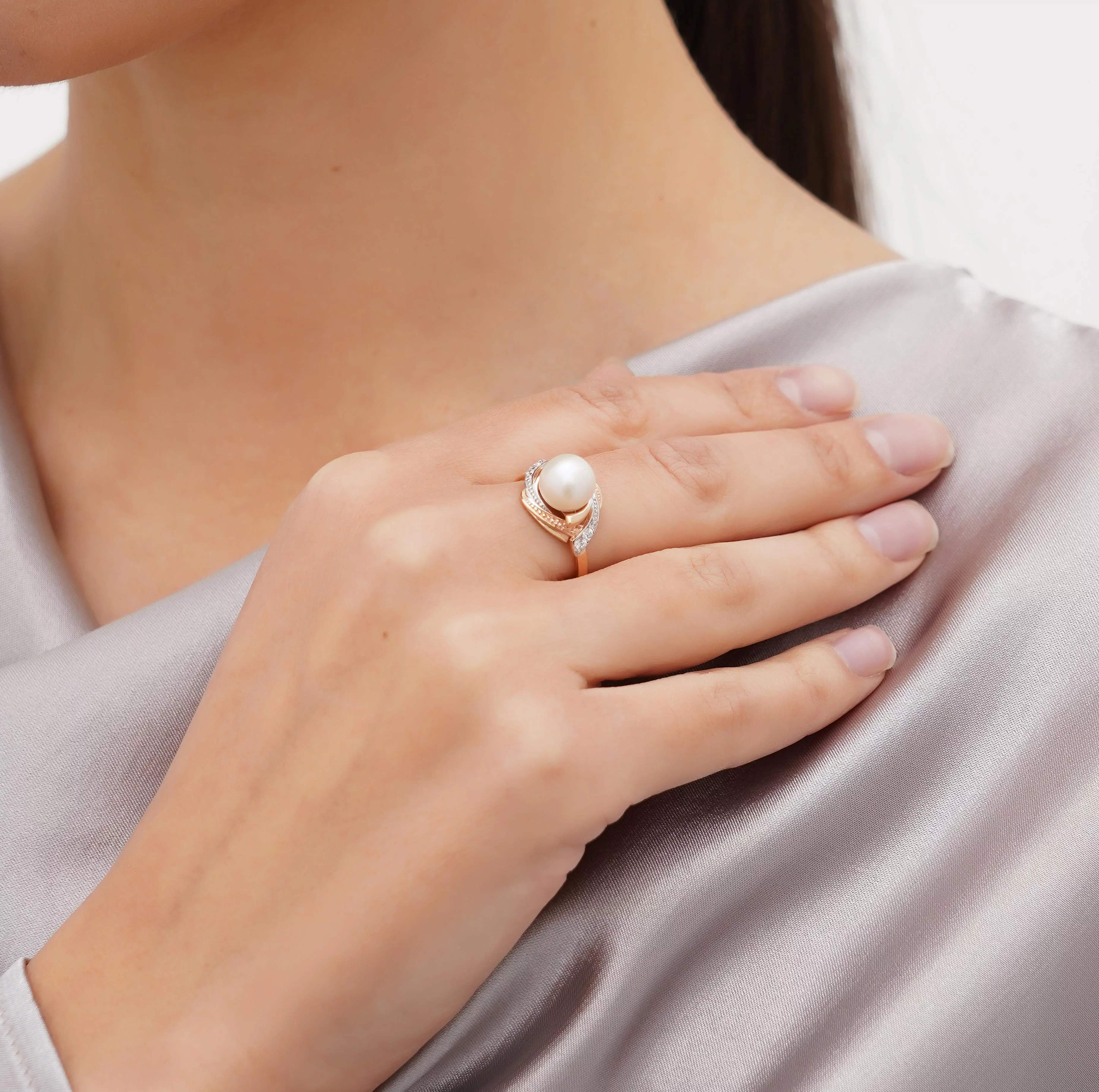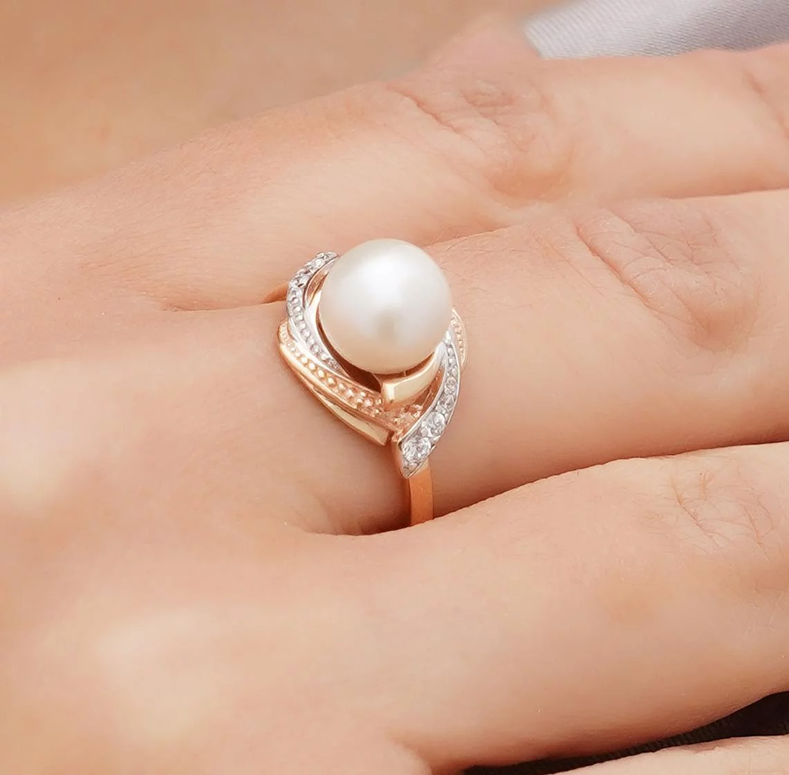 Каблучка з перлиною і фіанітами з червоного золота - 1657951