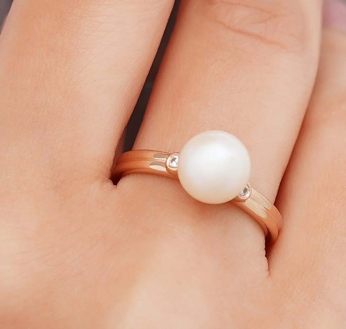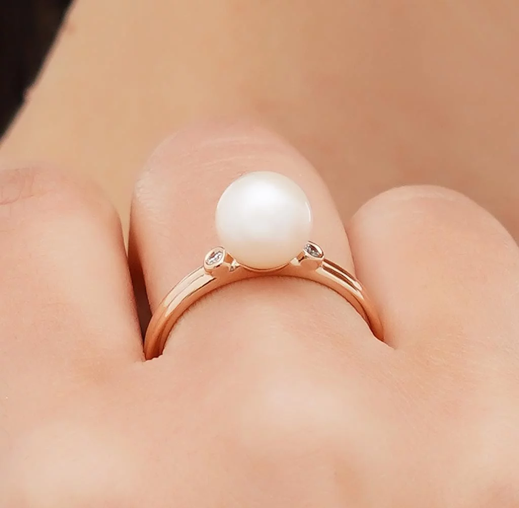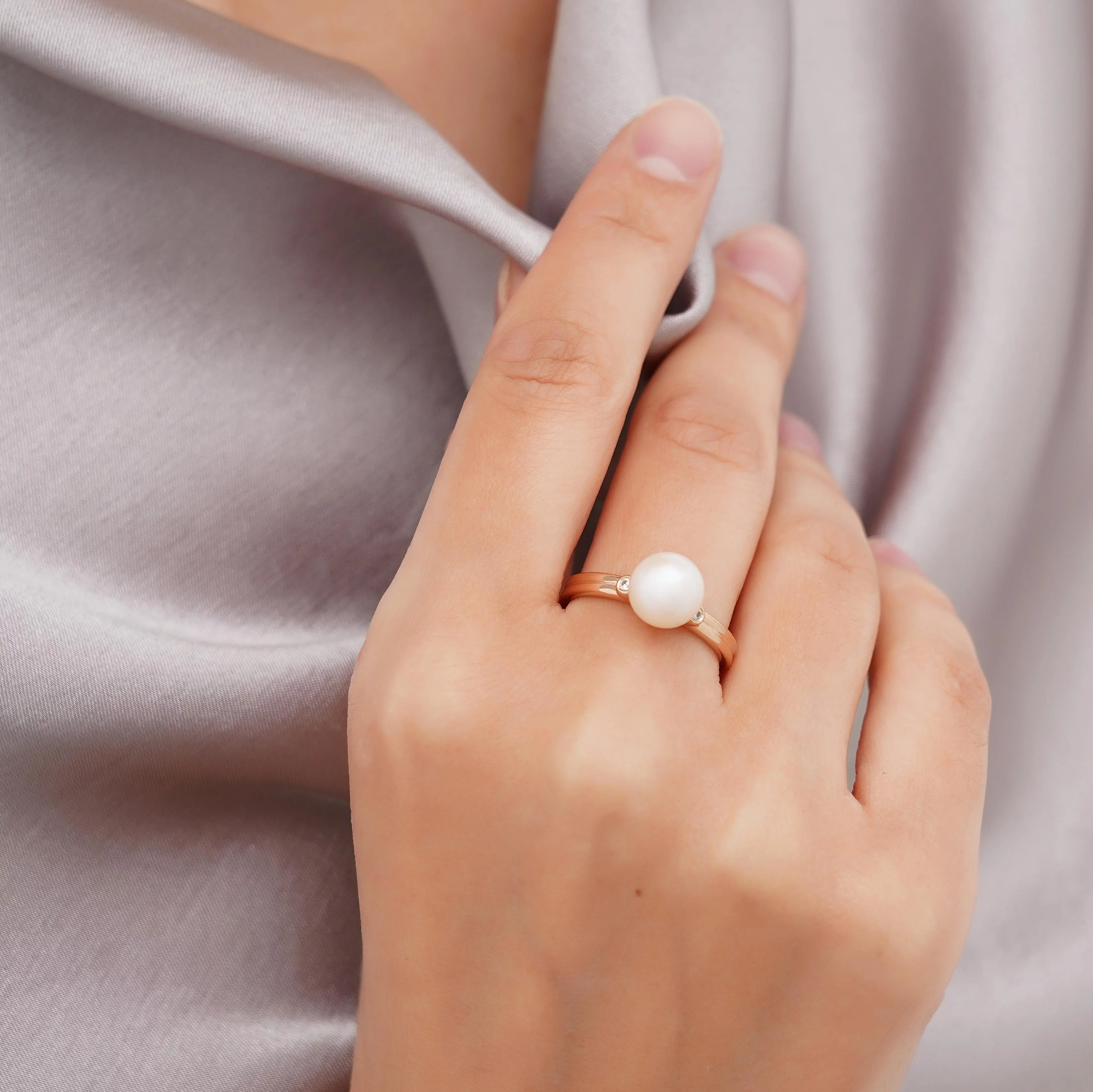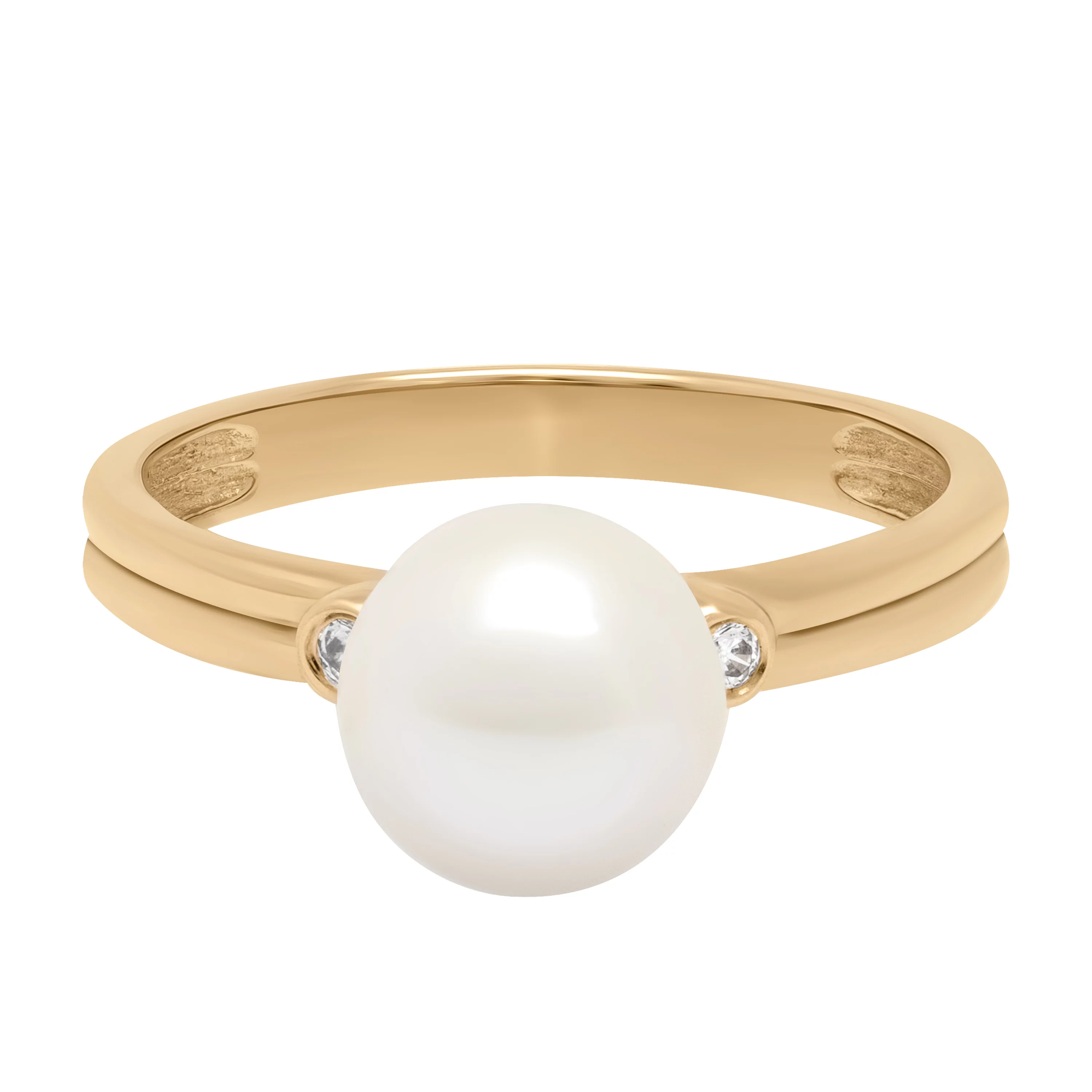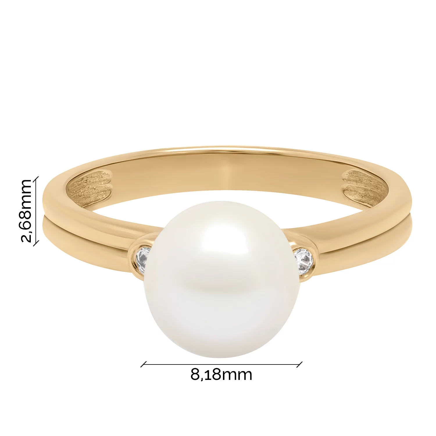 Елегантна каблучка з червоного золота з перлиною та фіанітами - 1955338