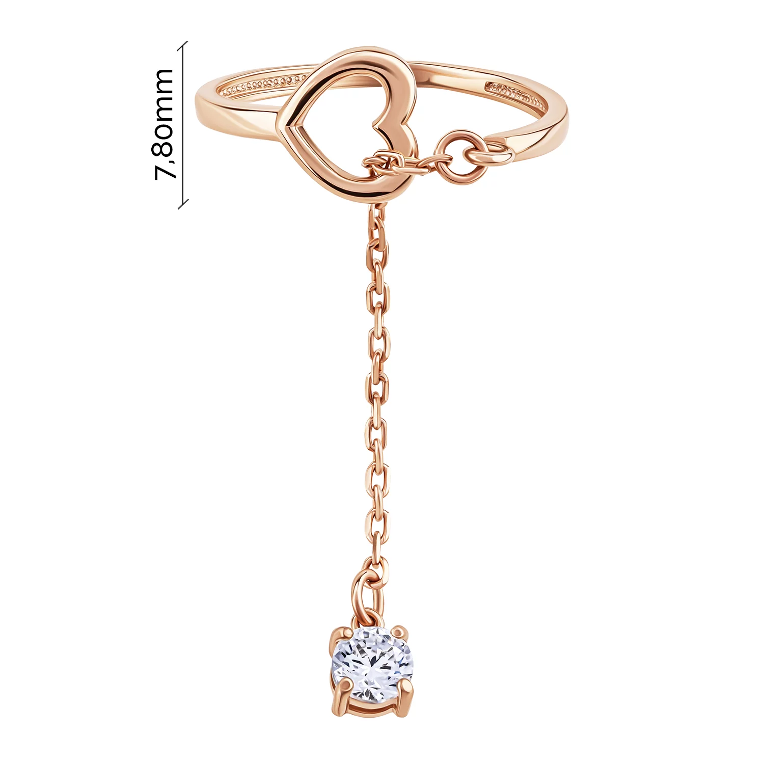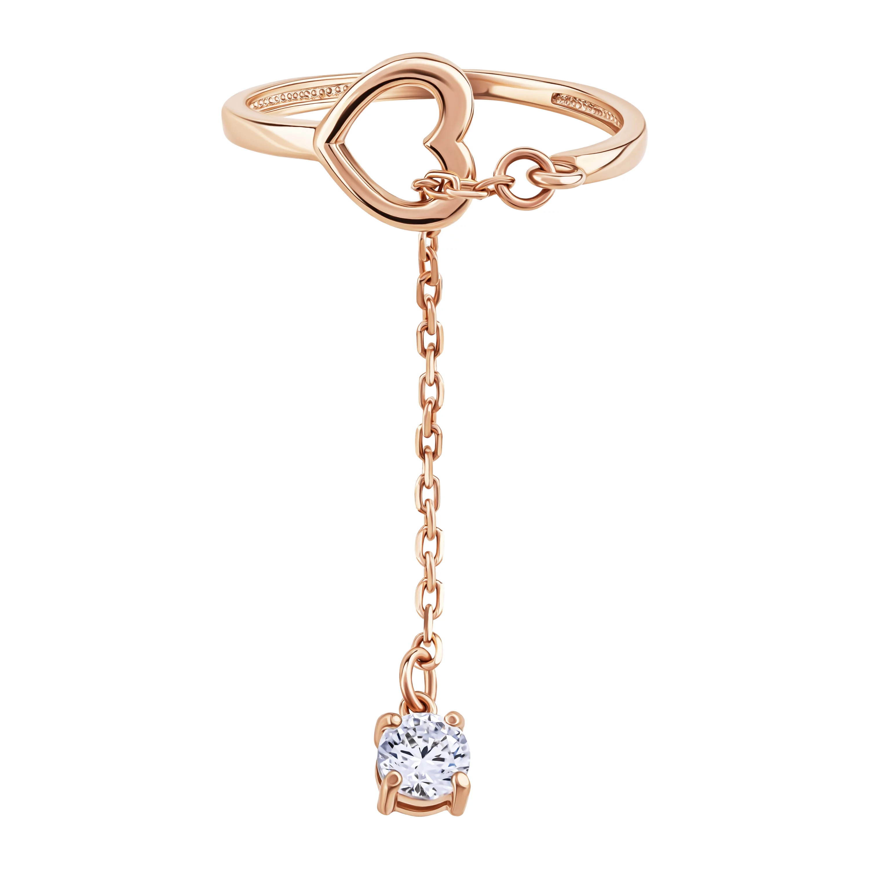 Каблучка з червоного золота з доріжкою фіанітів і підвіскою "Серце" - 1722985