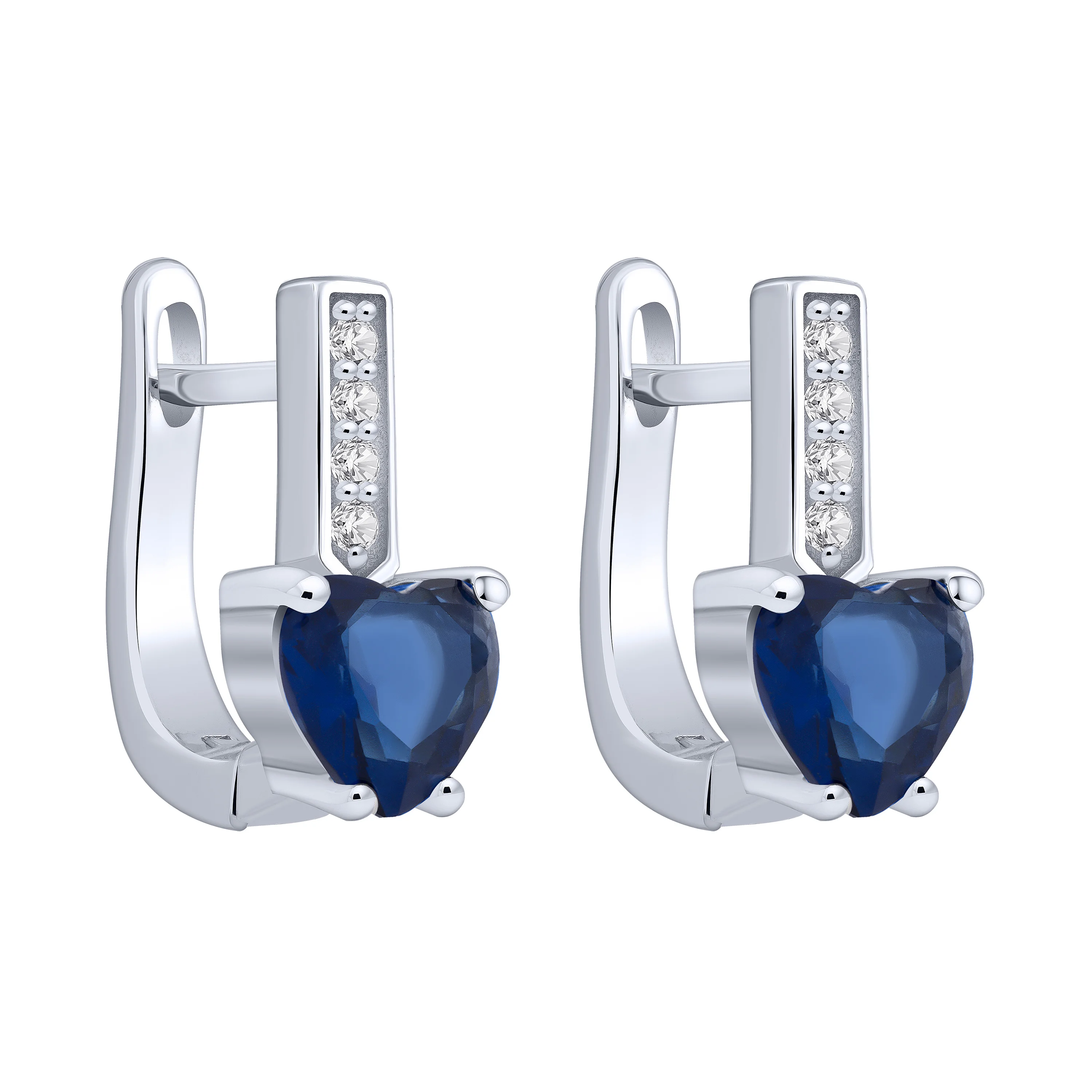 Сережки "Серце" з фіанітами та альпінітом в сріблі - 2090785